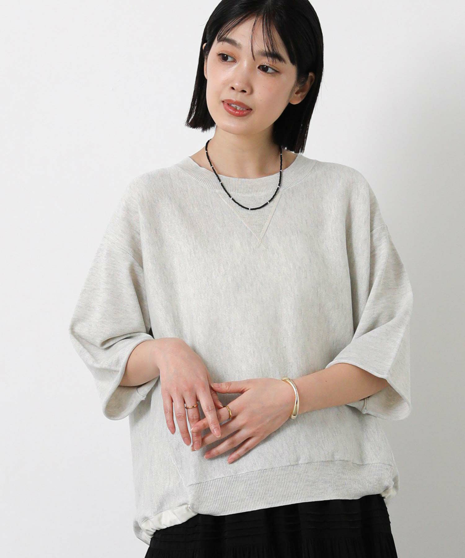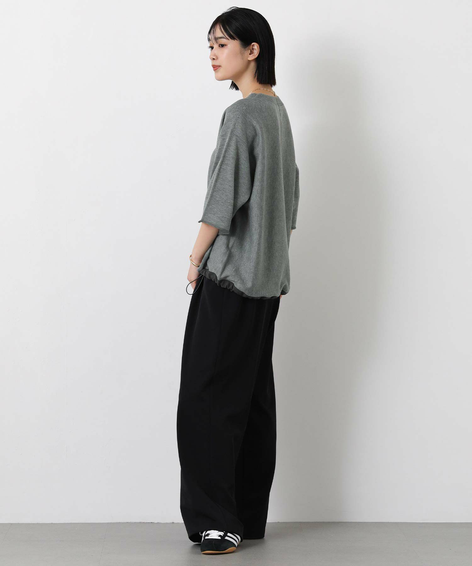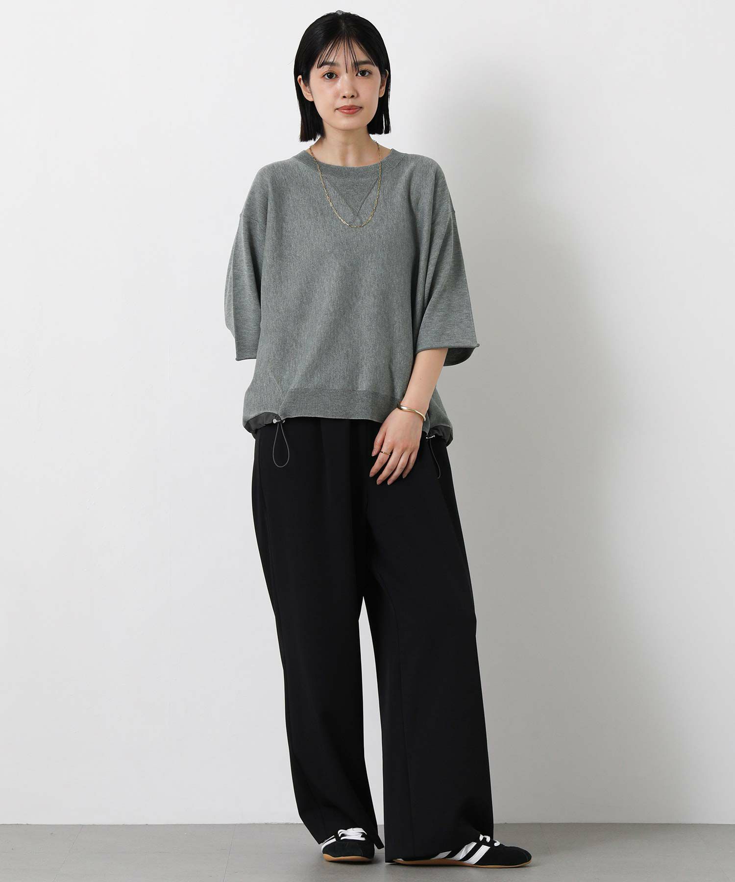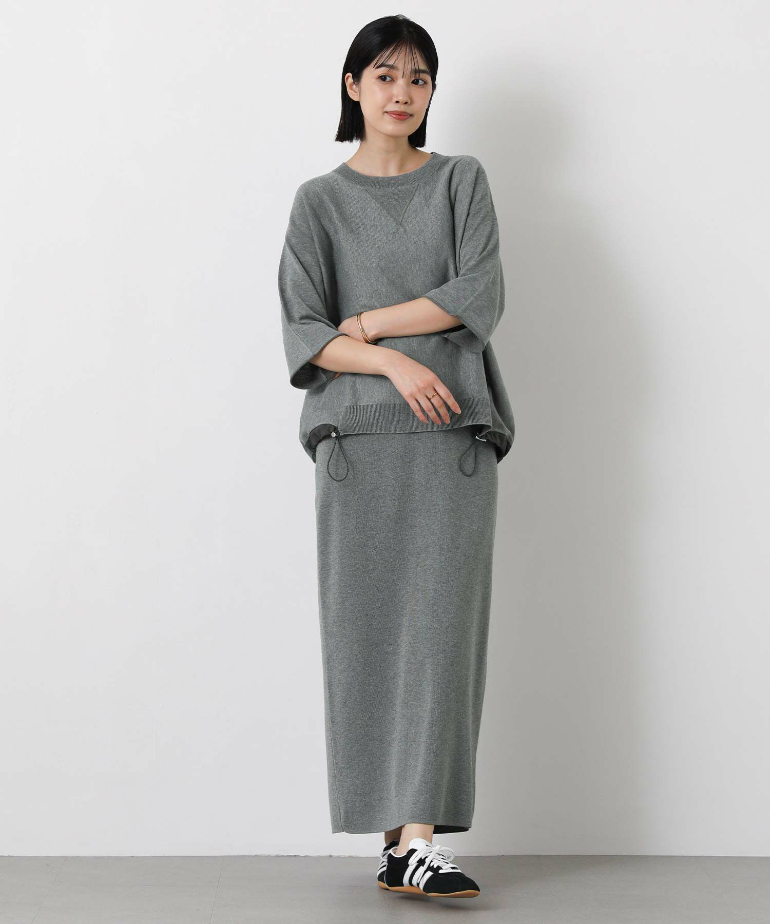 ニットで身体に馴染みやすく、程よい抜け感のあるスタイリングが簡単に完成。