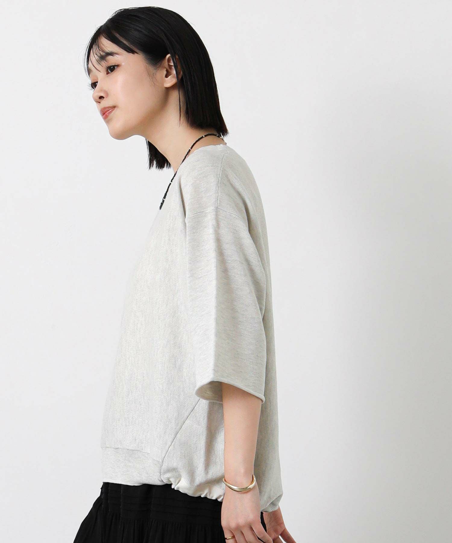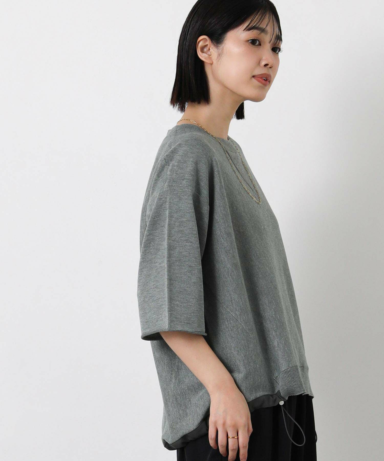 ニットで身体に馴染みやすく、程よい抜け感のあるスタイリングが簡単に完成。