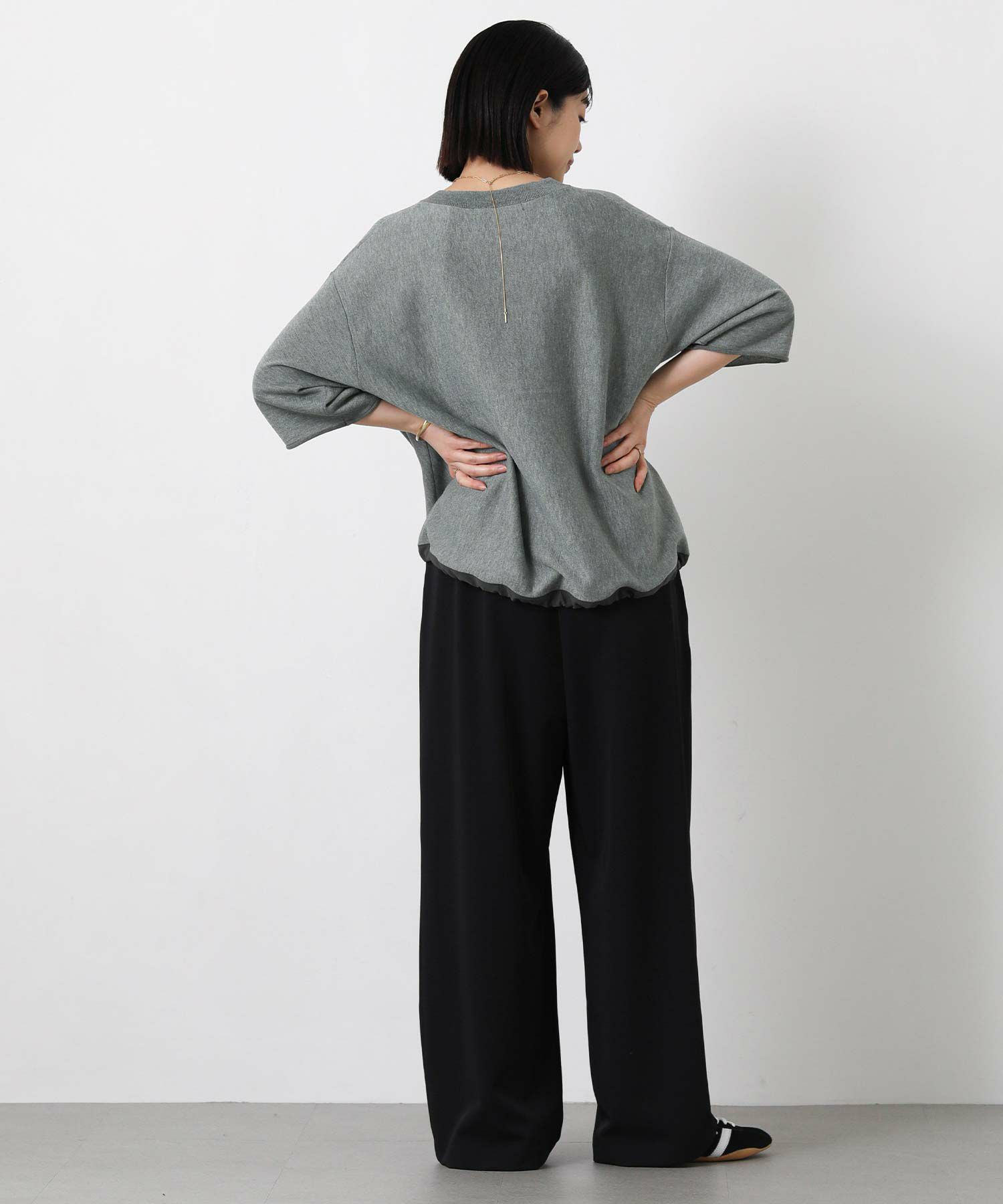 ニットで身体に馴染みやすく、程よい抜け感のあるスタイリングが簡単に完成。