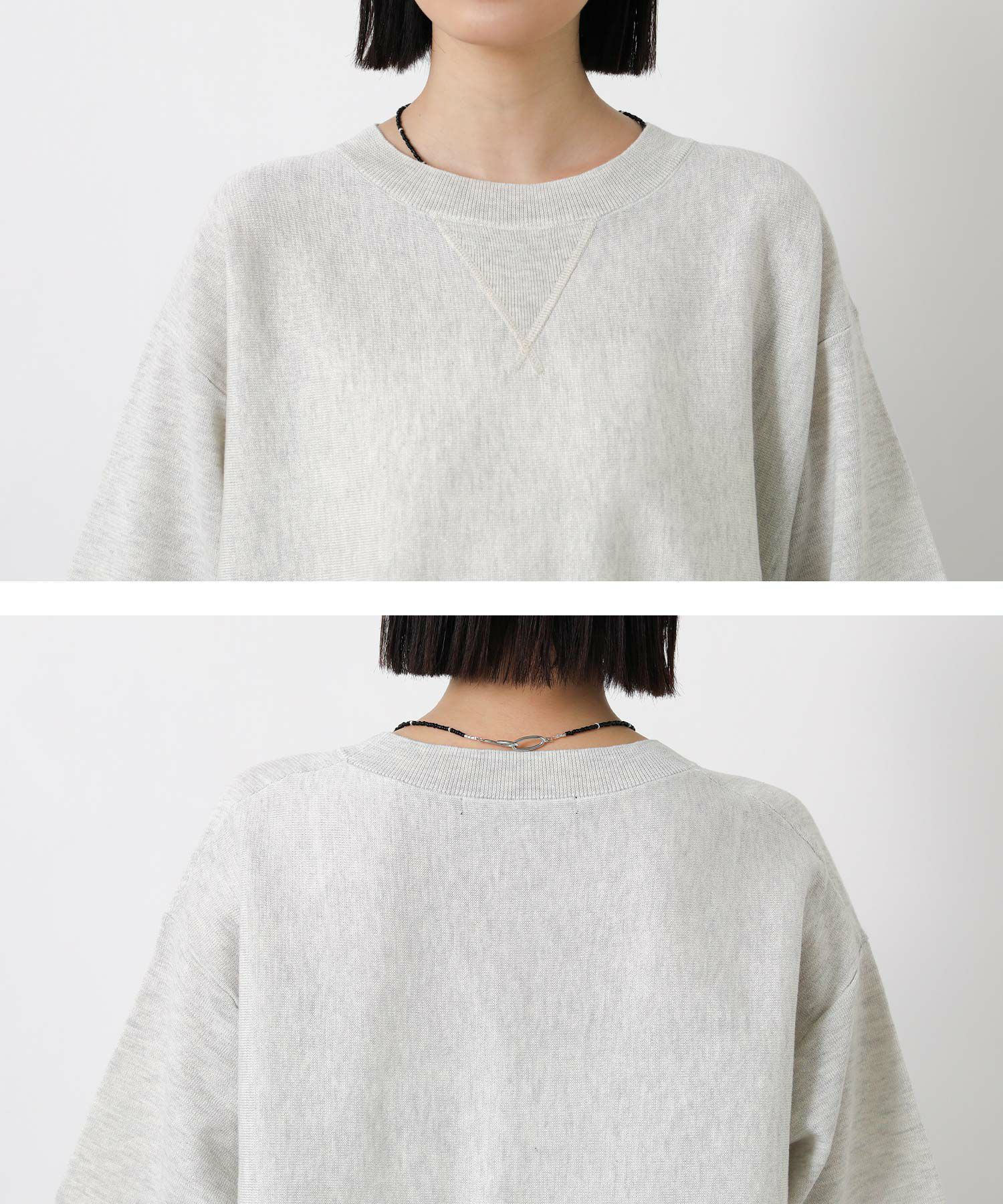 スウェット見えするニットプルオーバー。