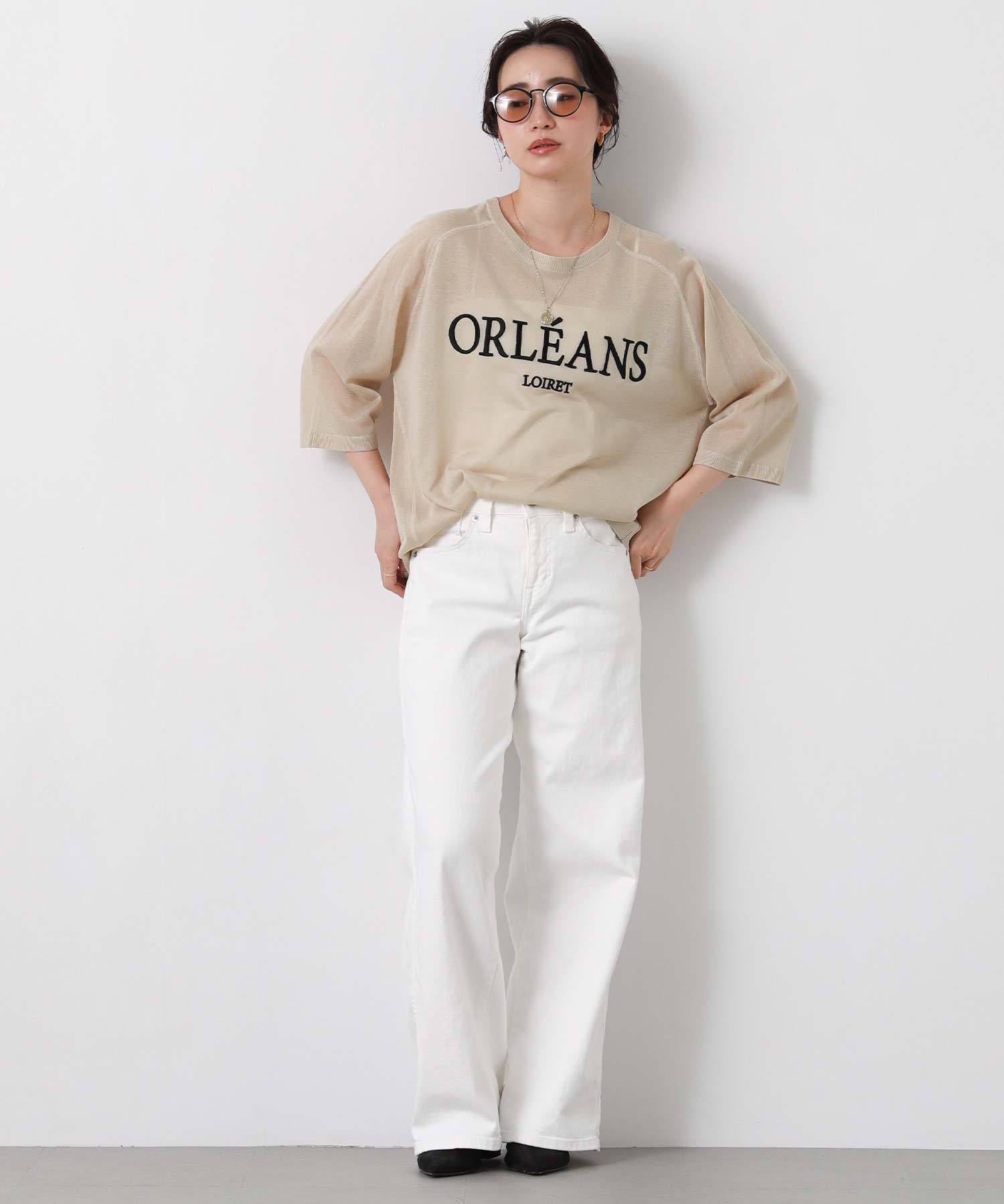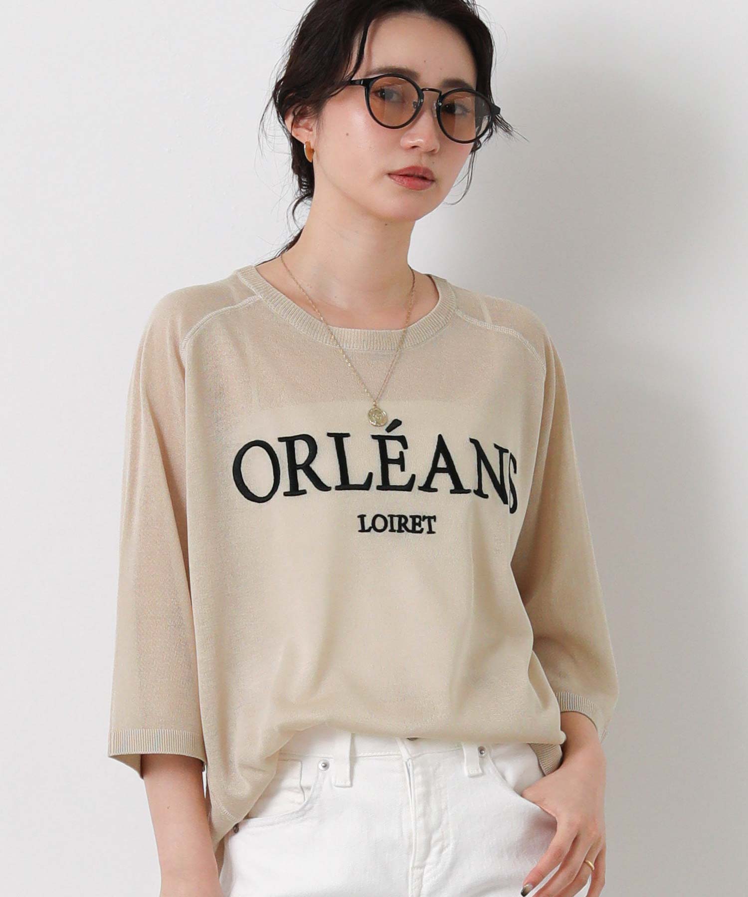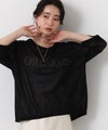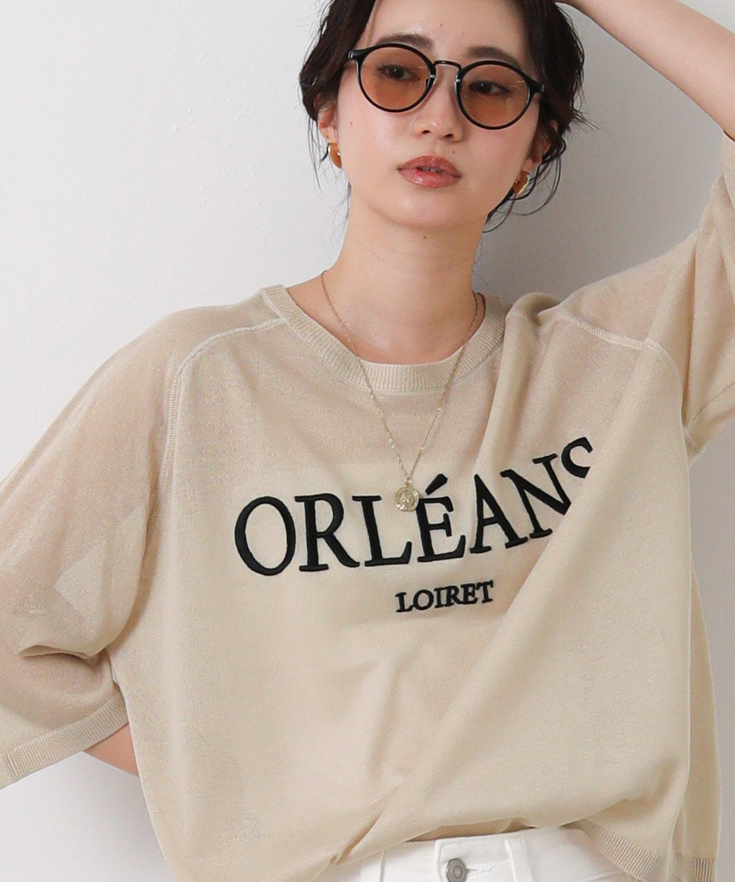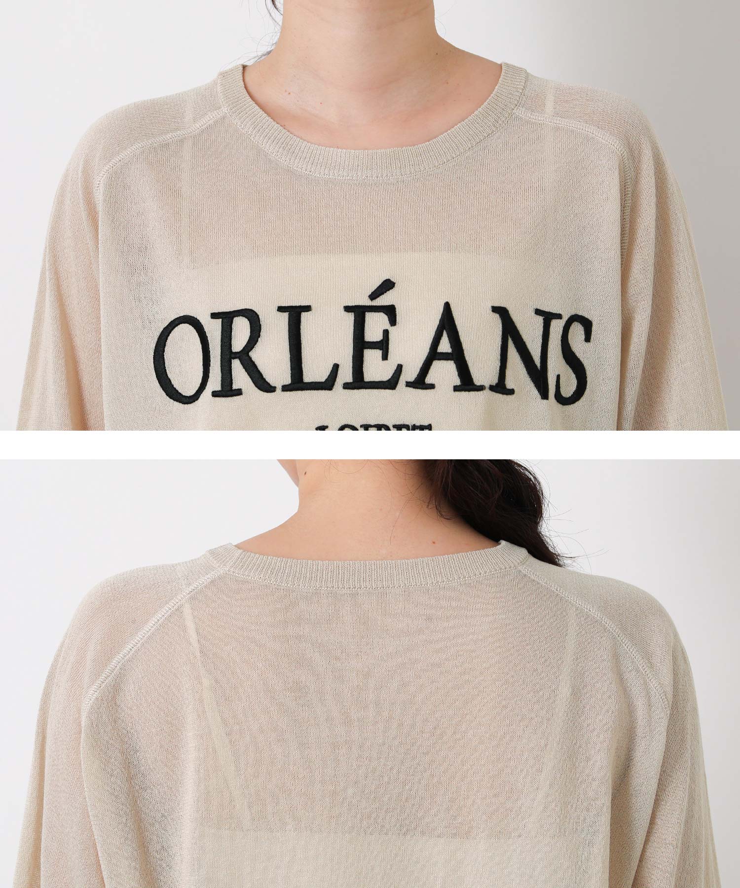 程よいシアー感と刺繍のロゴがカジュアルになり過ぎず上品な印象。