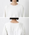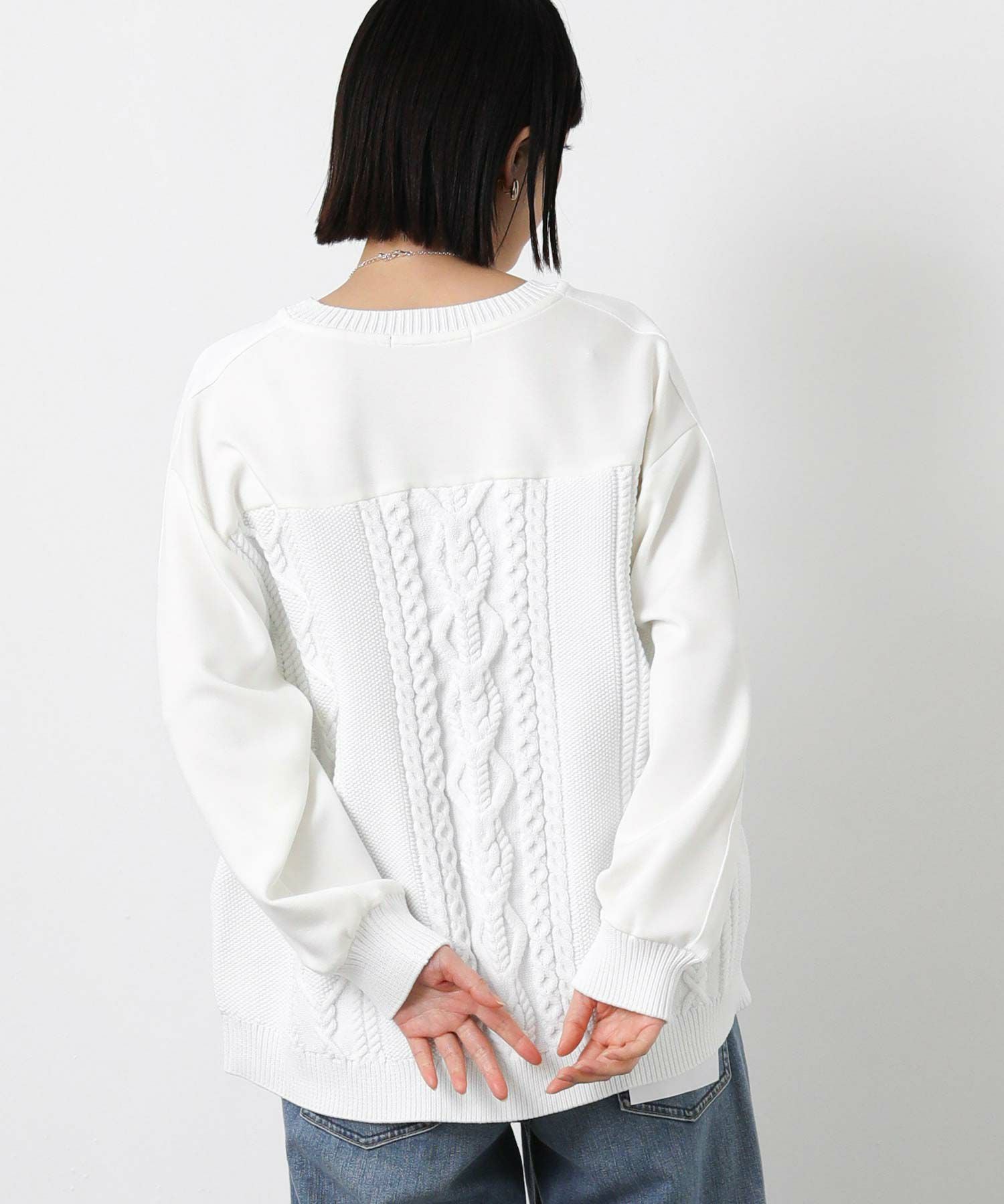 ケーブルニットとカットソーをドッキングしたプルオーバー。
