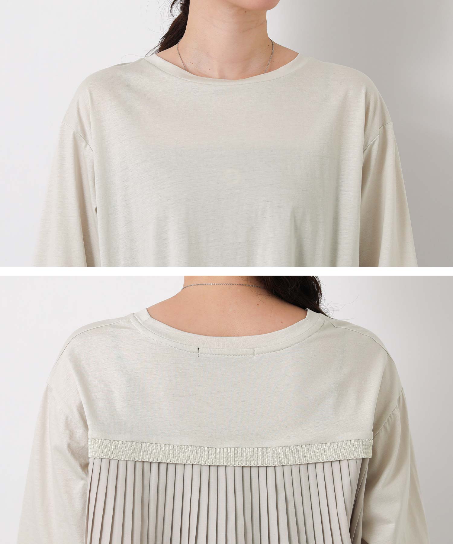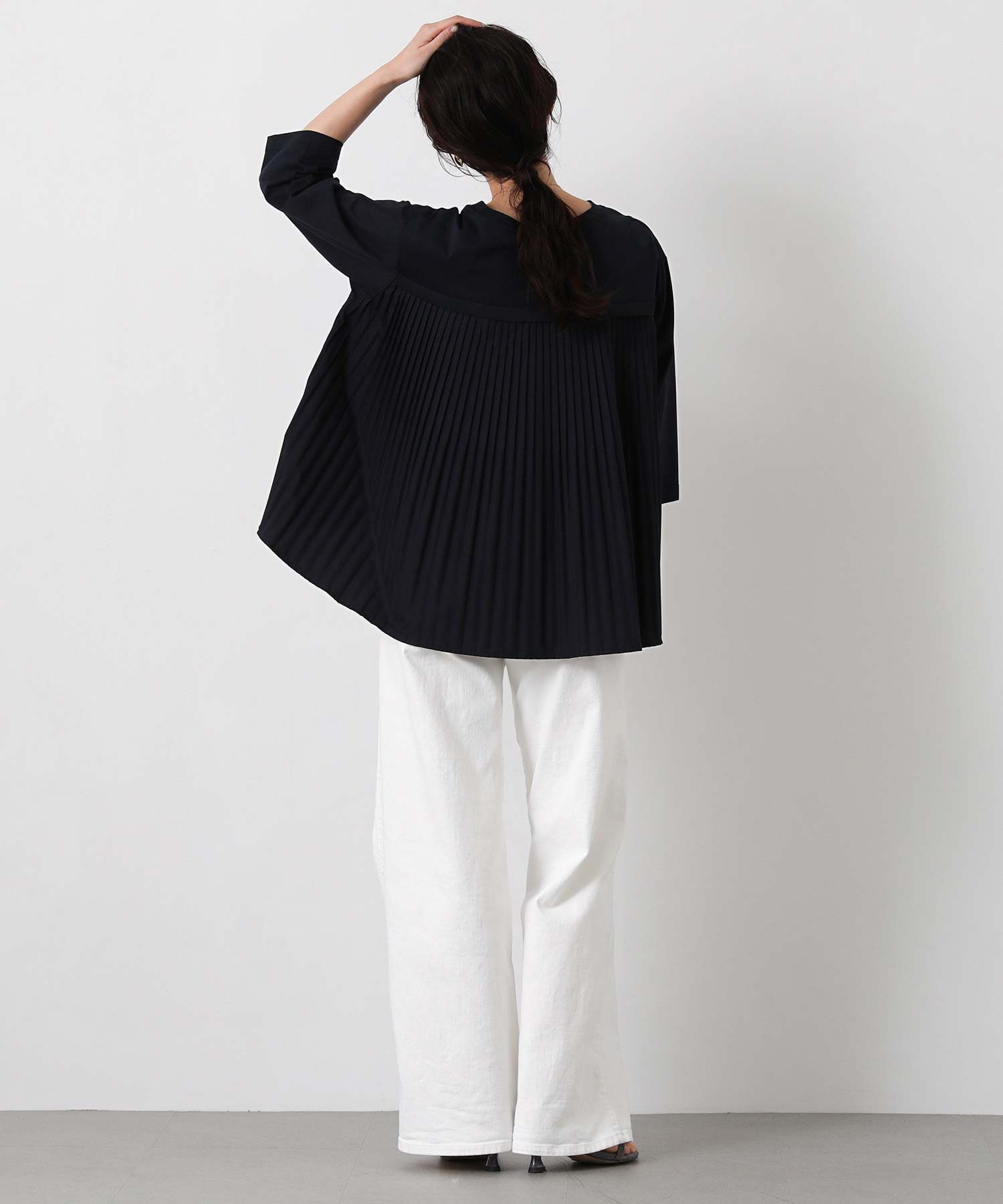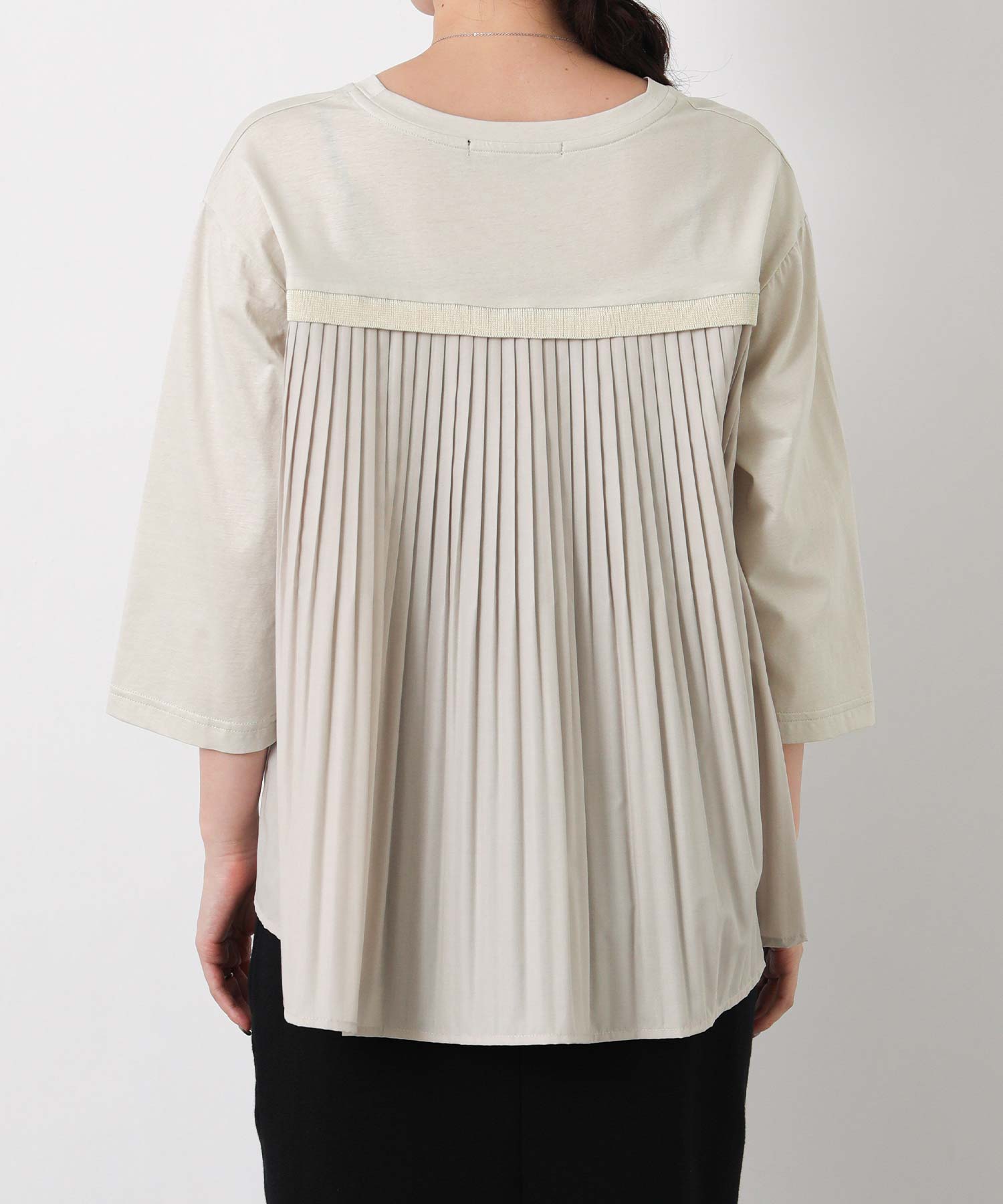 背中の布帛部分はプリーツ加工が施されており、動きのある軽やかな印象。