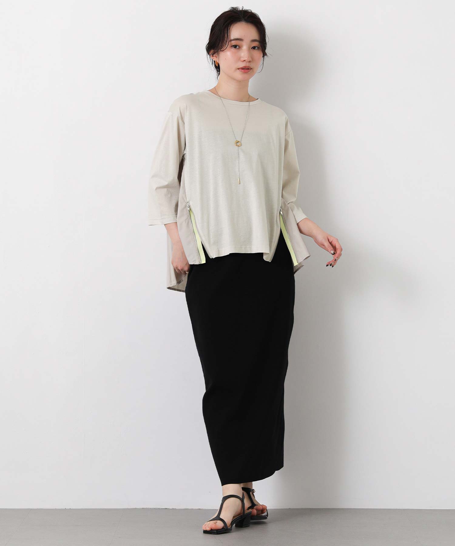 ファスナーの開閉も可能で、お好みでスリットデザインも楽しめます。