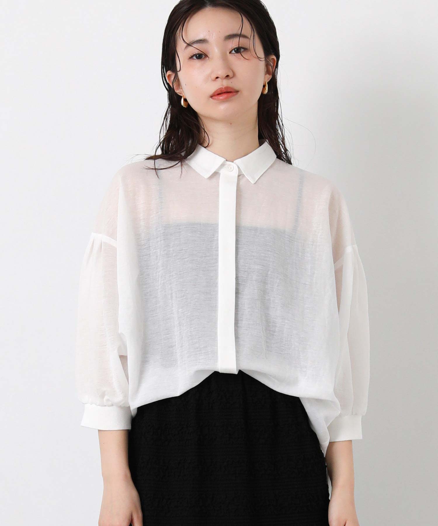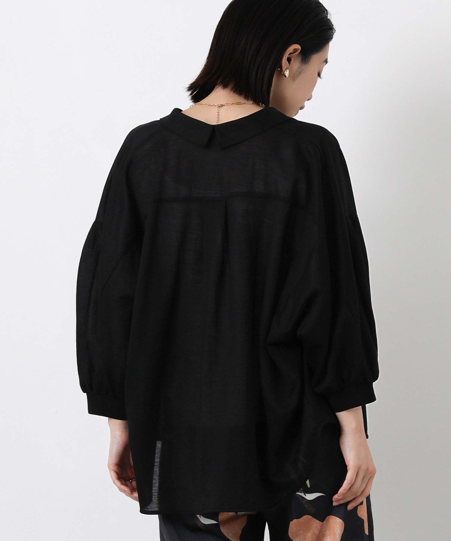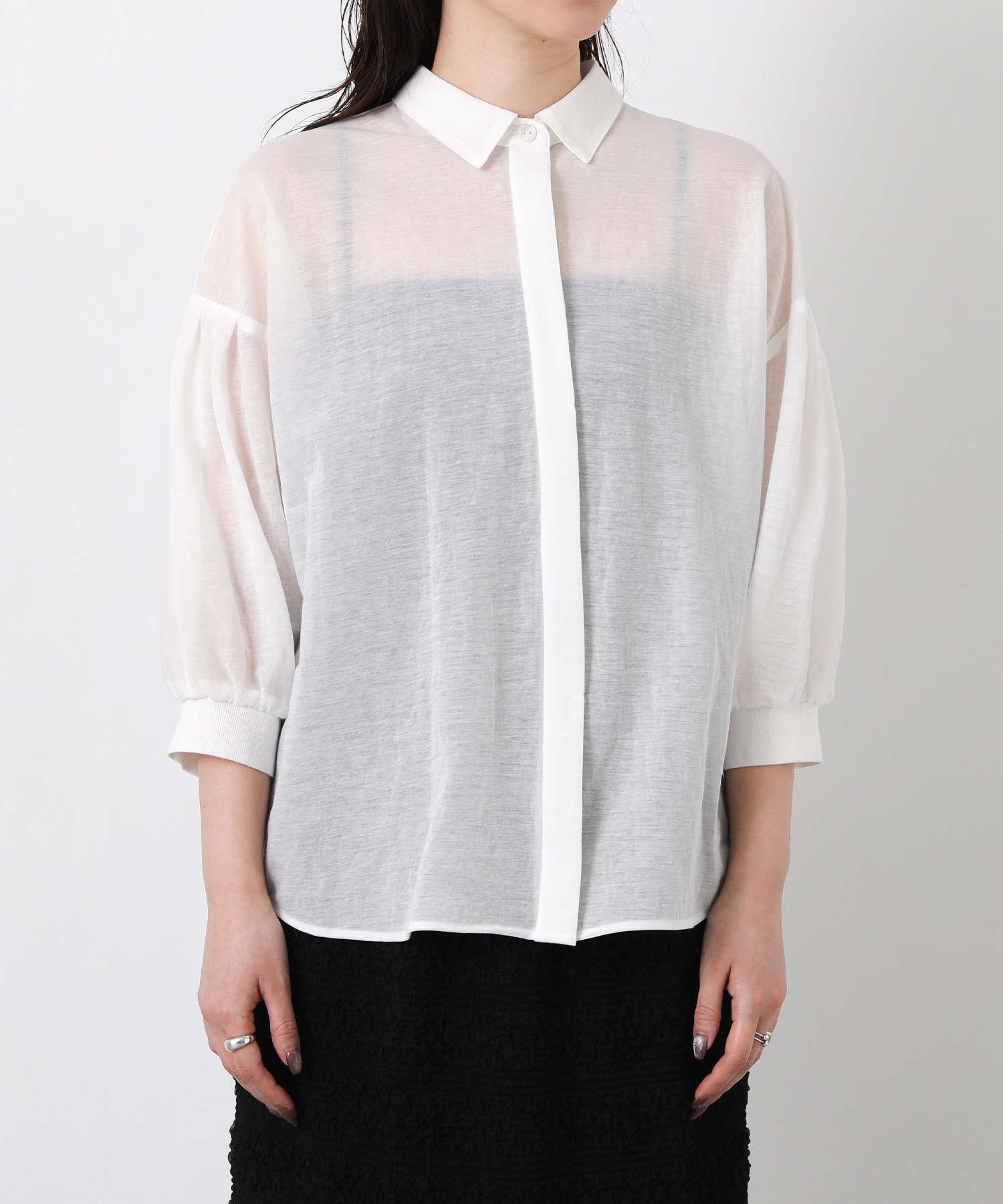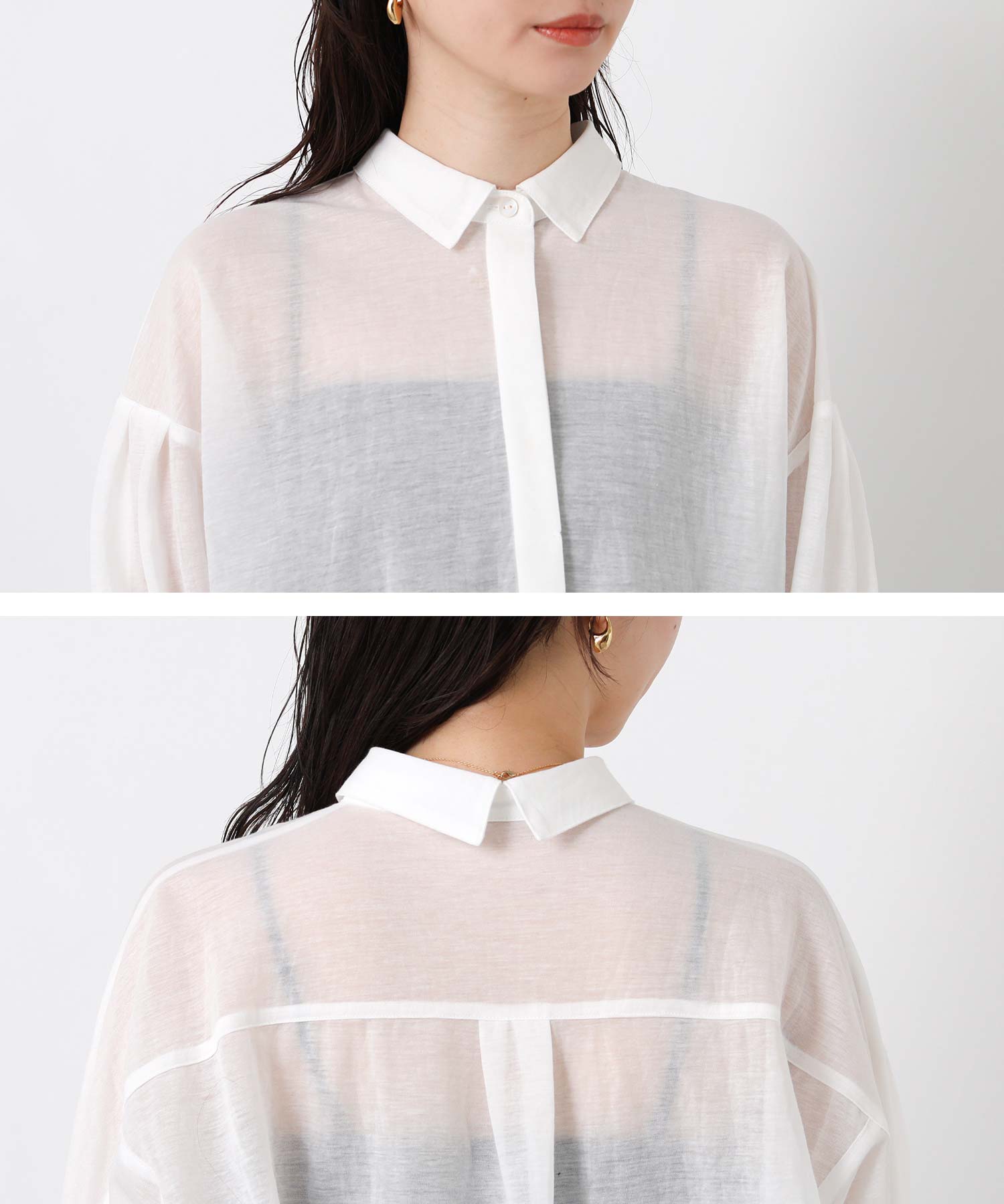 軽くてドライタッチな、程よいシアー感のあるカットソー生地を使用したレギュラーカラーのブラウス。