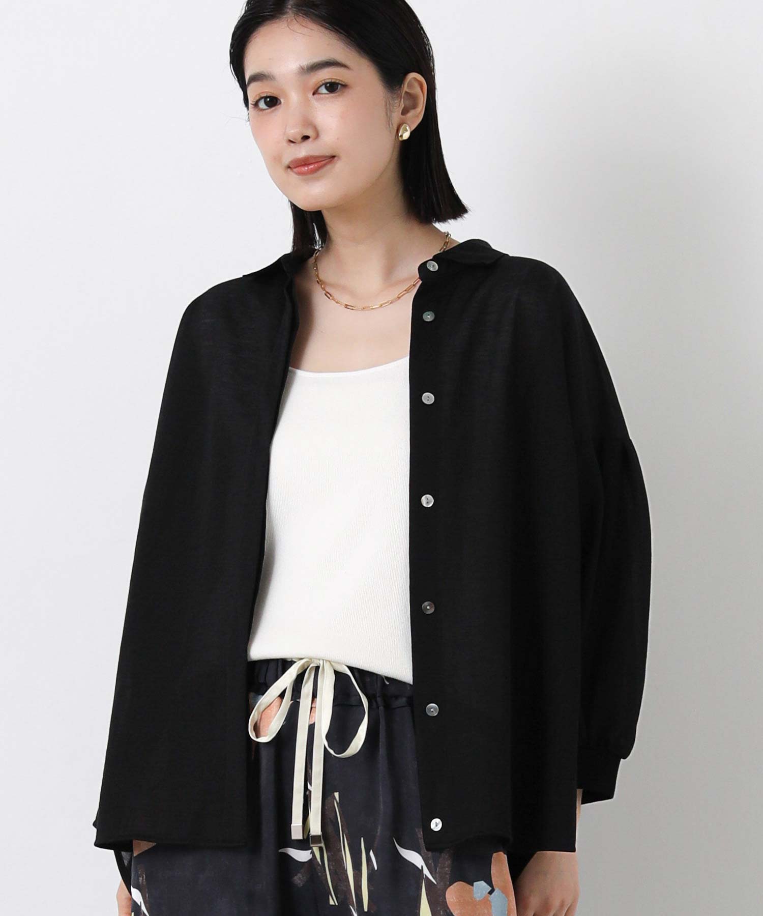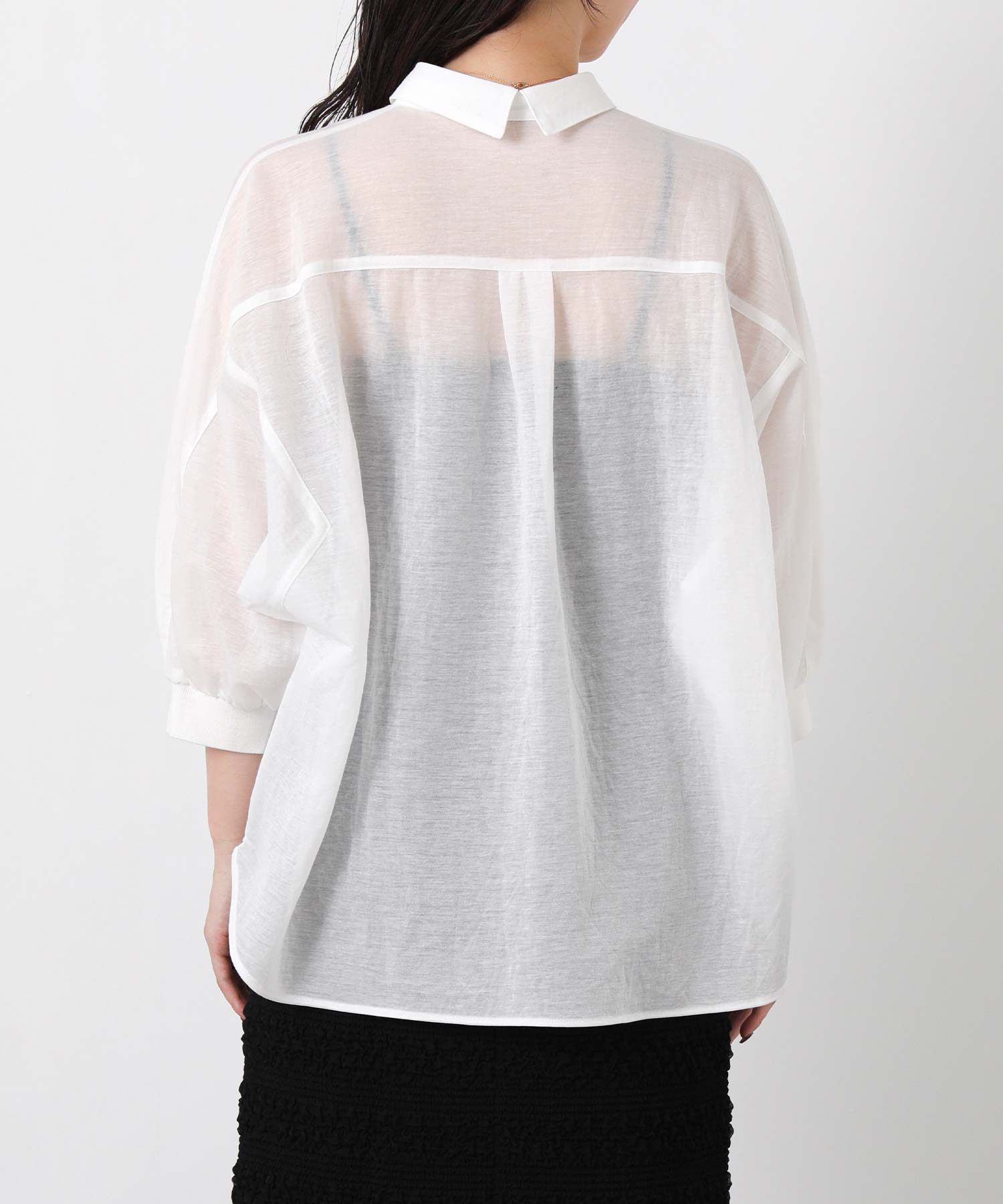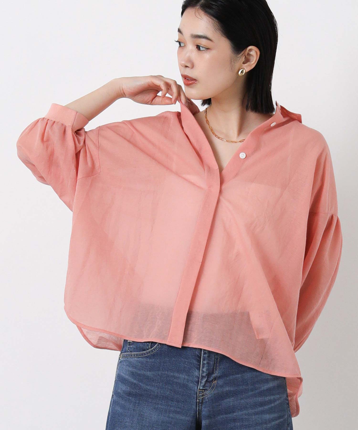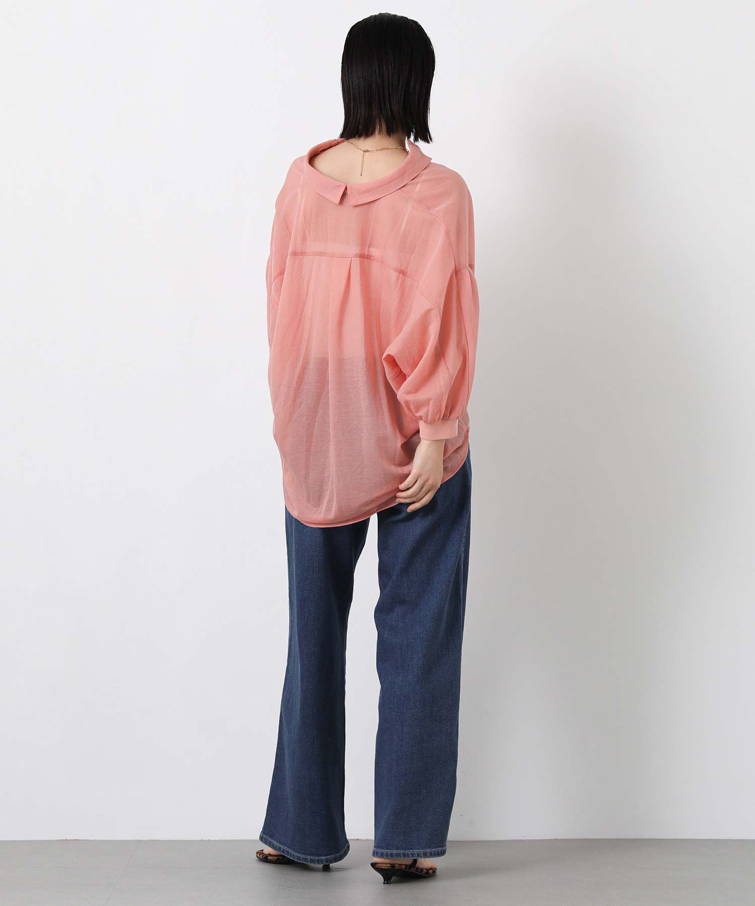 軽くてドライタッチな、程よいシアー感のあるカットソー生地を使用したレギュラーカラーのブラウス。