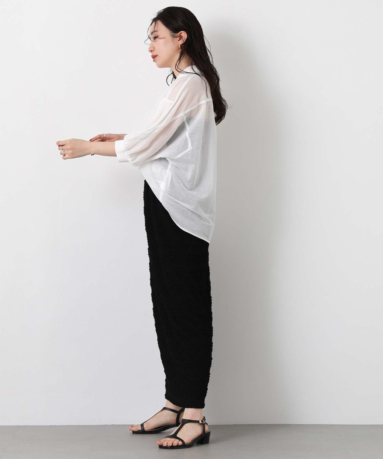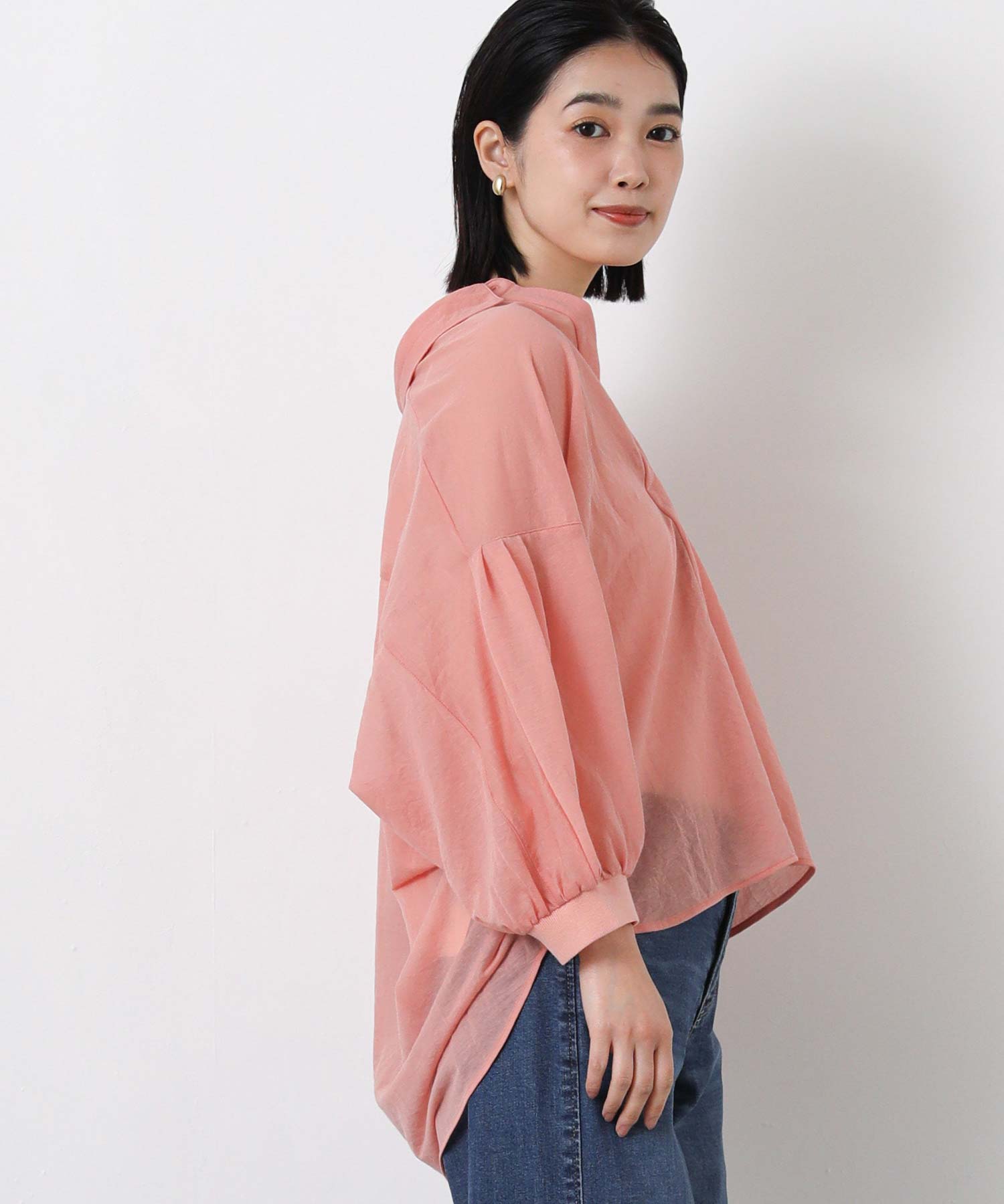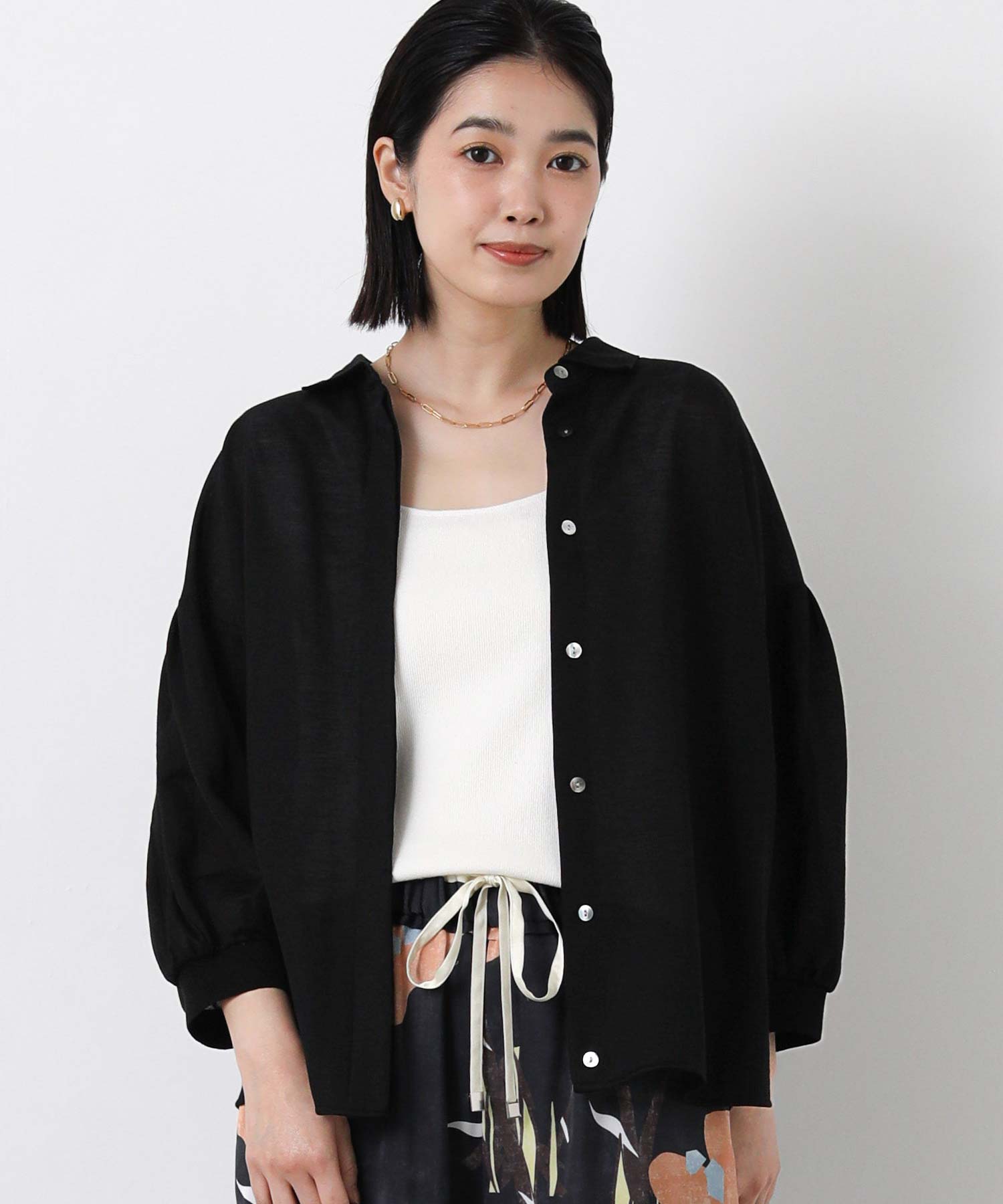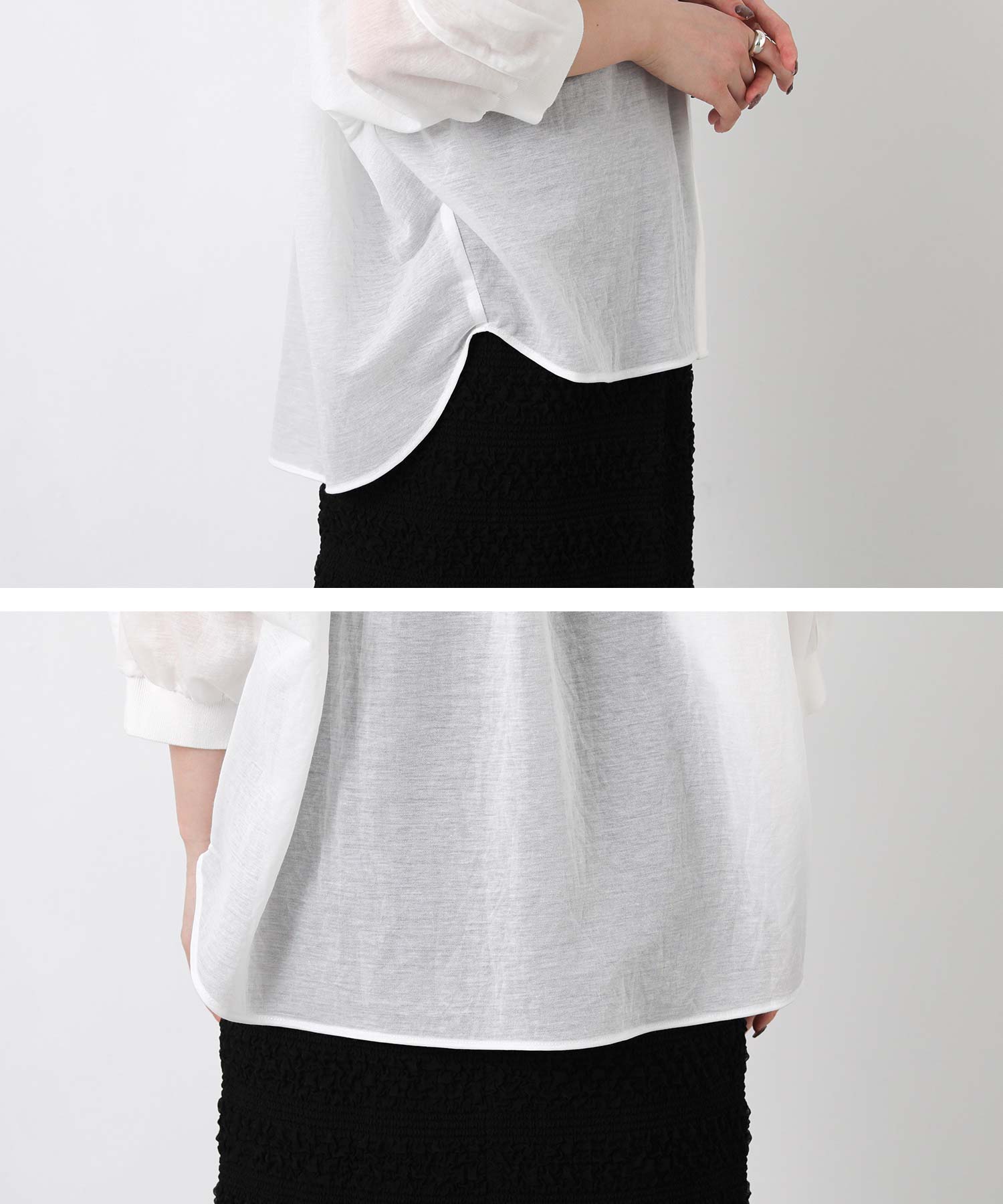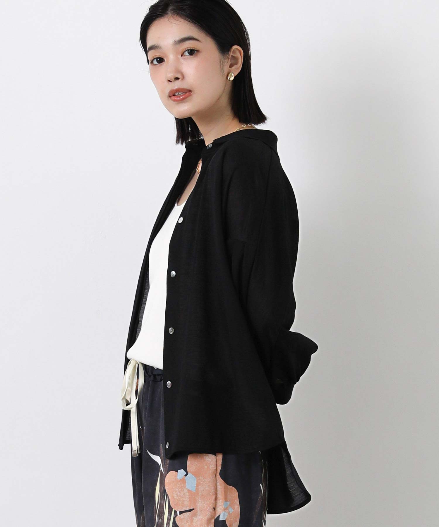 軽くてドライタッチな、程よいシアー感のあるカットソー生地を使用したレギュラーカラーのブラウス。