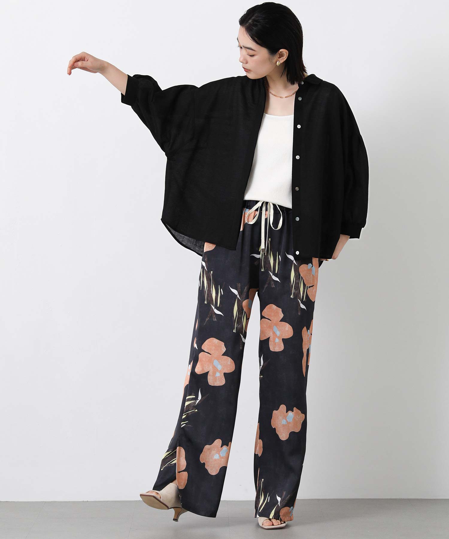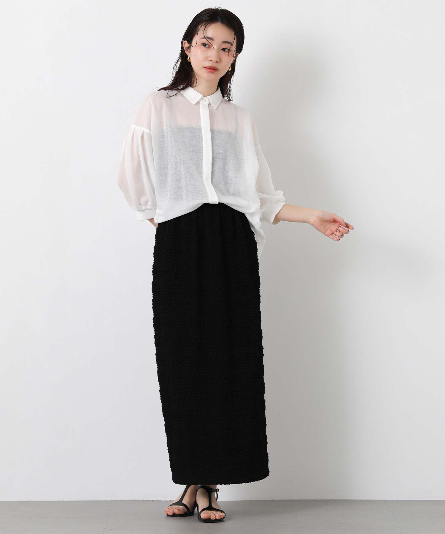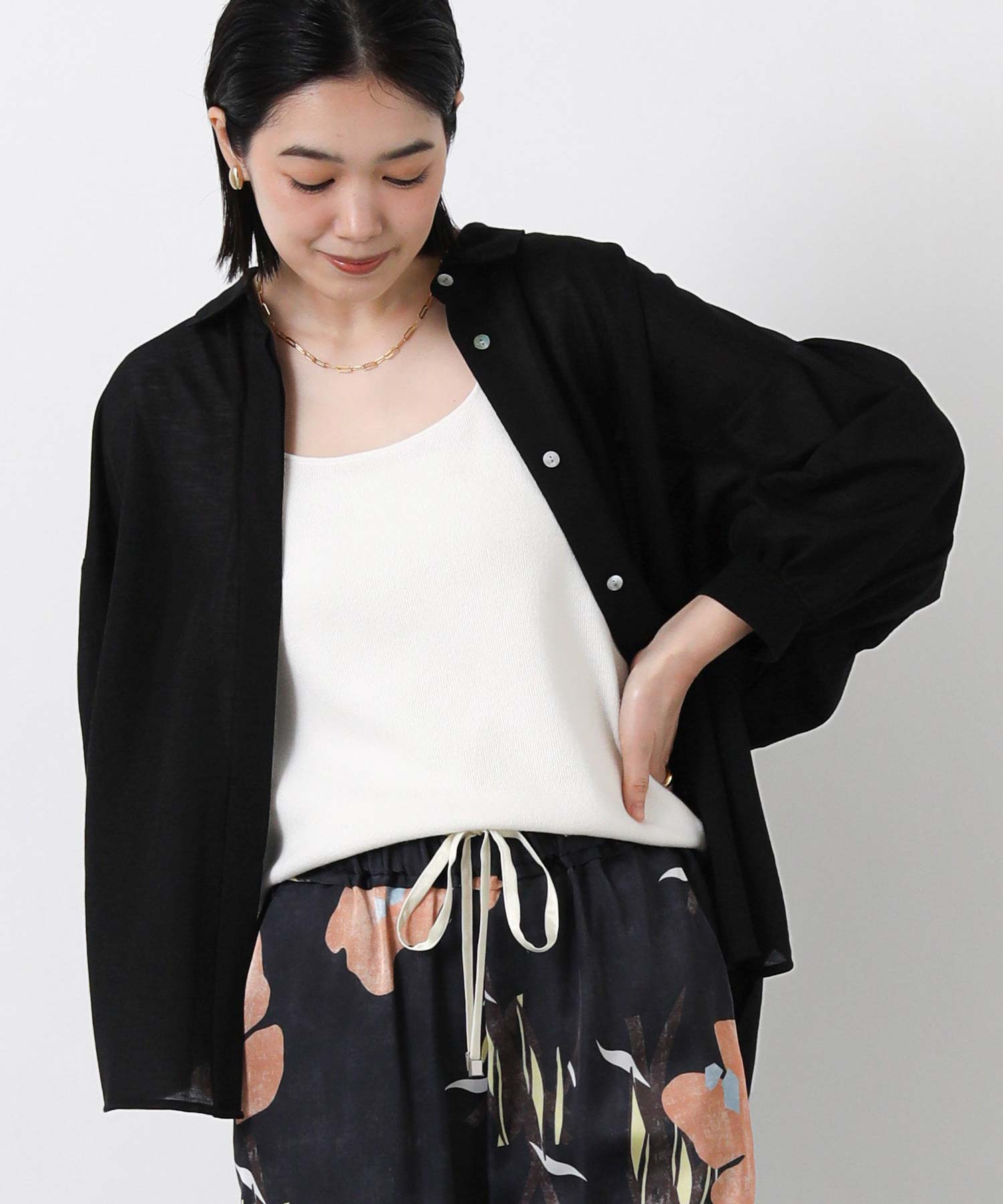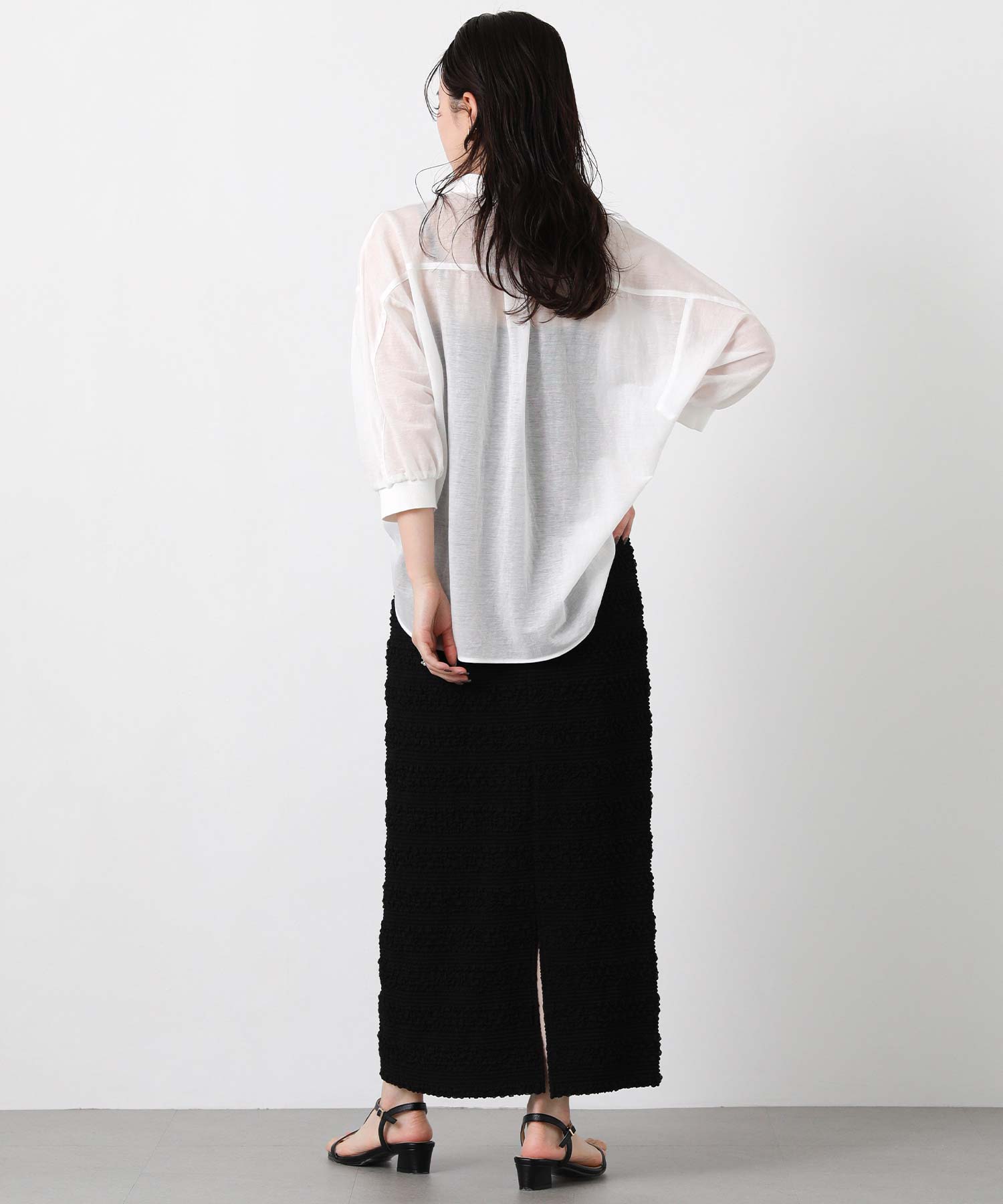 軽くてドライタッチな、程よいシアー感のあるカットソー生地を使用したレギュラーカラーのブラウス。