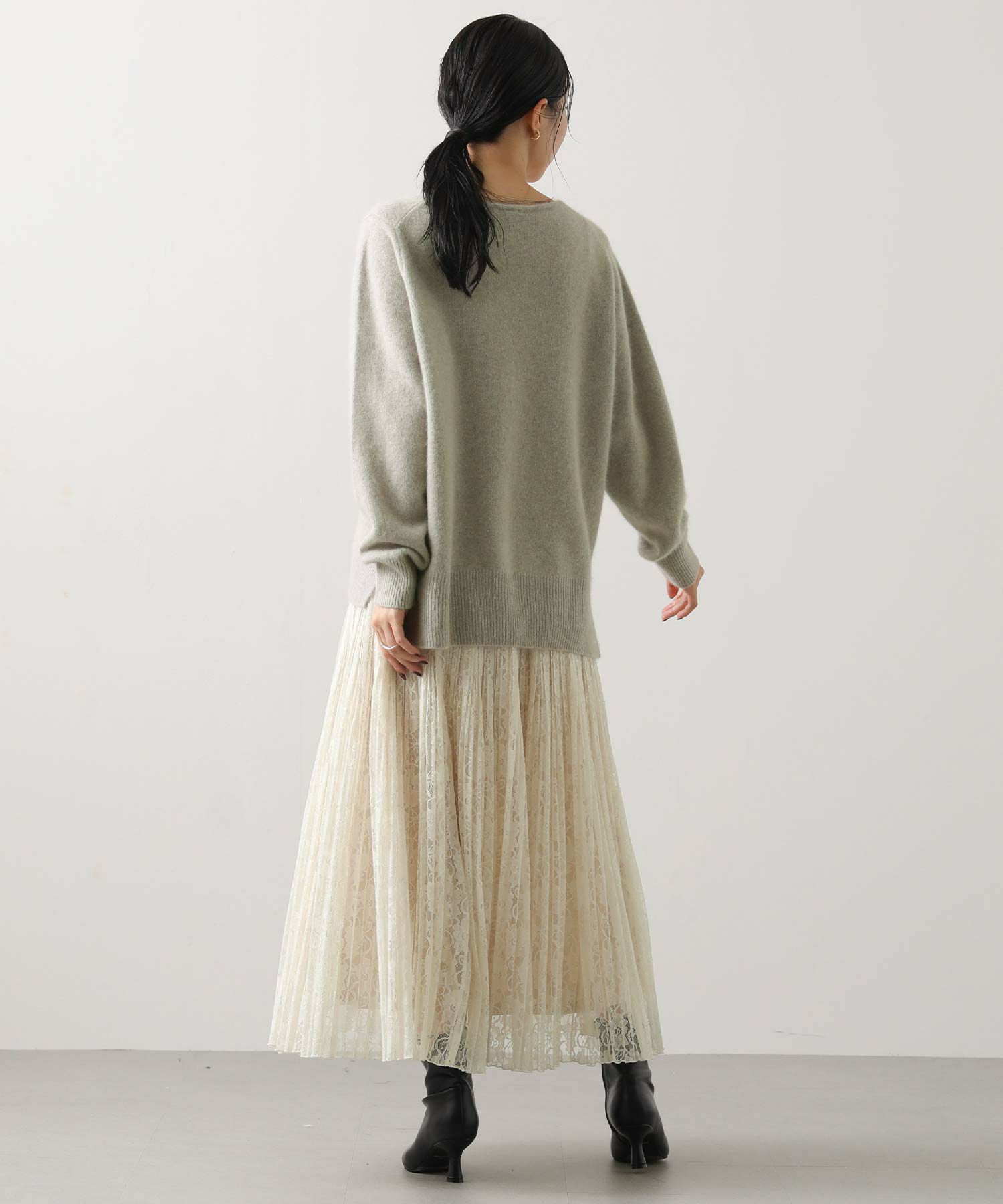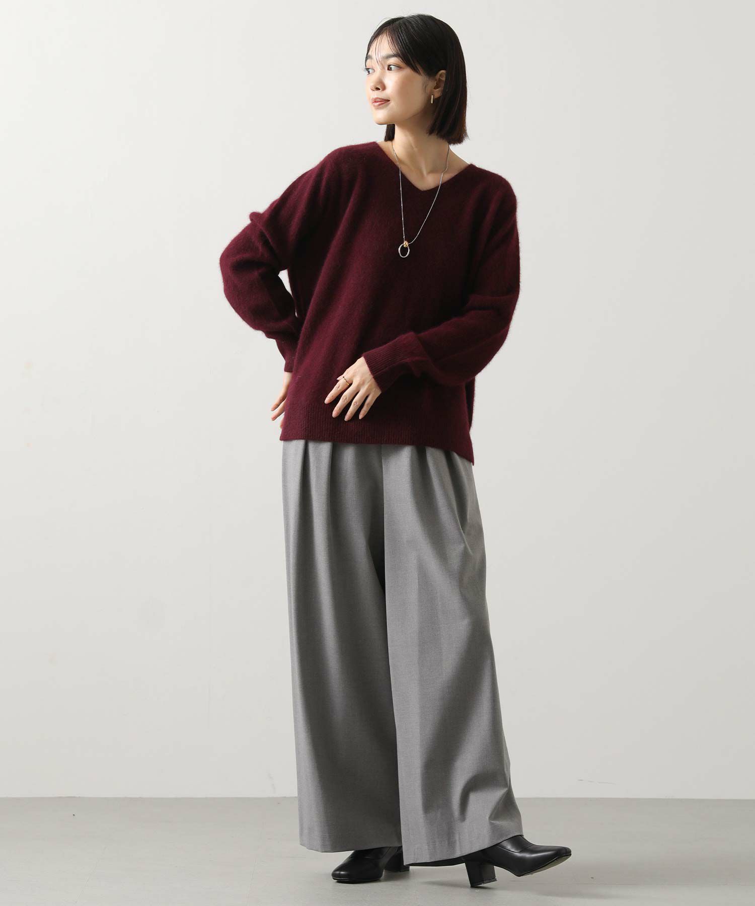 ふわっとしたFOX混素材の特徴を最大限に活かした見た目と、程よいゆとりのあるサイジングがポイント。