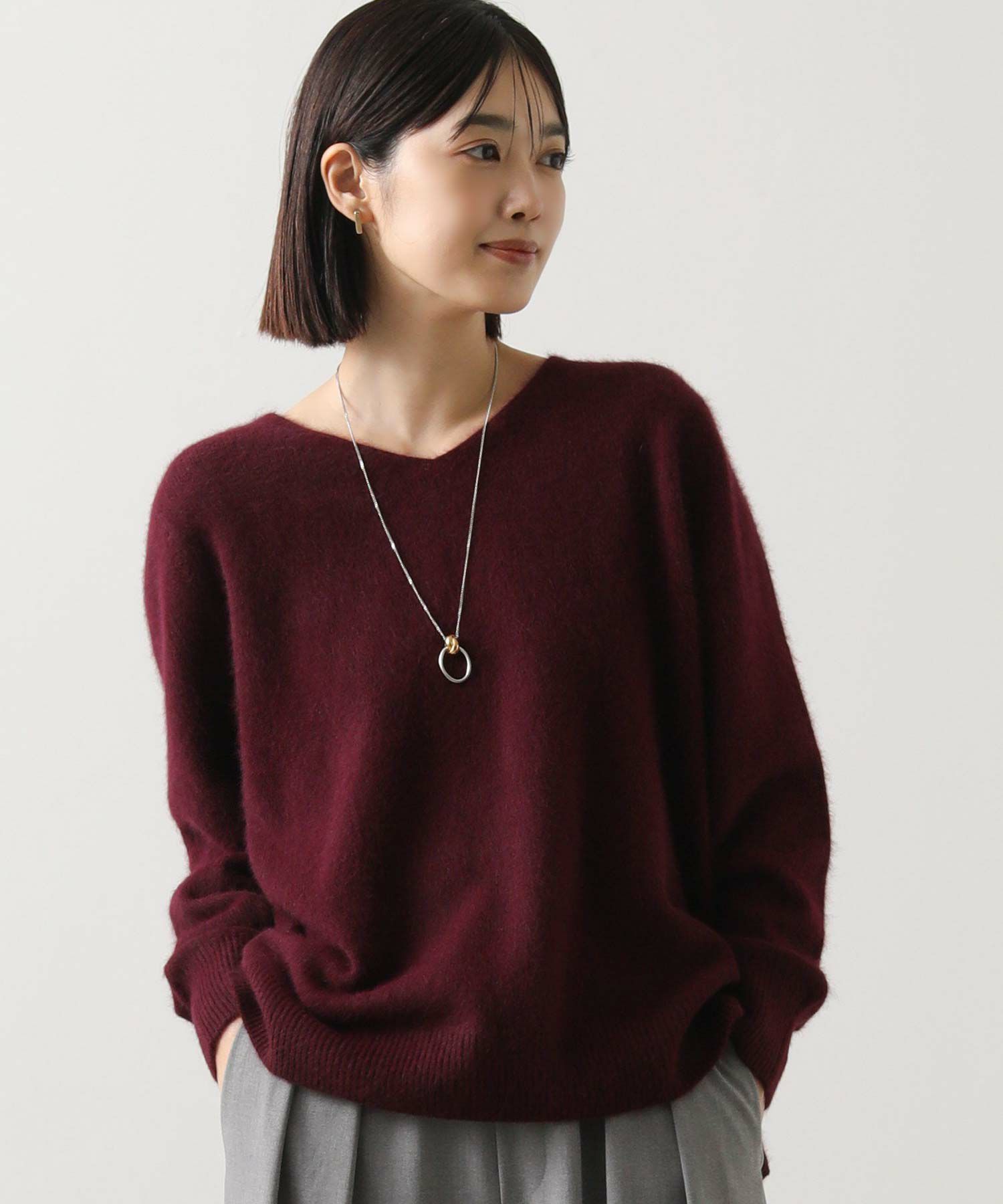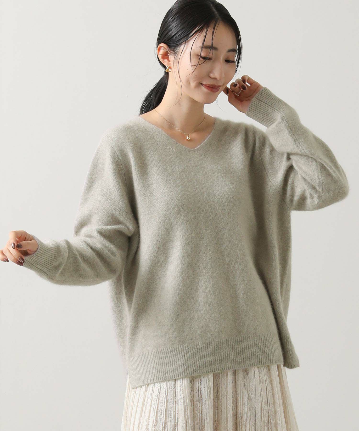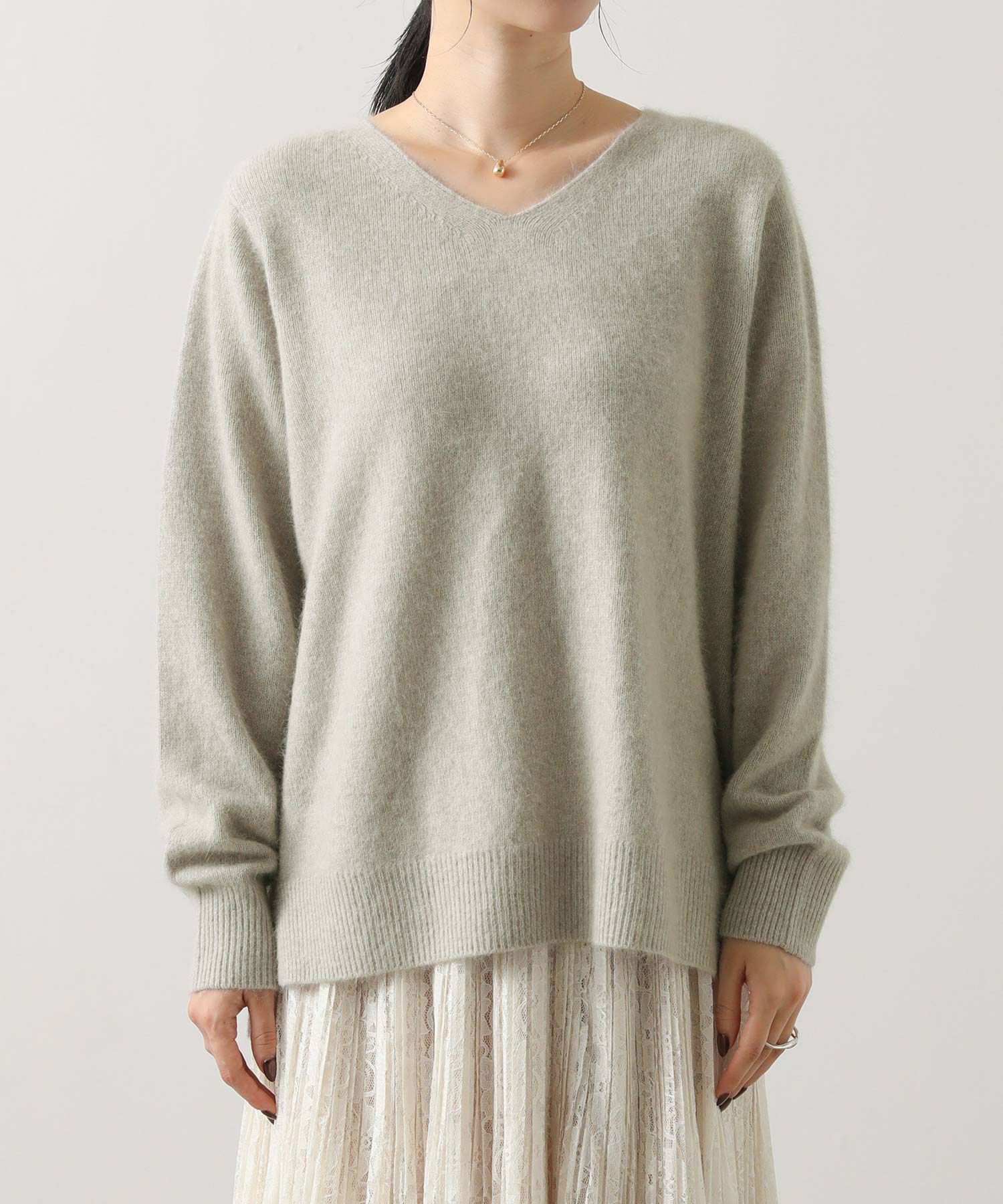 シンプルでありながらも高級感と上品さのあるVネックニット。