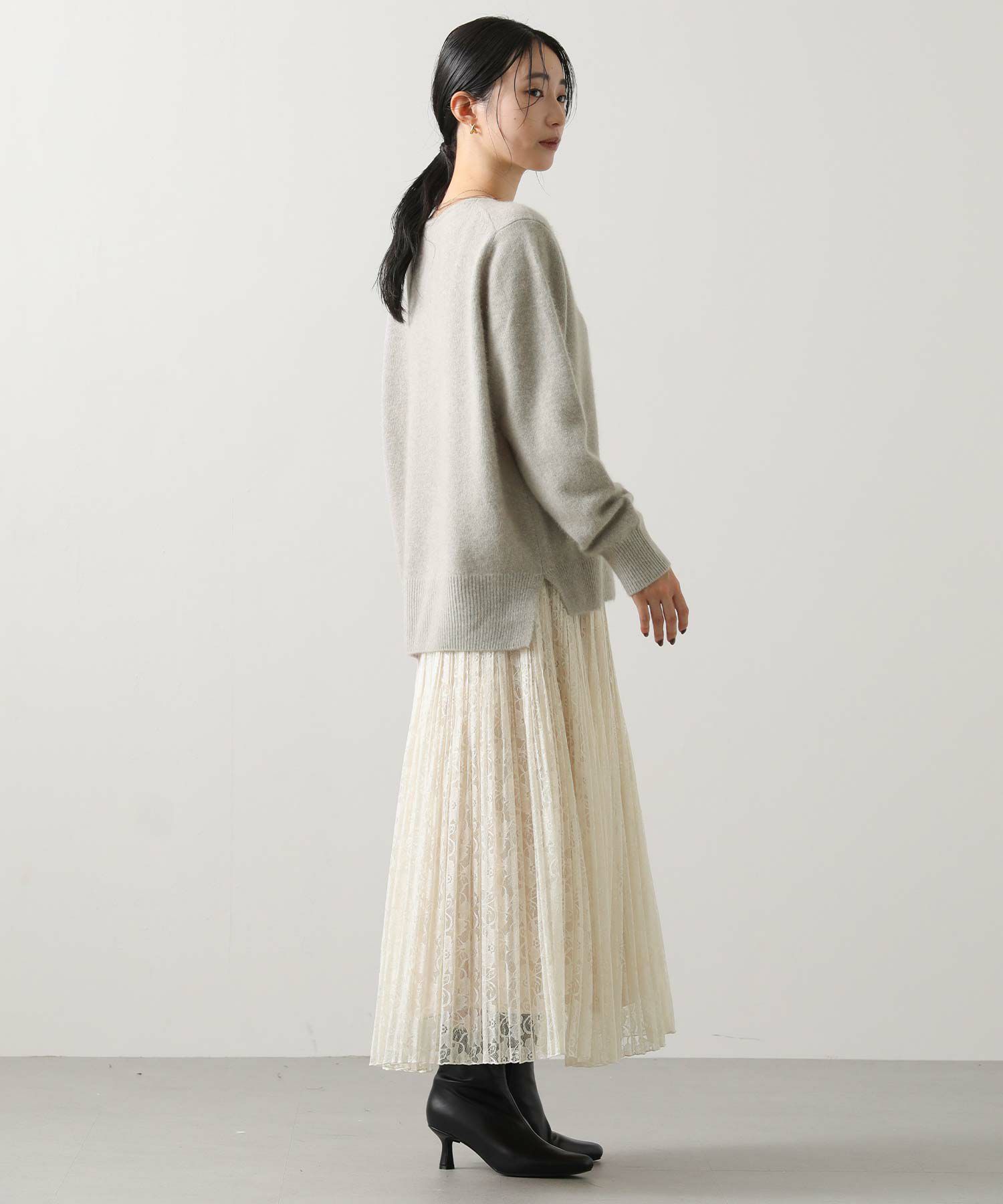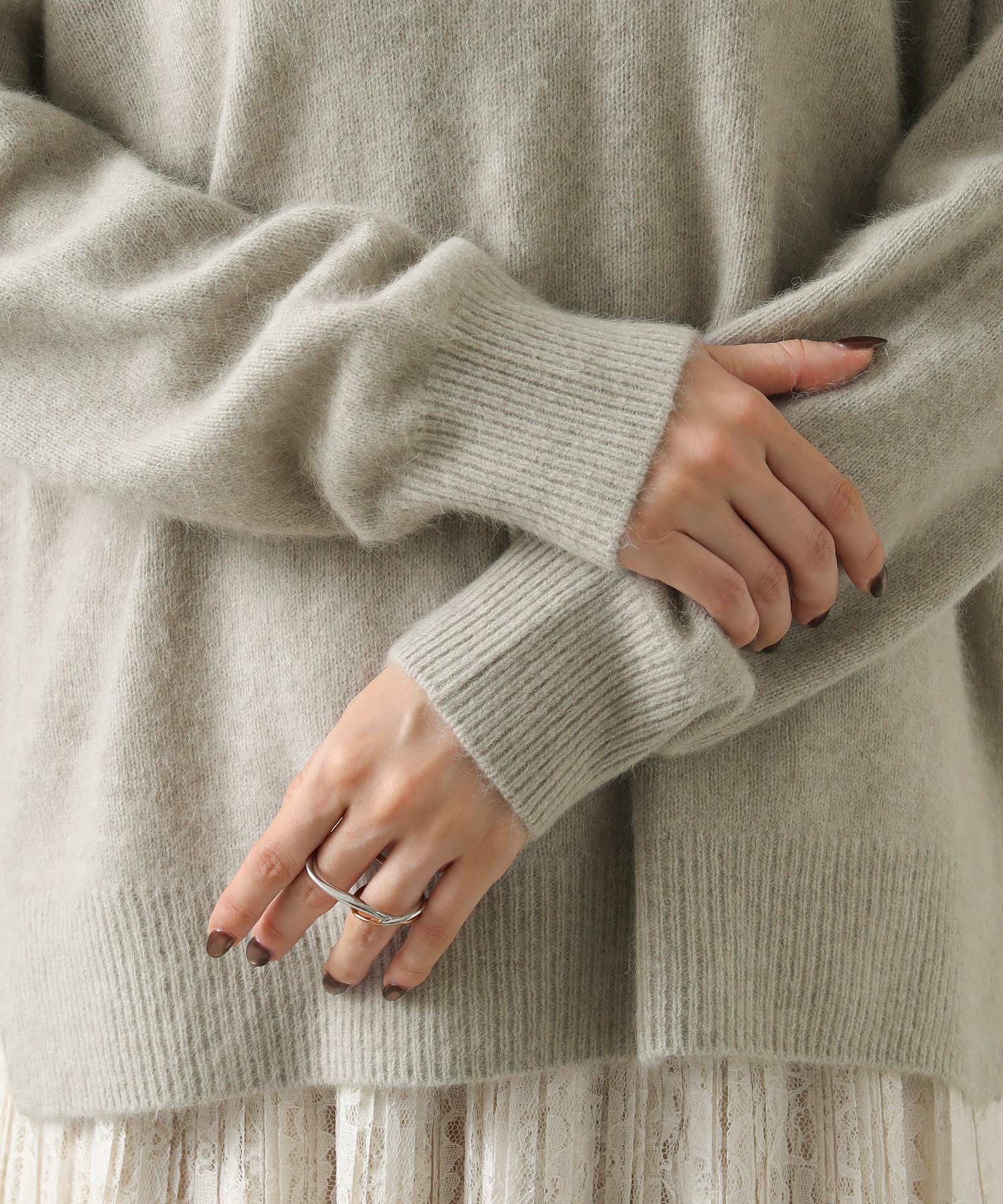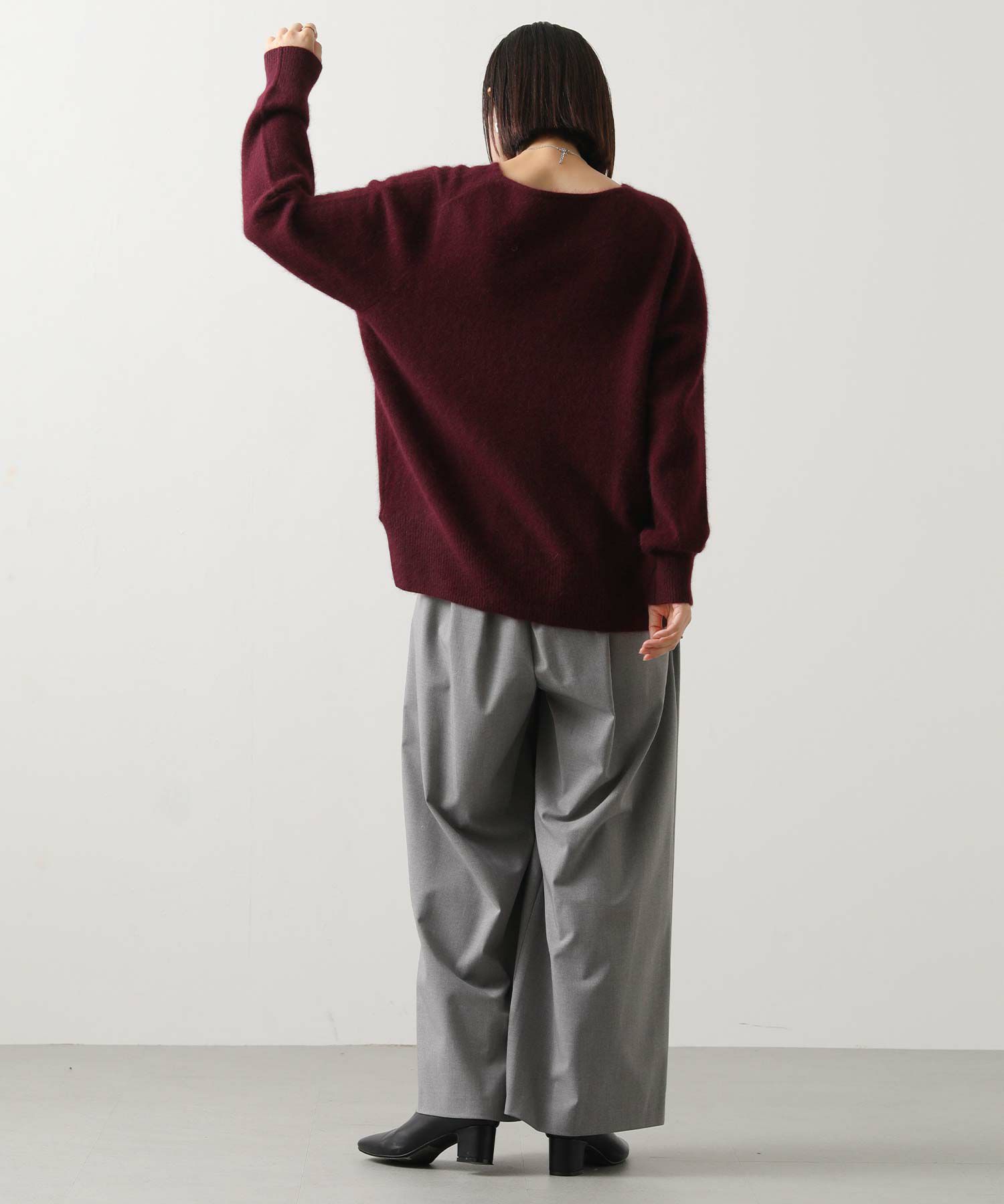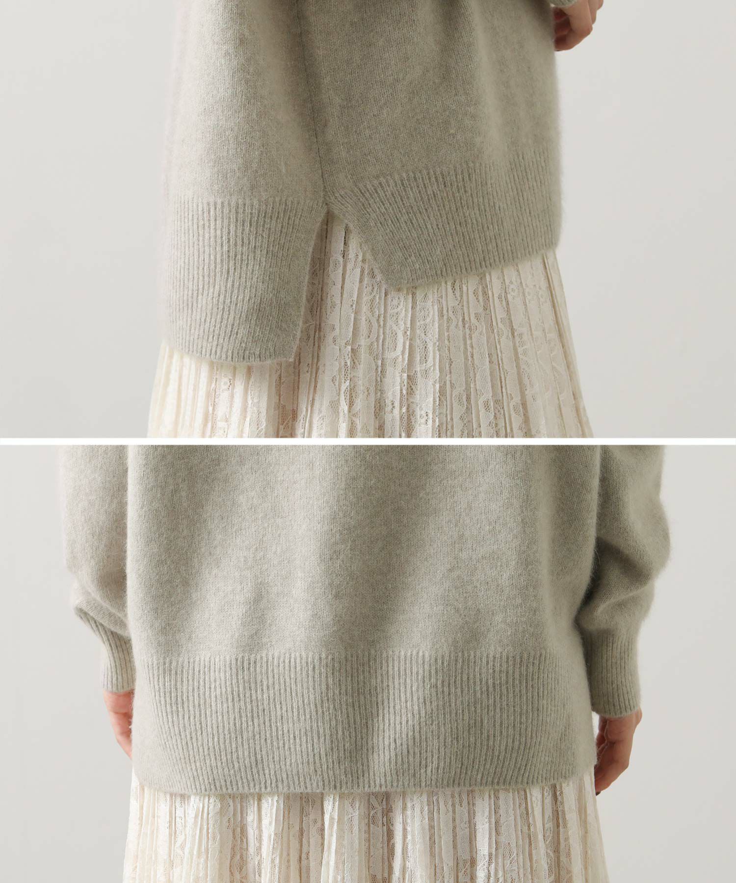 ふわっとしたFOX混素材の特徴を最大限に活かした見た目と、程よいゆとりのあるサイジングがポイント。