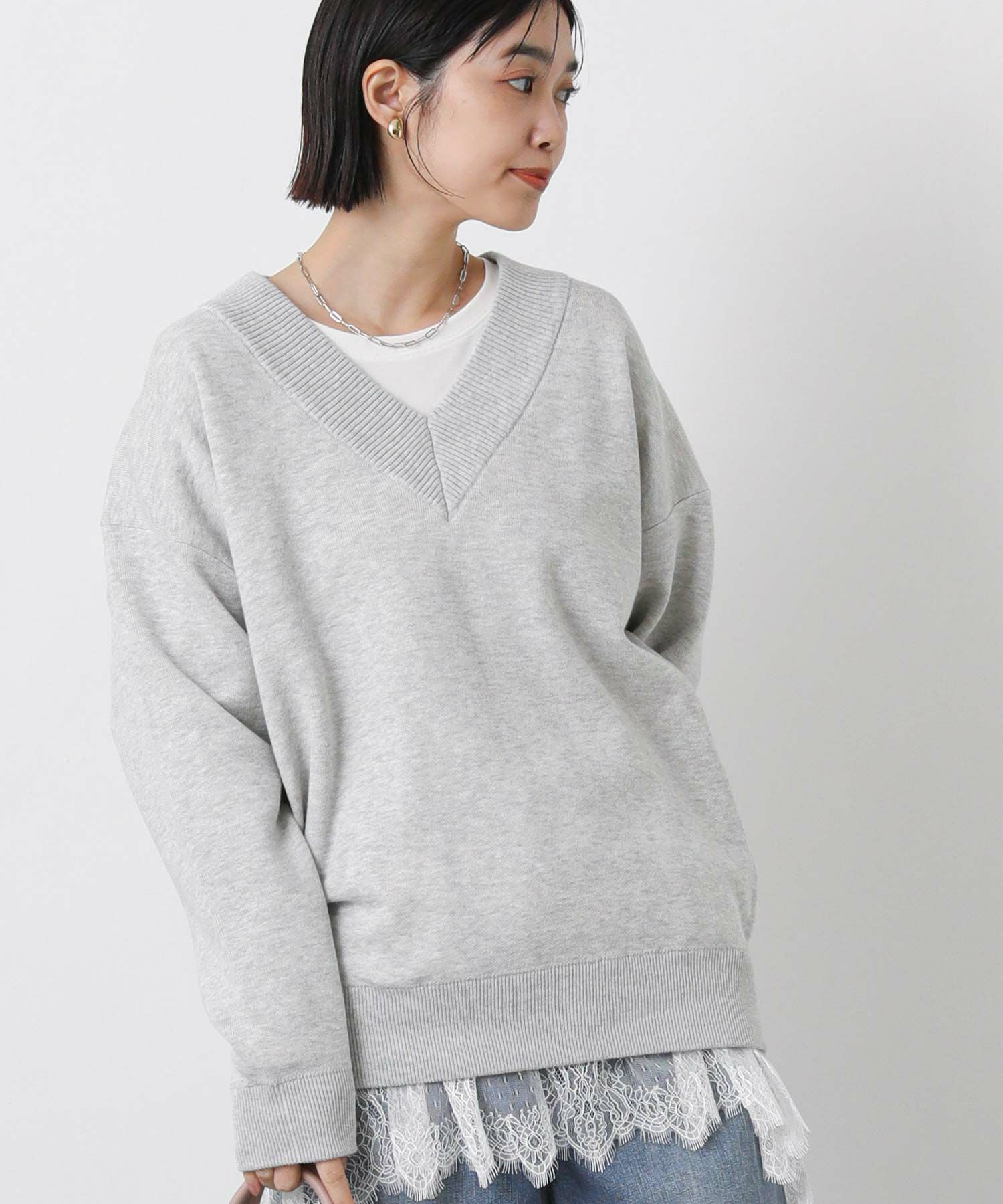 ダブルフェイスバックロゴVネックニット