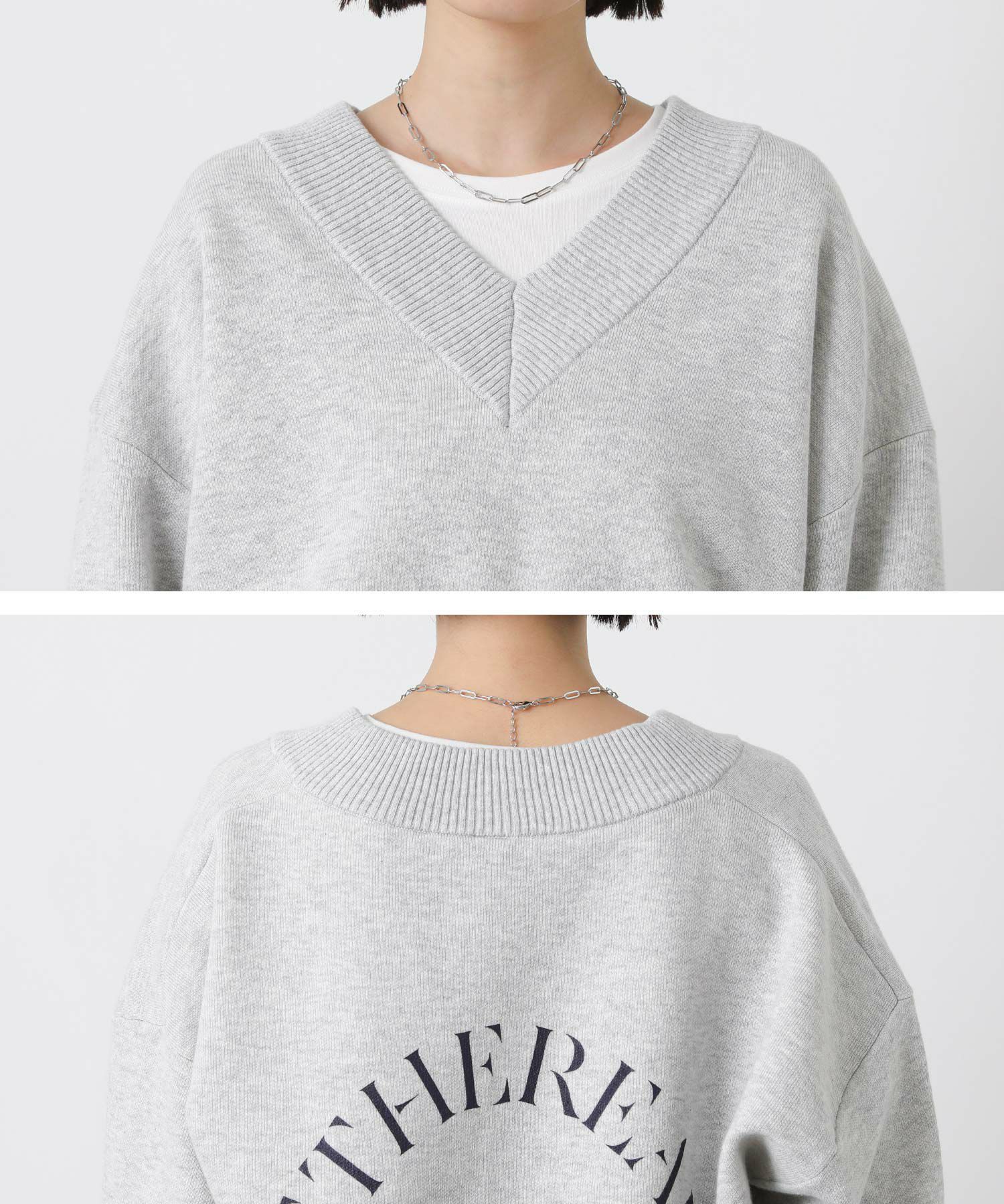インパクトのある太めリブのVネックとバックプリントで存在感があり、程よくカジュアルに着こなせます。