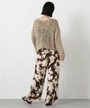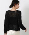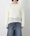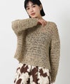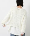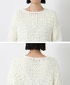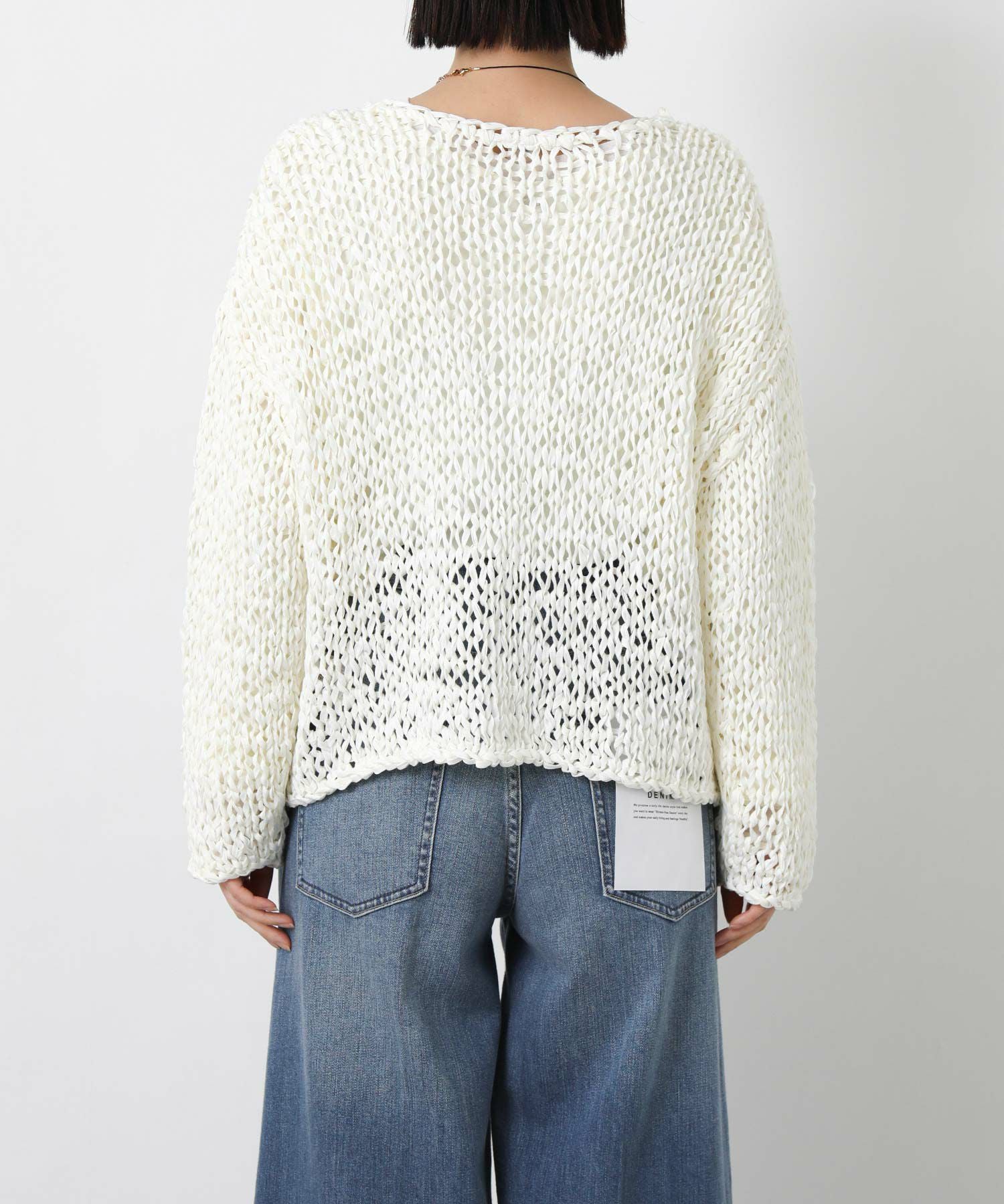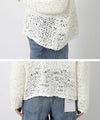 テープ状の糸を使用した表面感が特徴の、ざっくりとした手編みのニット。