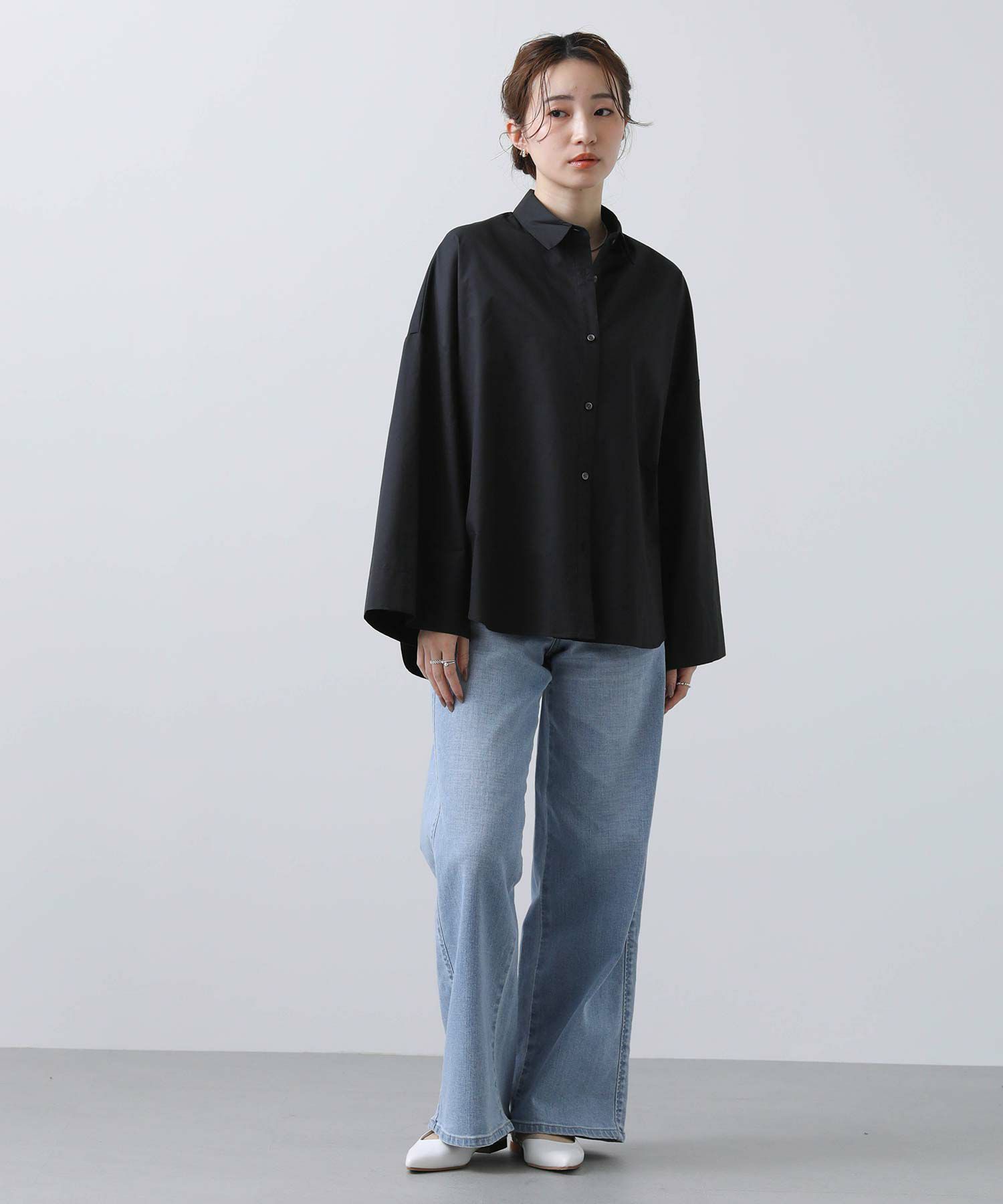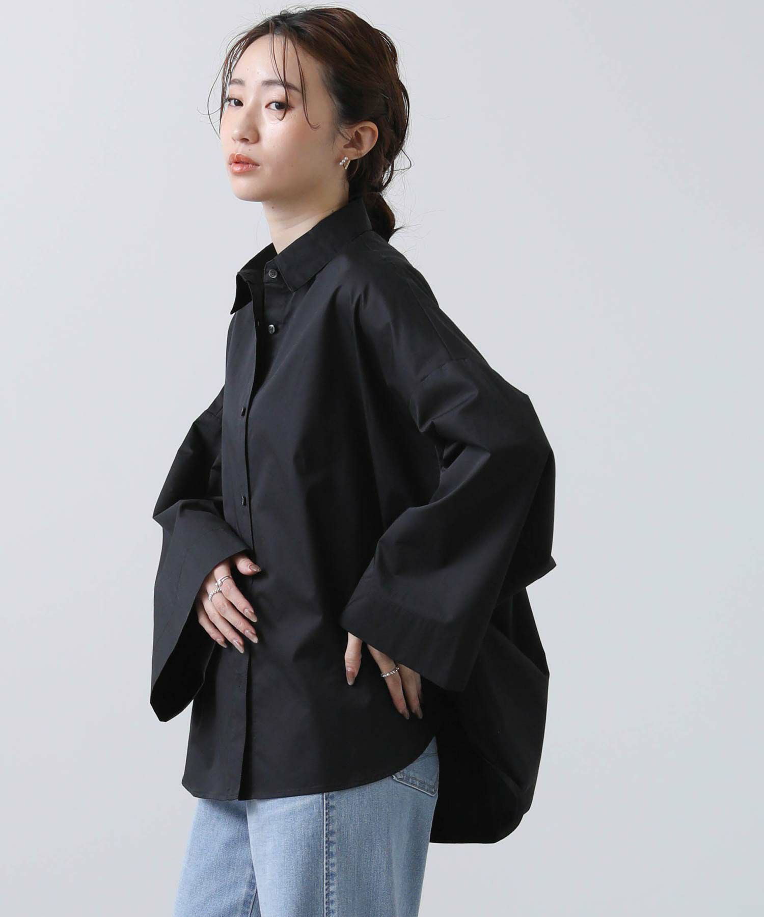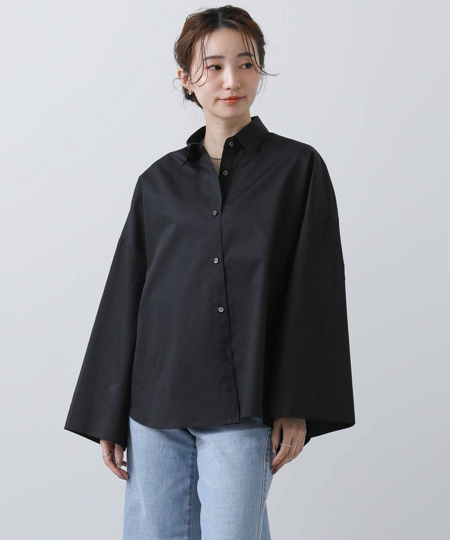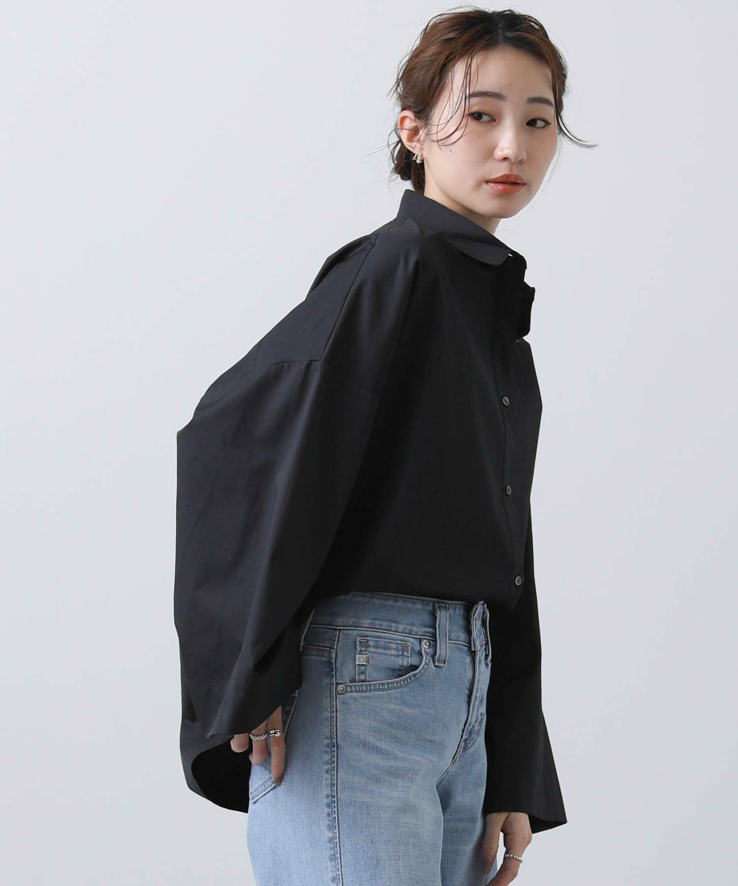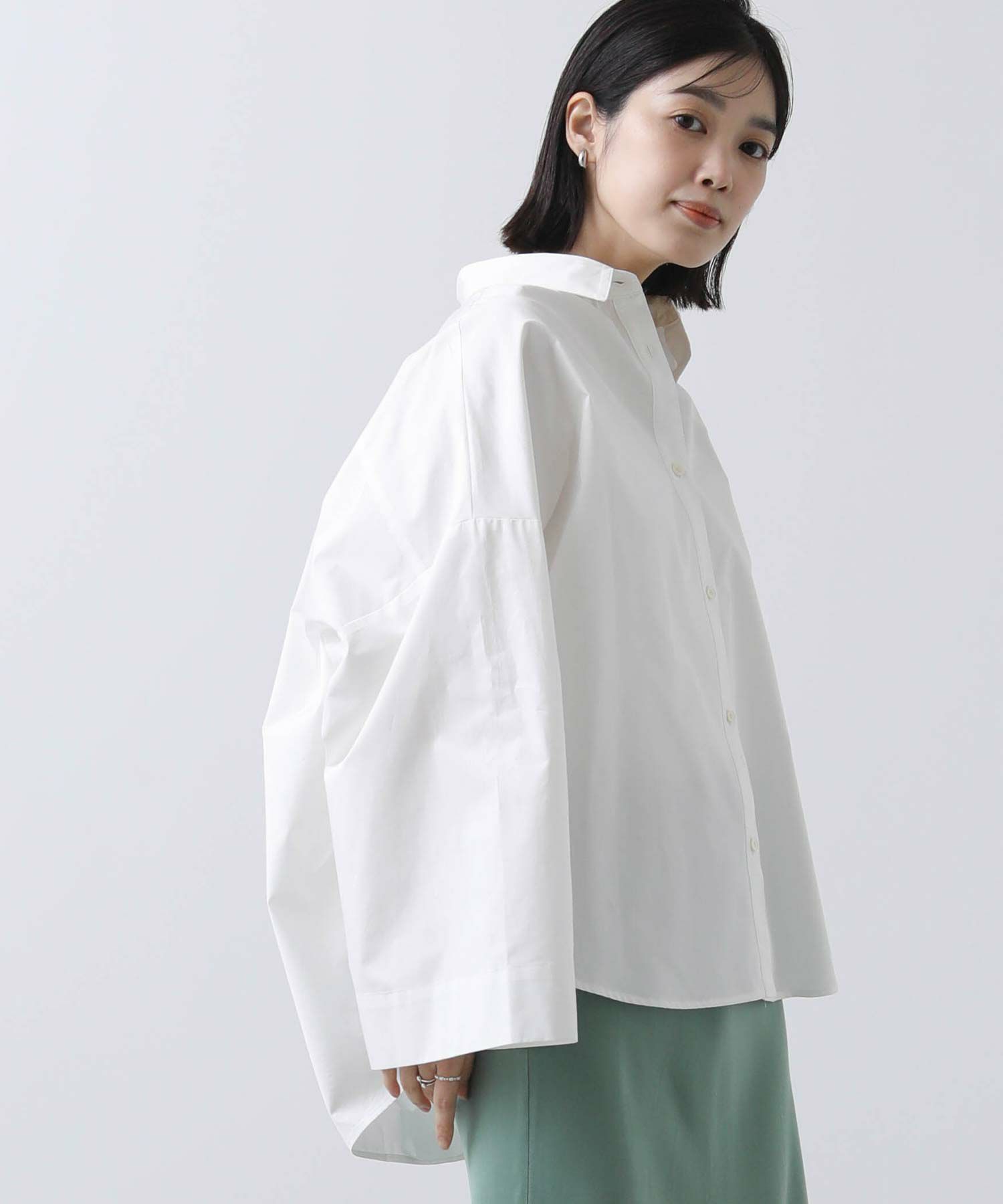 ワイドなスリーブでボリューム感のあるシルエットを楽しめるシャツ。