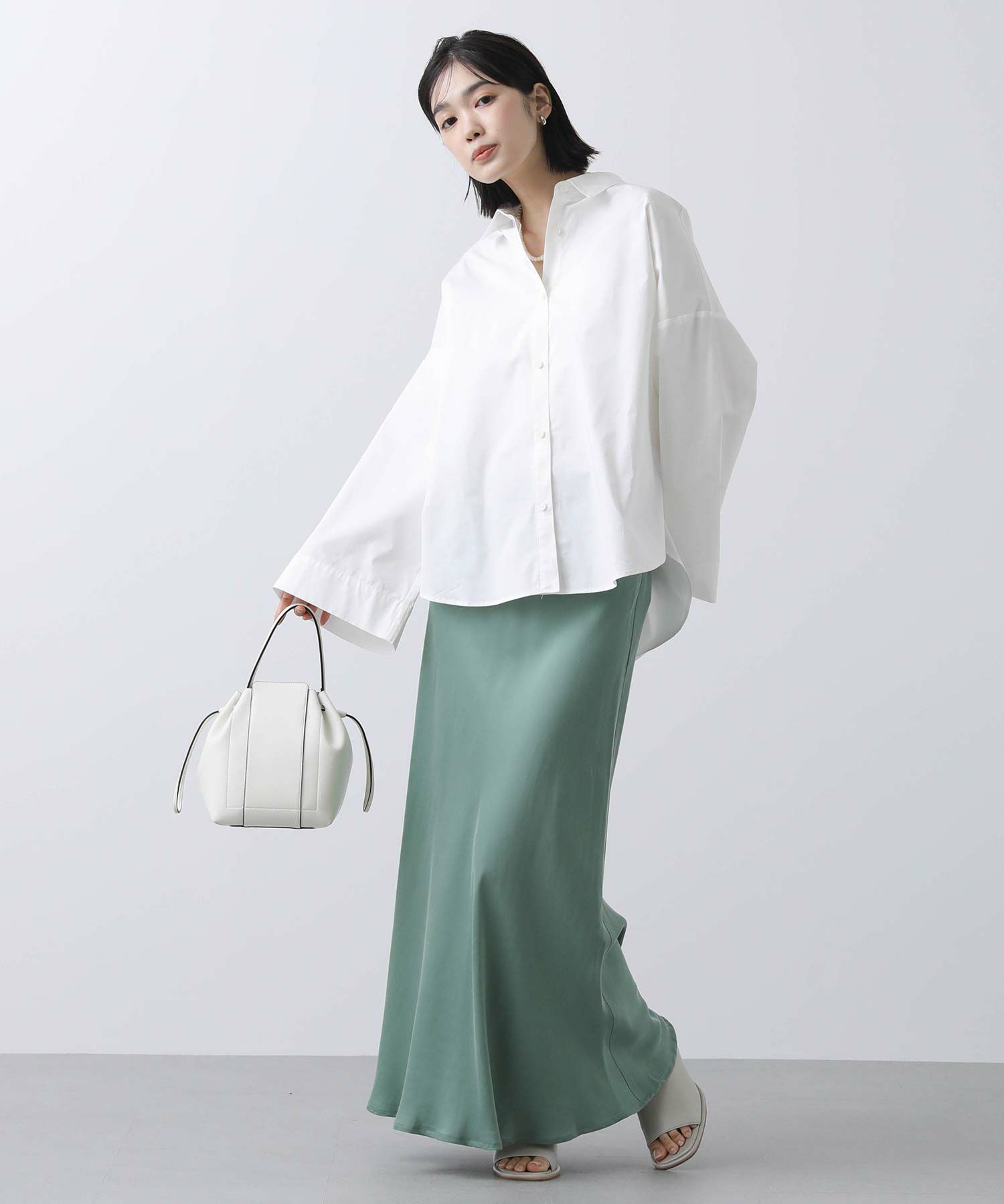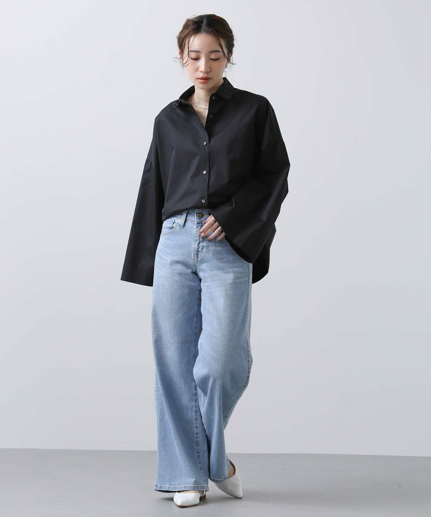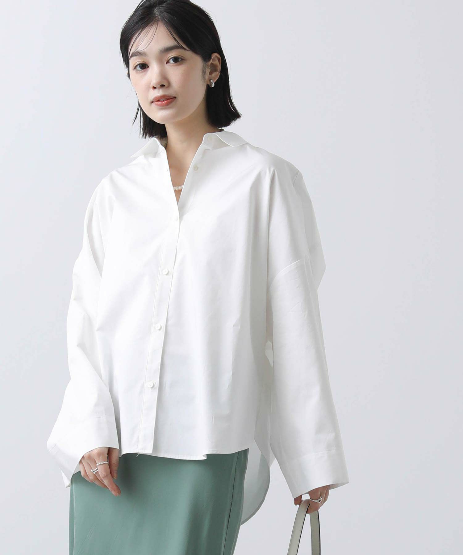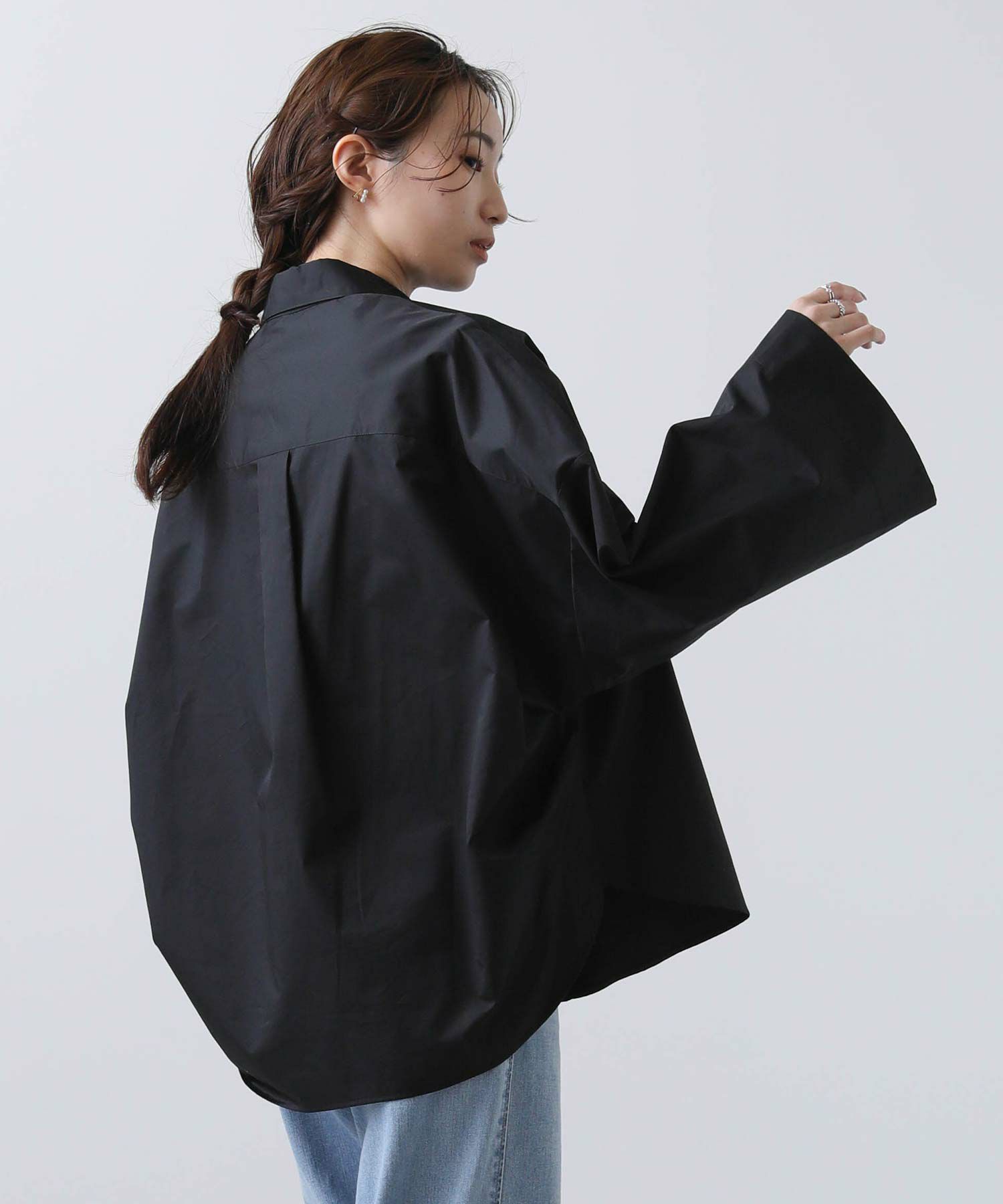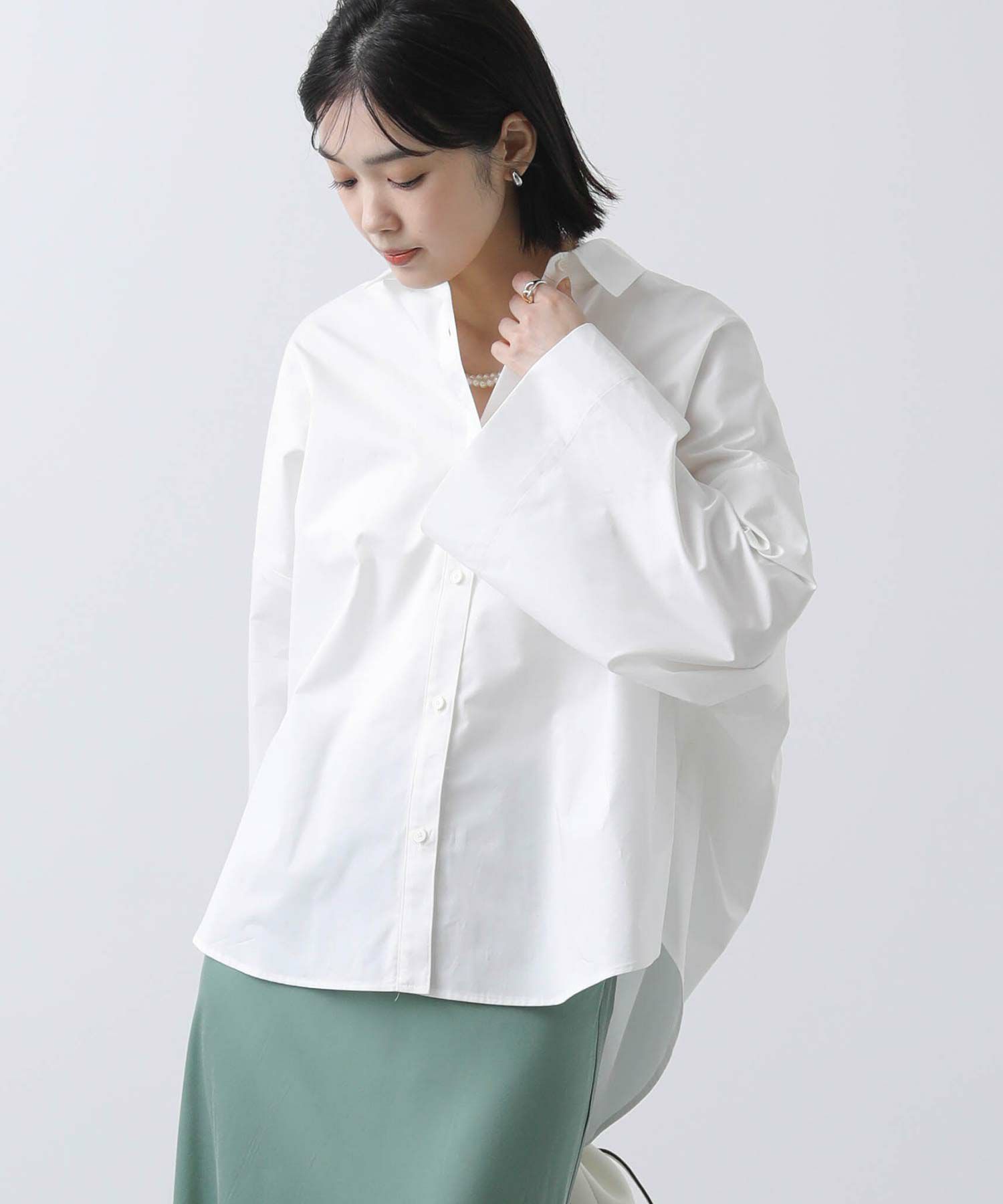 ワイドなスリーブでボリューム感のあるシルエットを楽しめるシャツ。