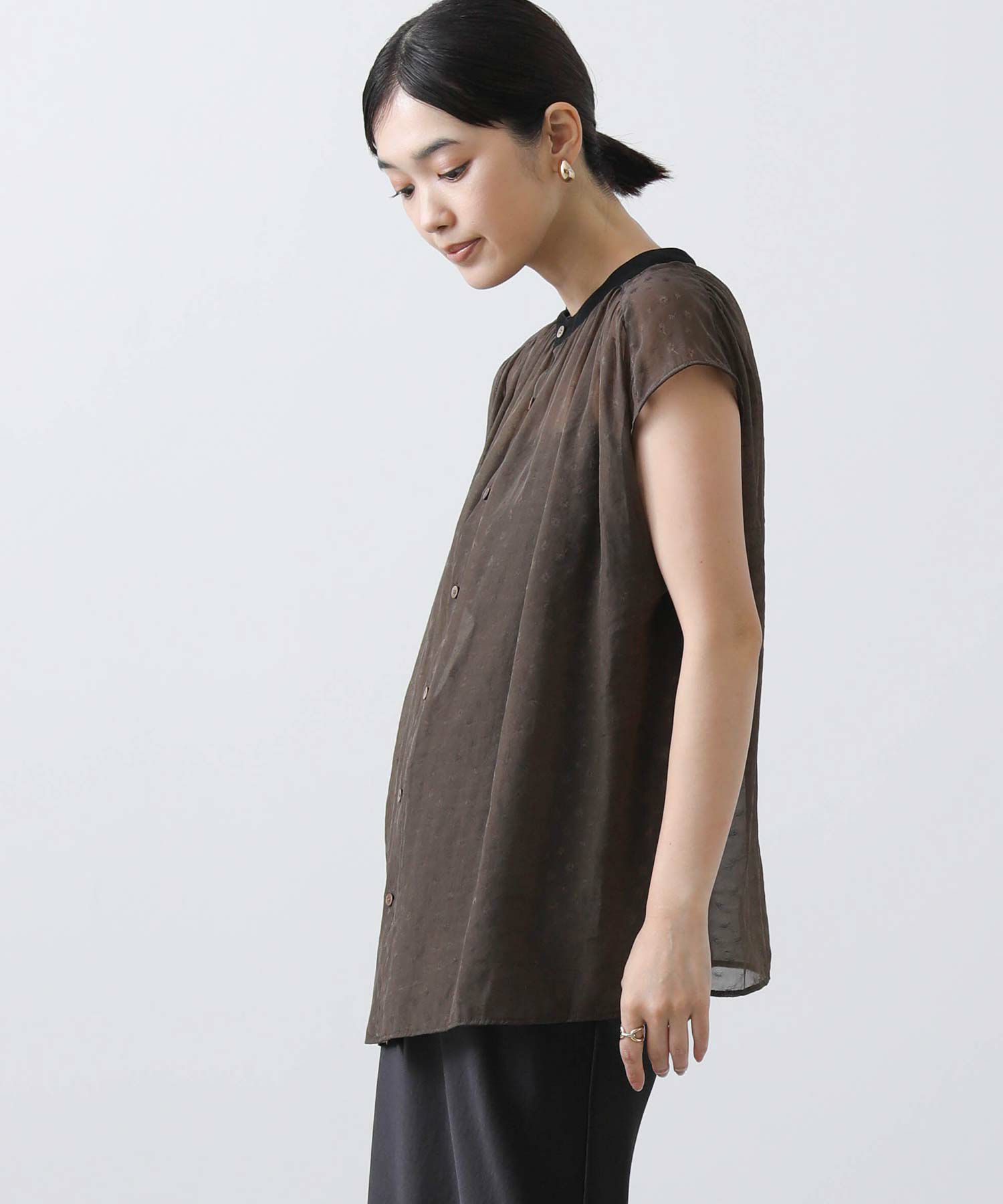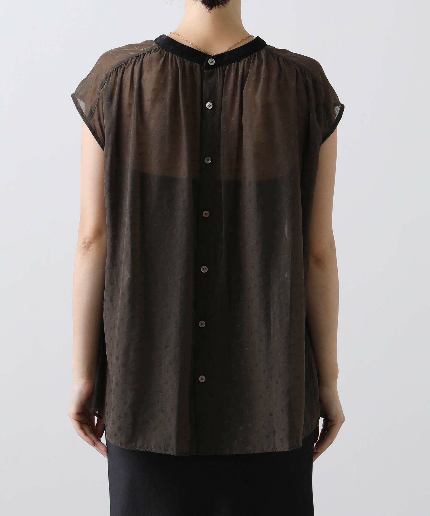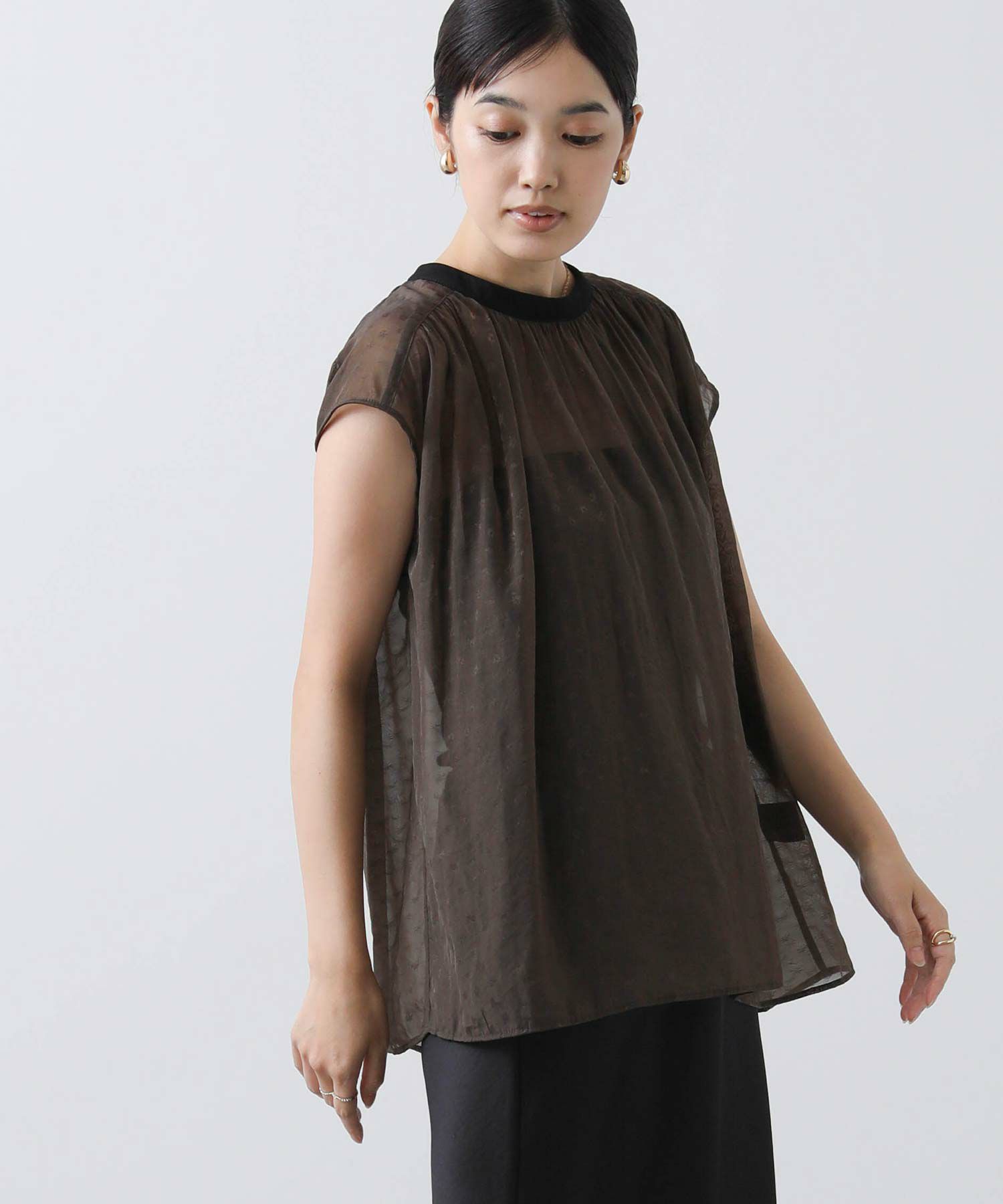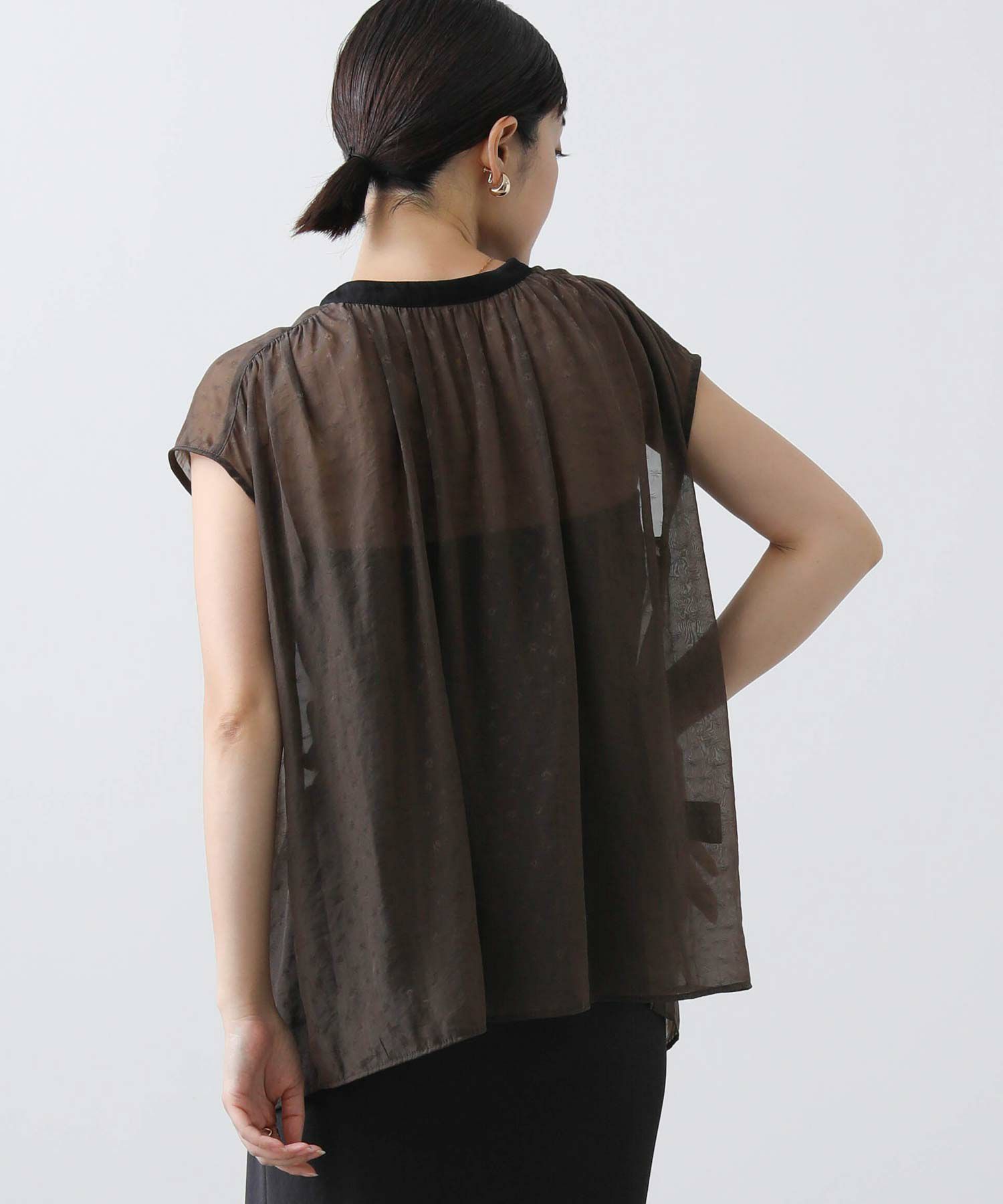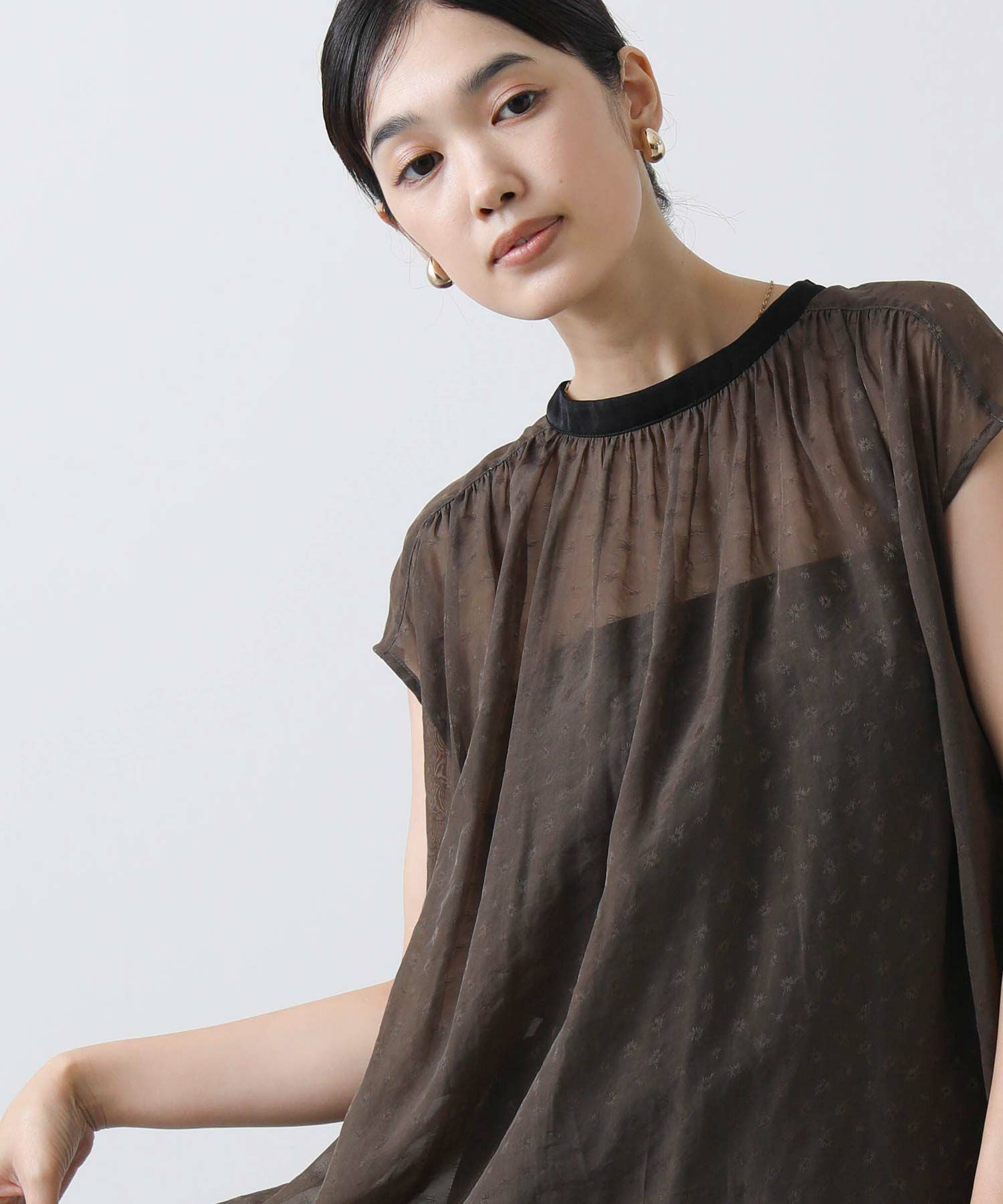 女性らしさを引き立てるシアージャガードブラウス。