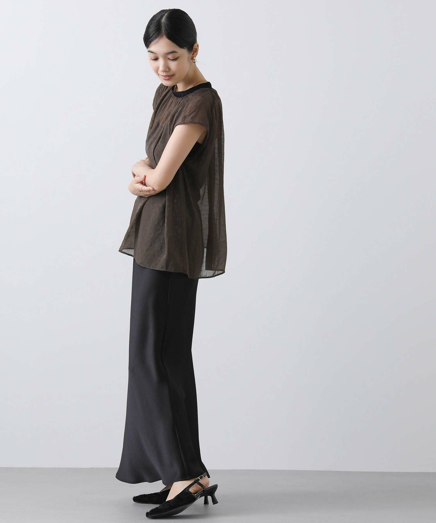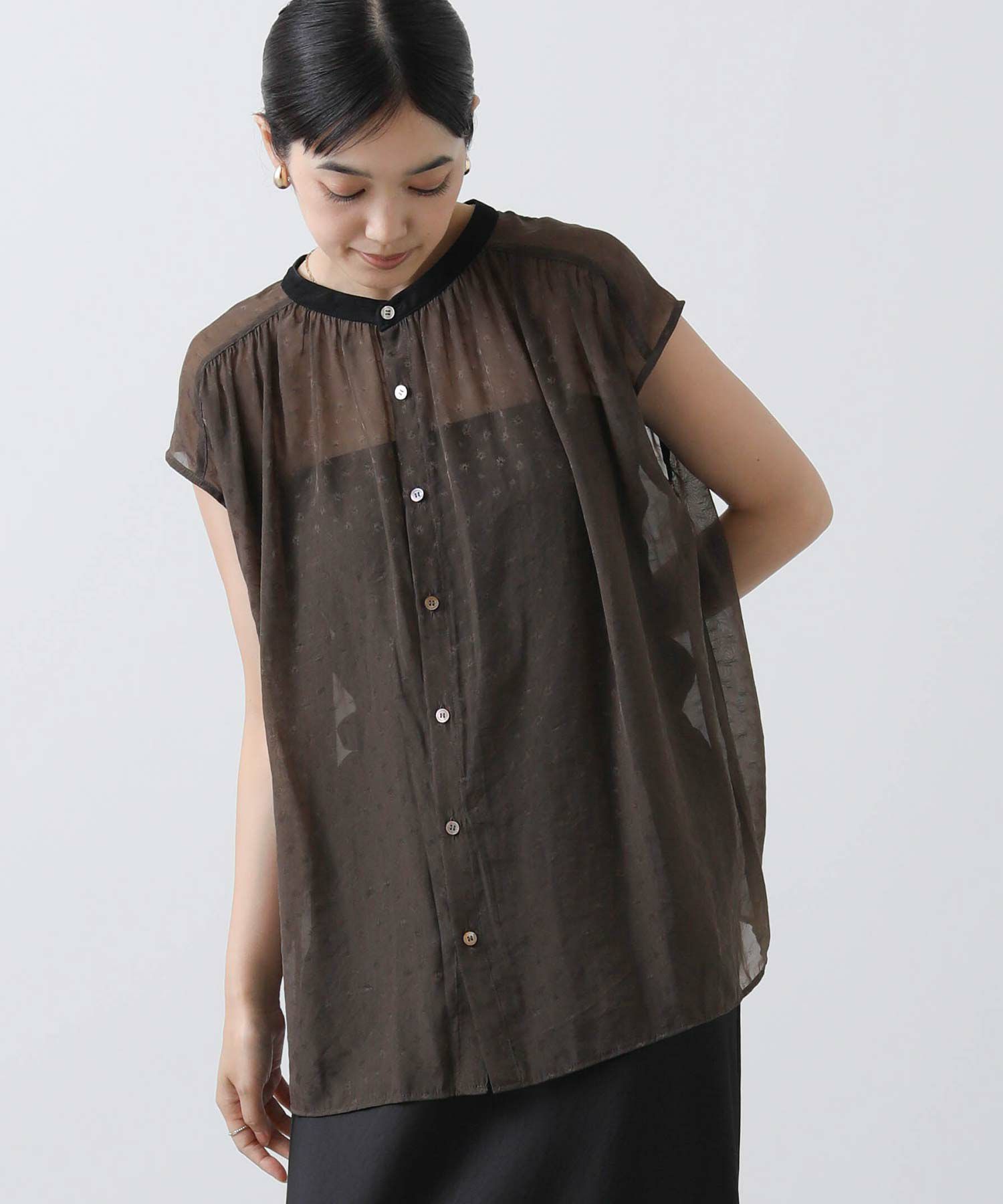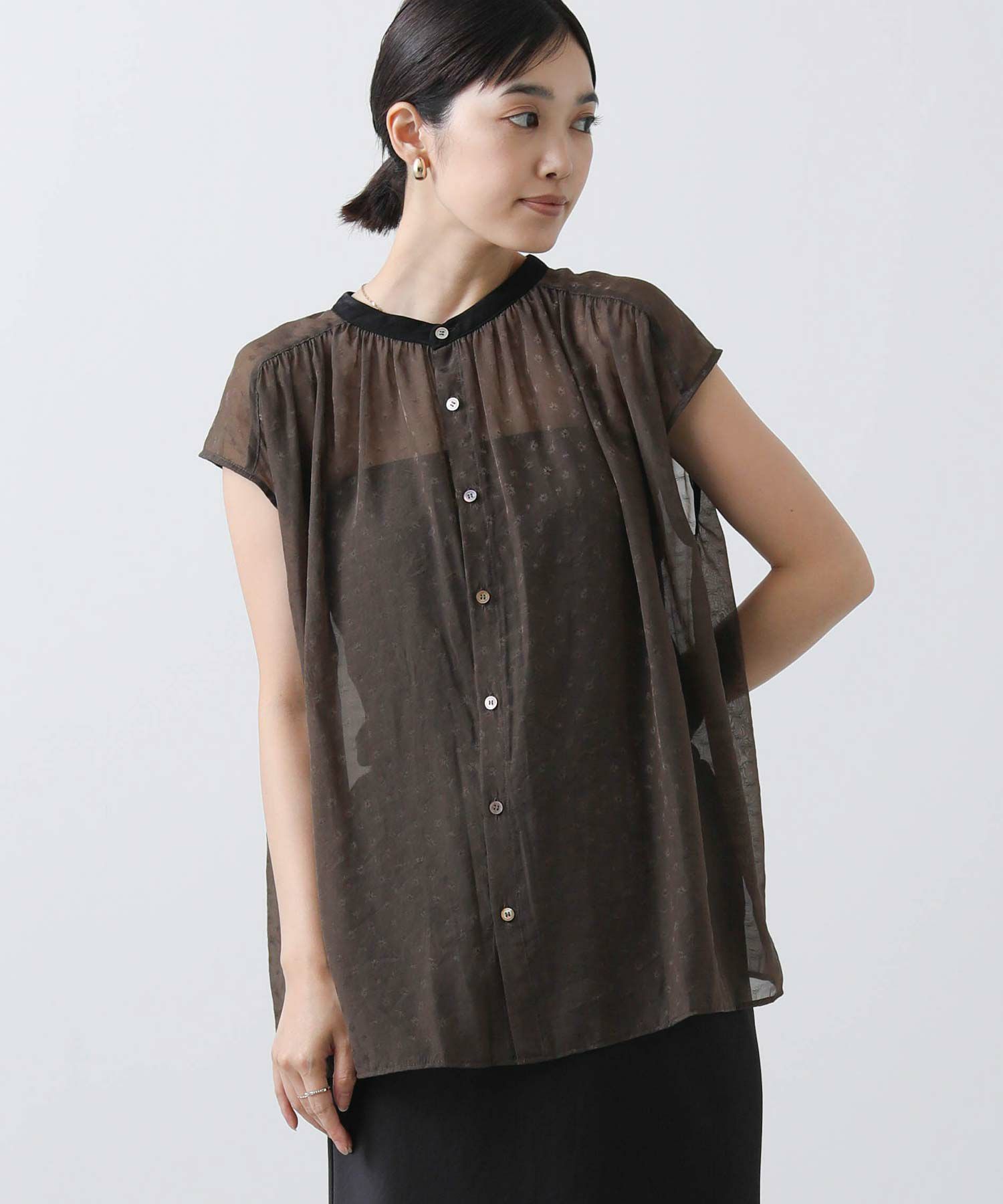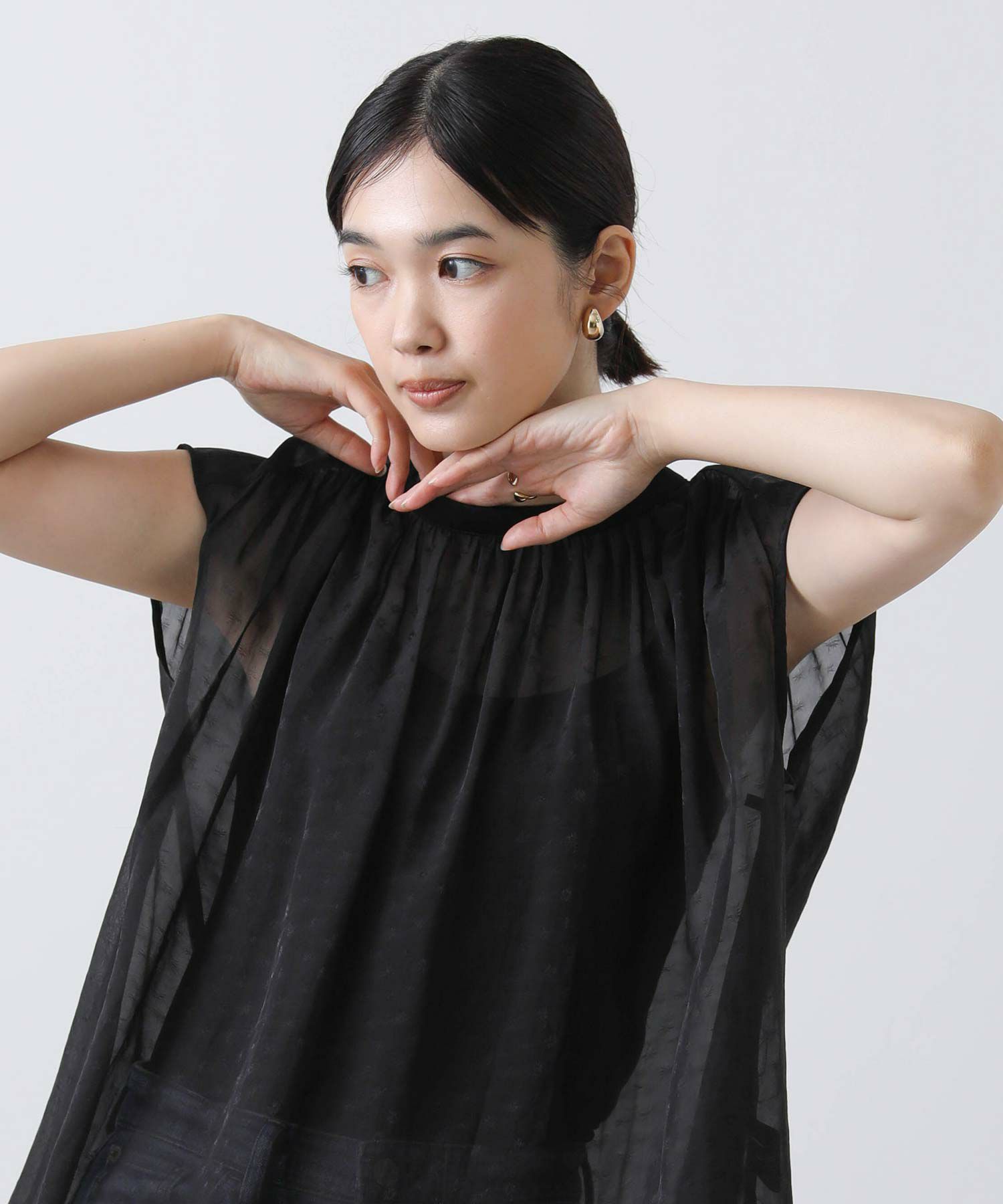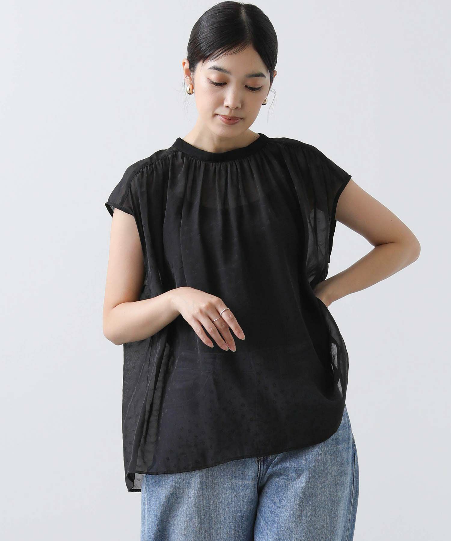 女性らしさを引き立てるシアージャガードブラウス。