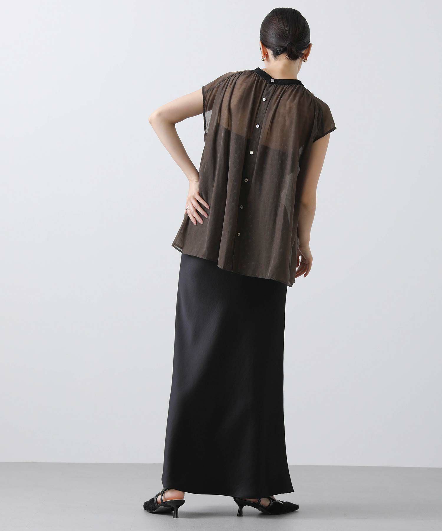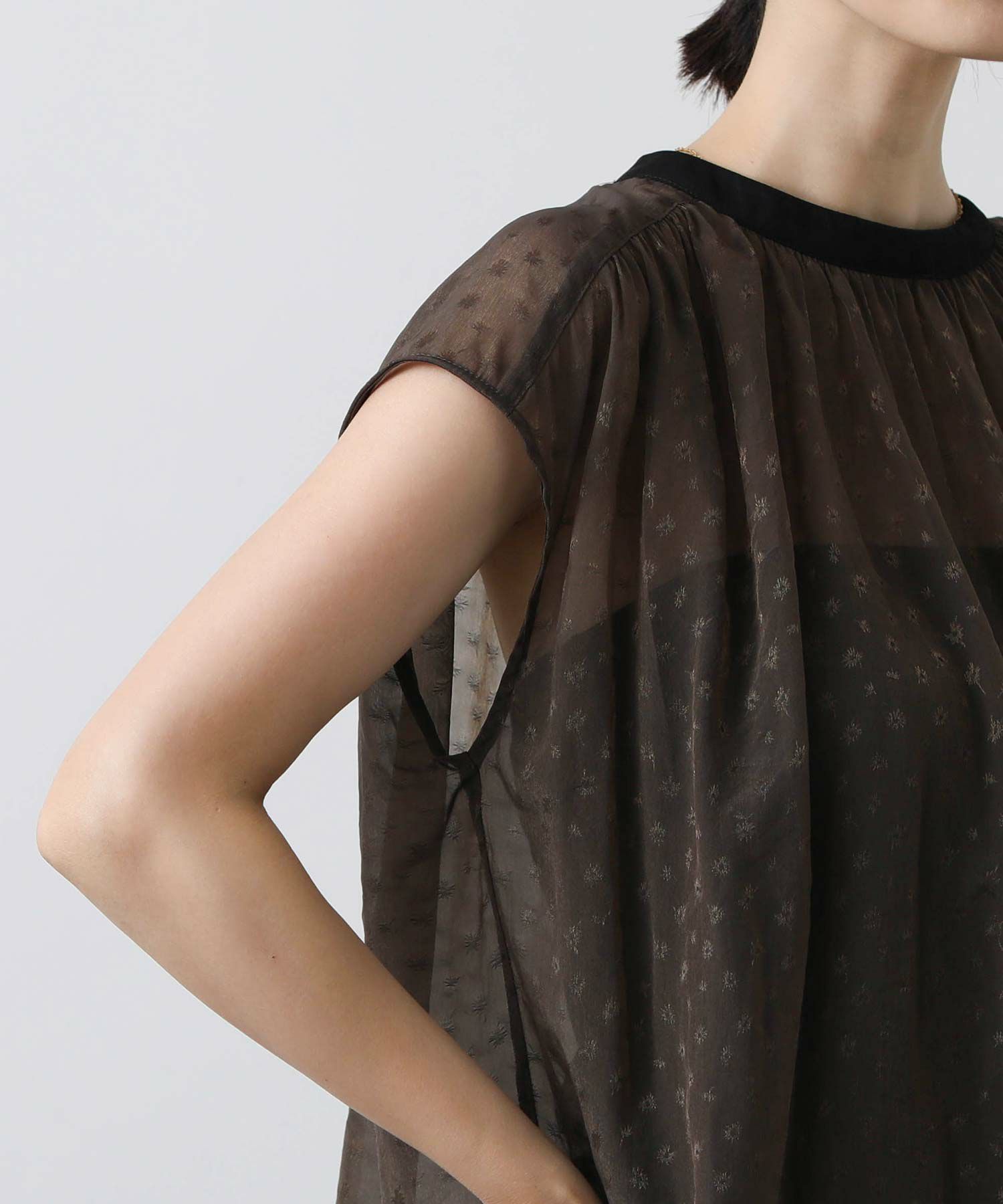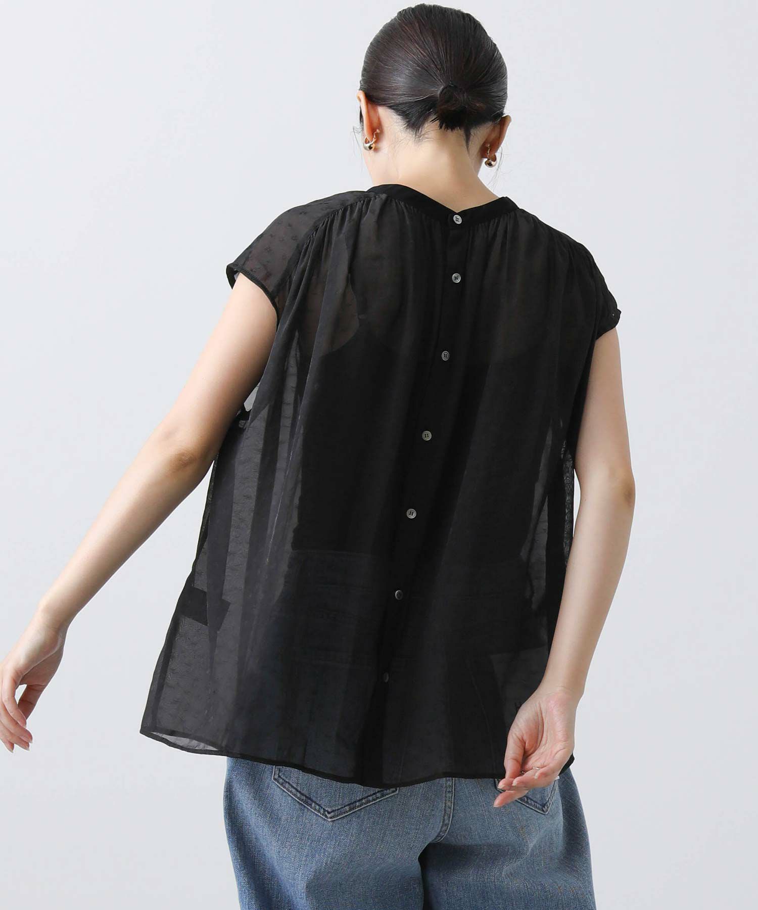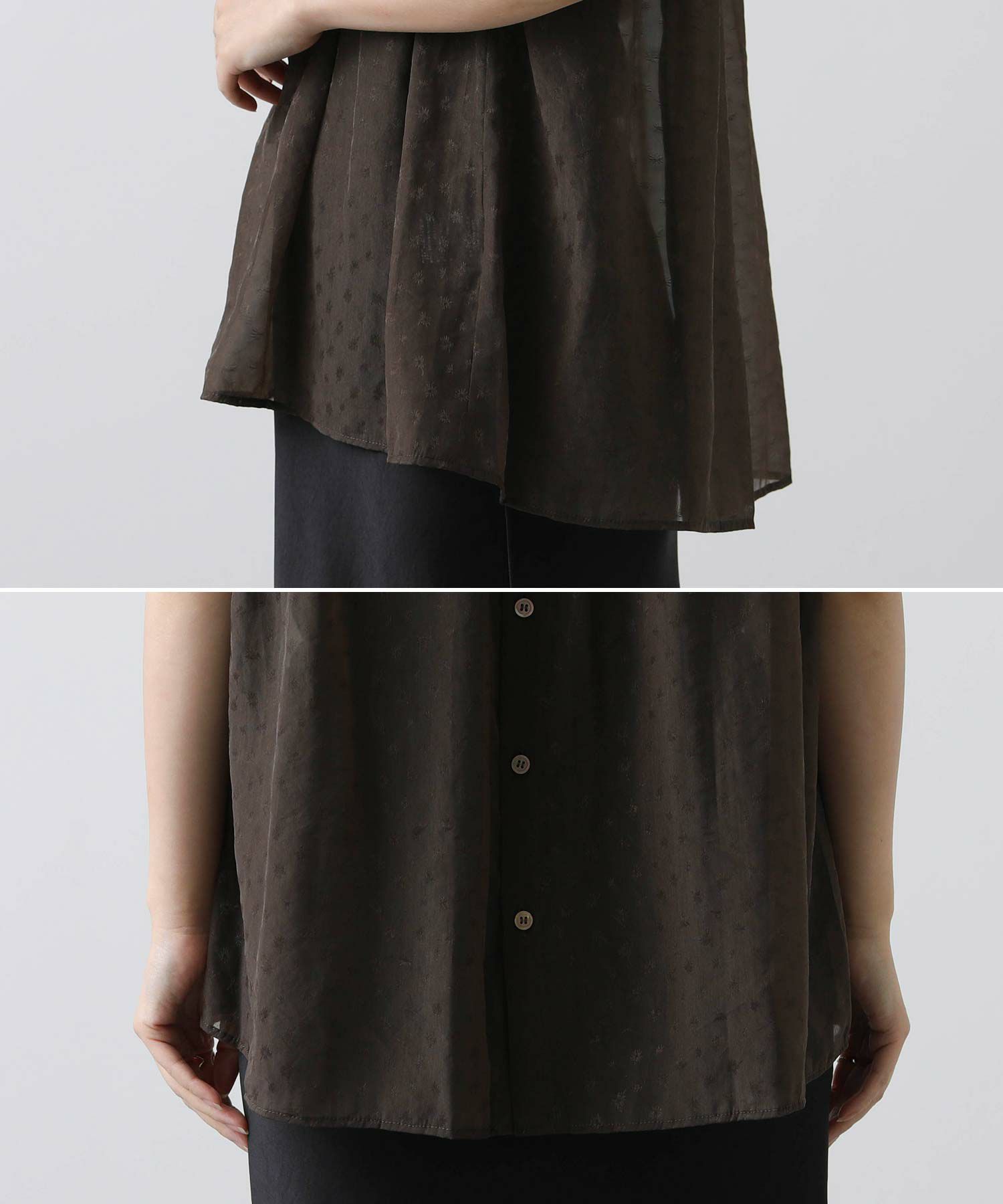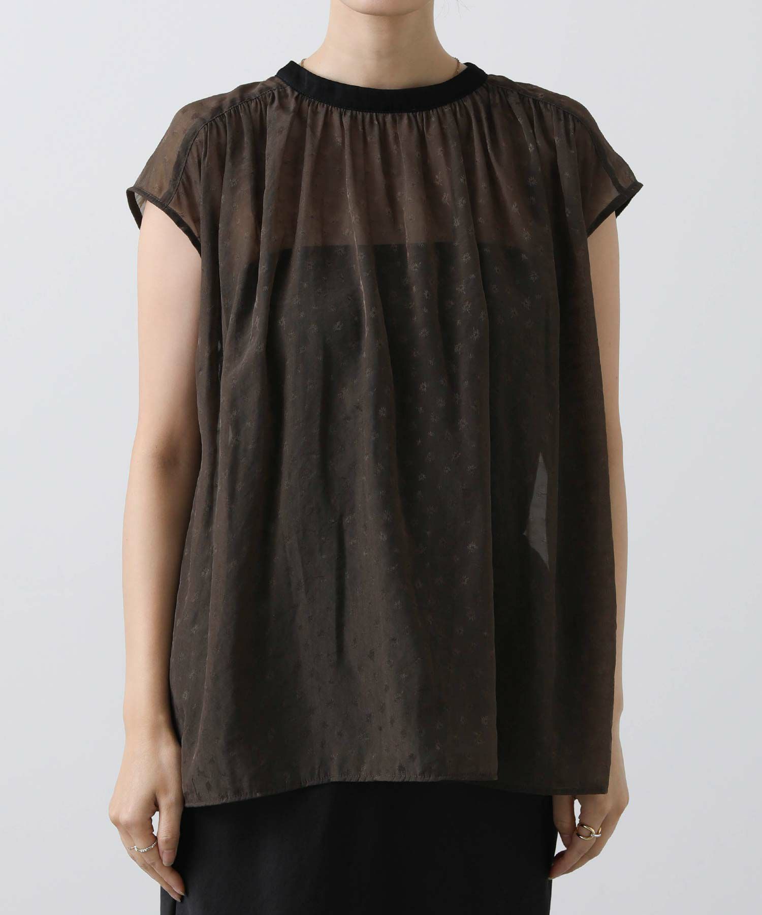 女性らしさを引き立てるシアージャガードブラウス。
