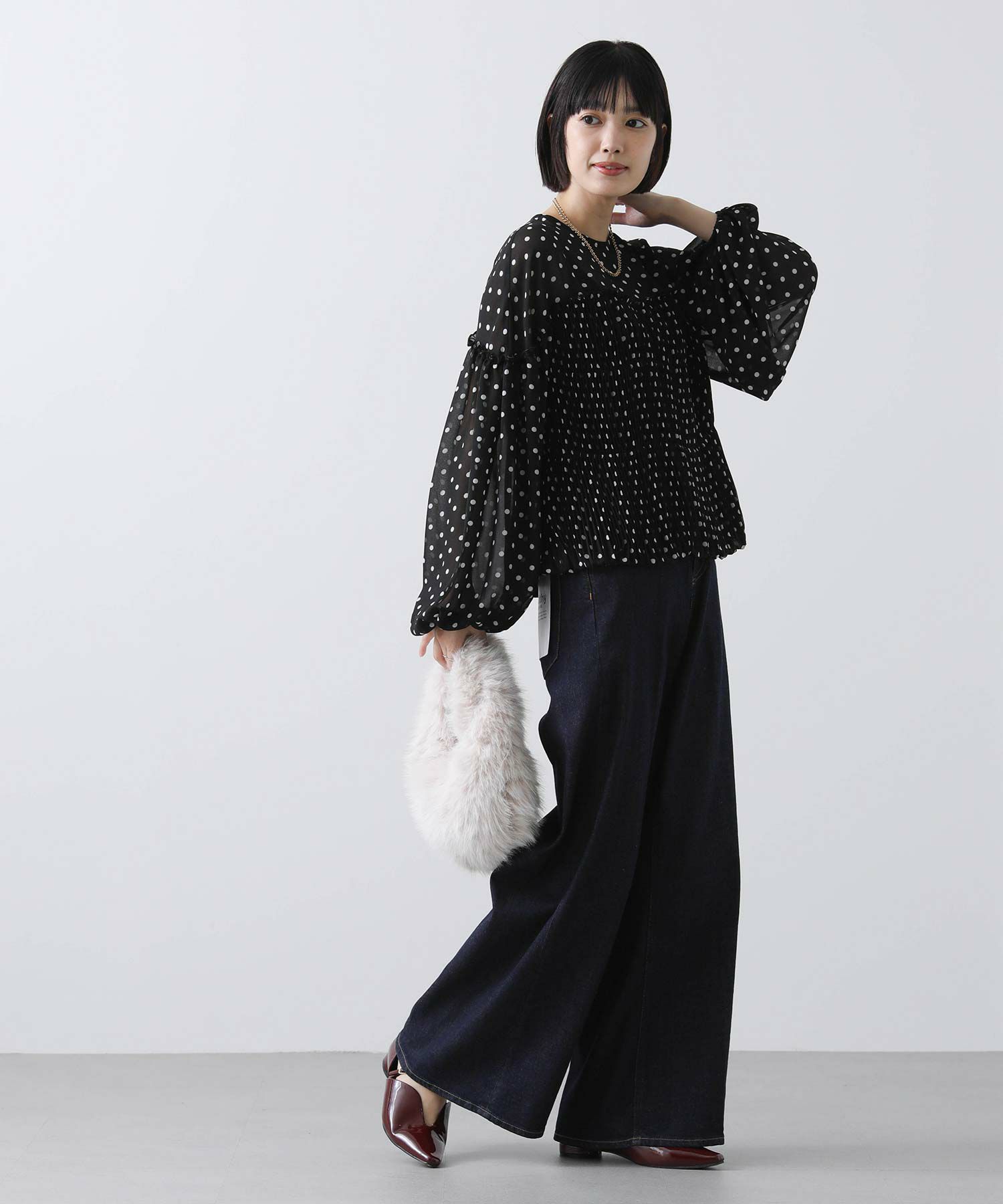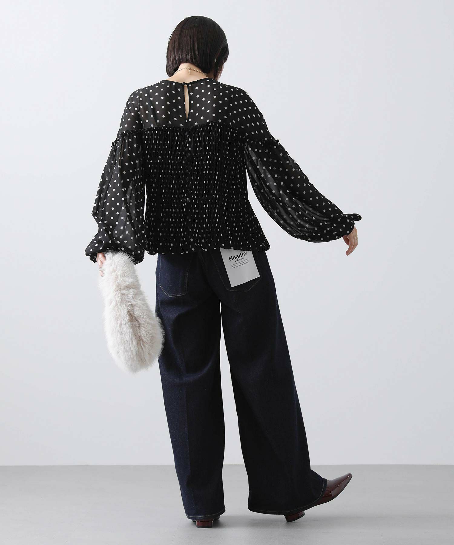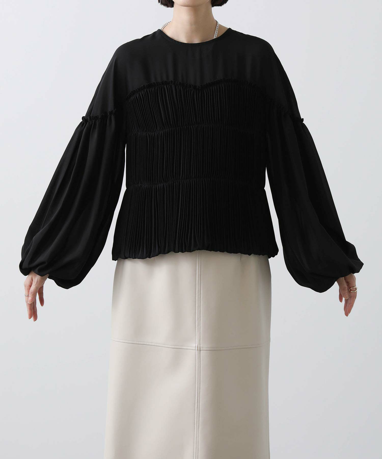 ギャザ-をたっぷりと入れたボリューム袖がアクセントに。