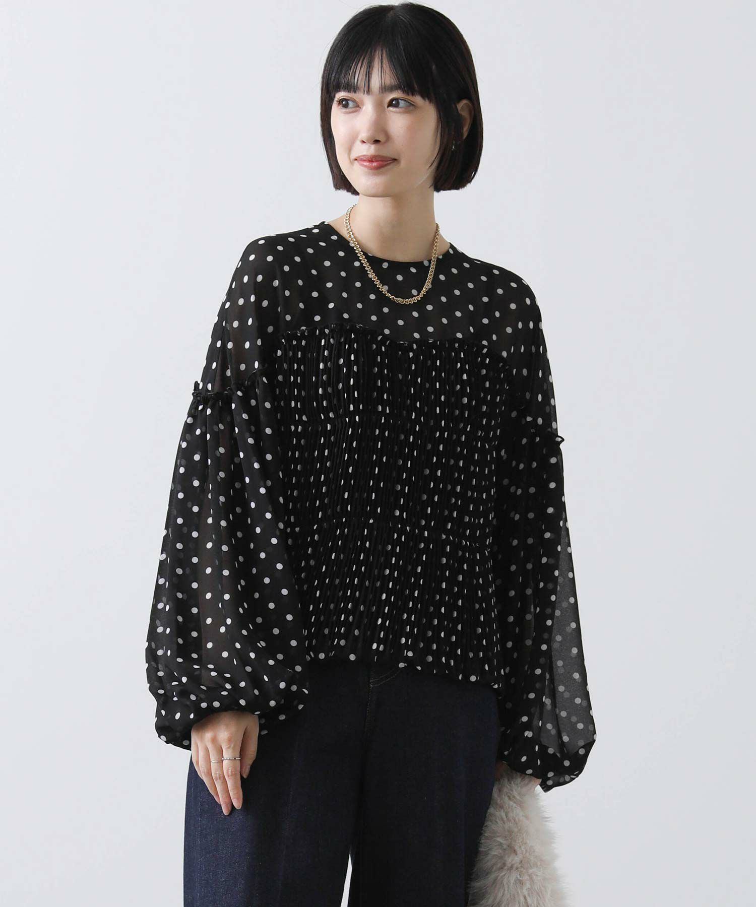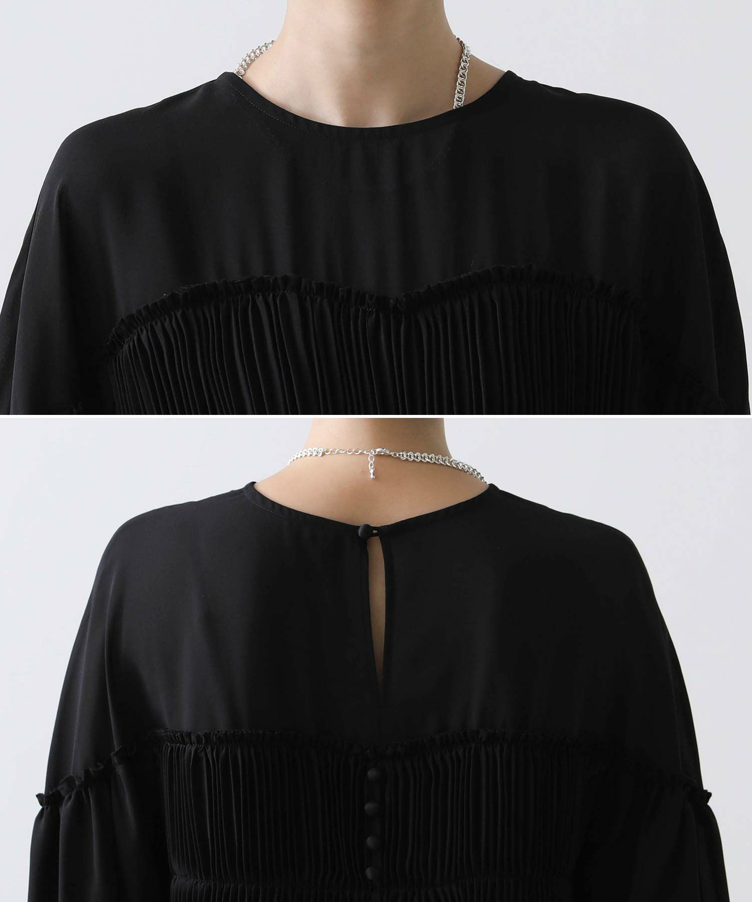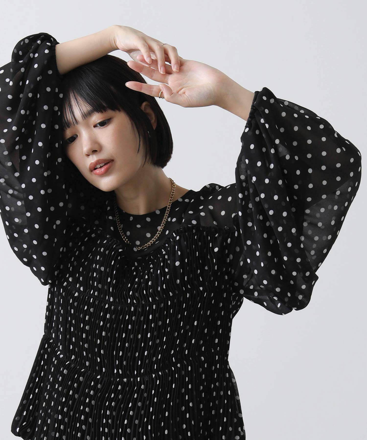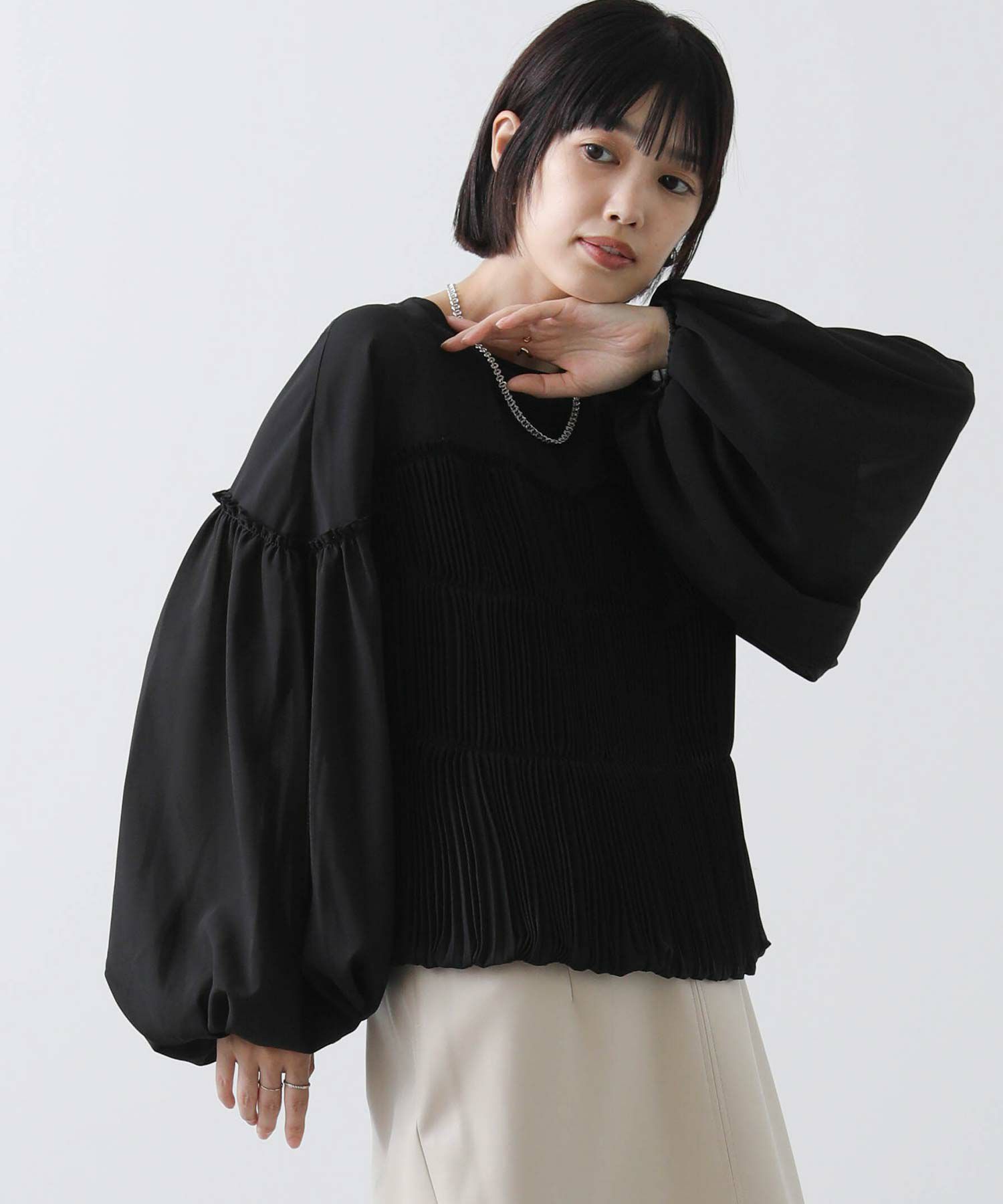 ギャザ-をたっぷりと入れたボリューム袖がアクセントに。
