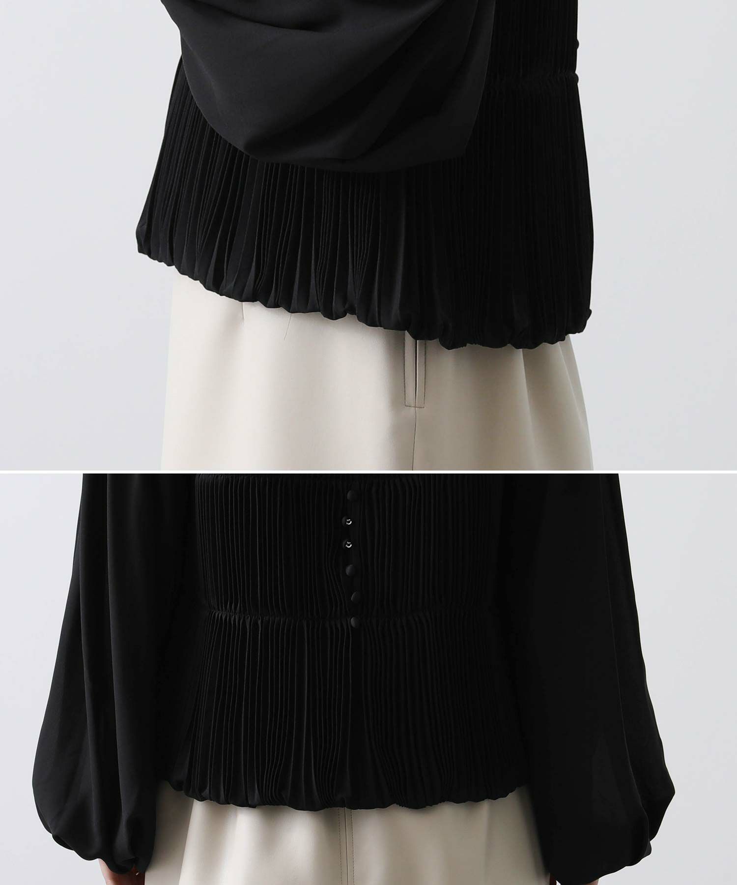身頃にプリーツとシャーリングを寄せたビスチェデザインで、スタイルアップが叶います。