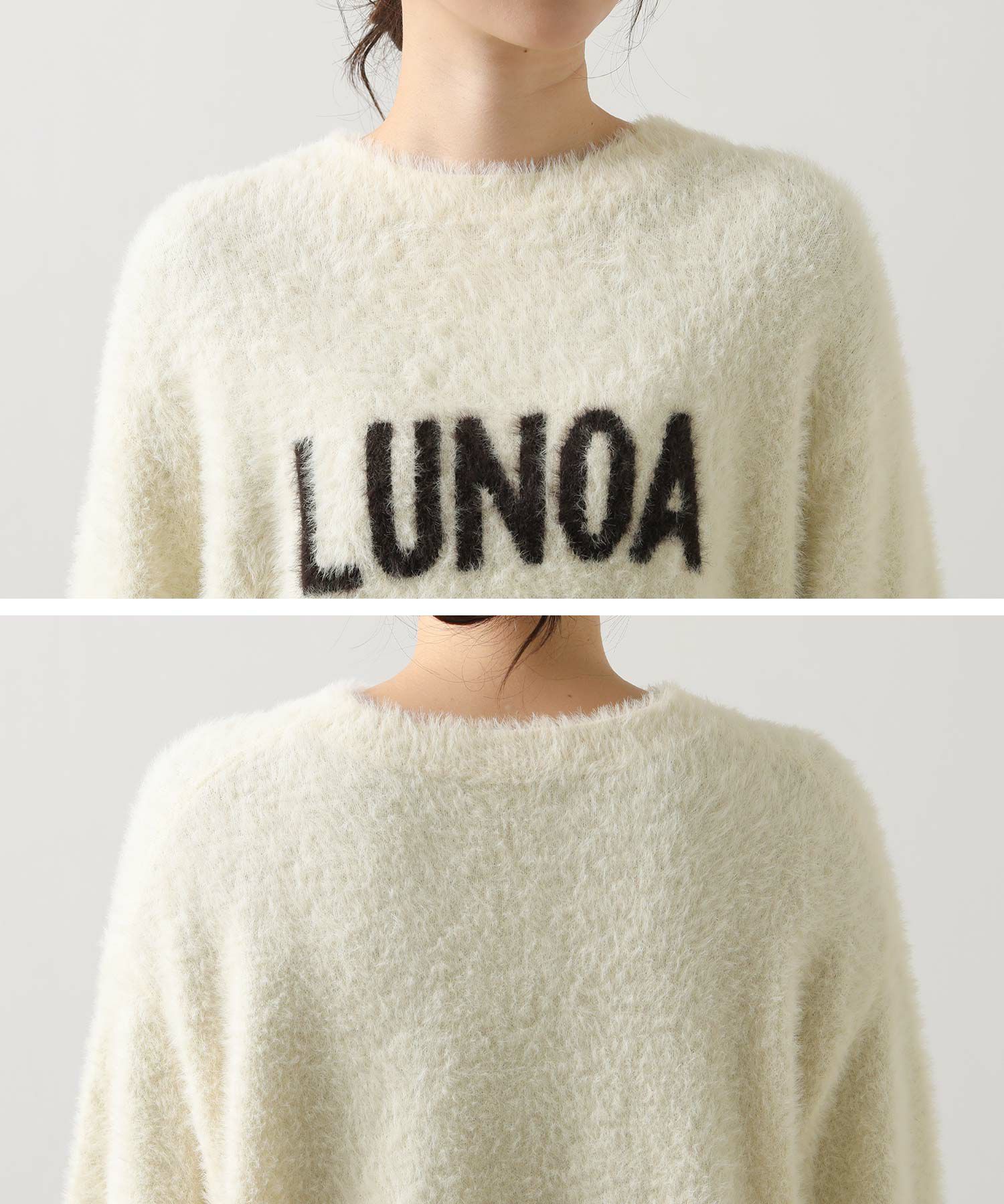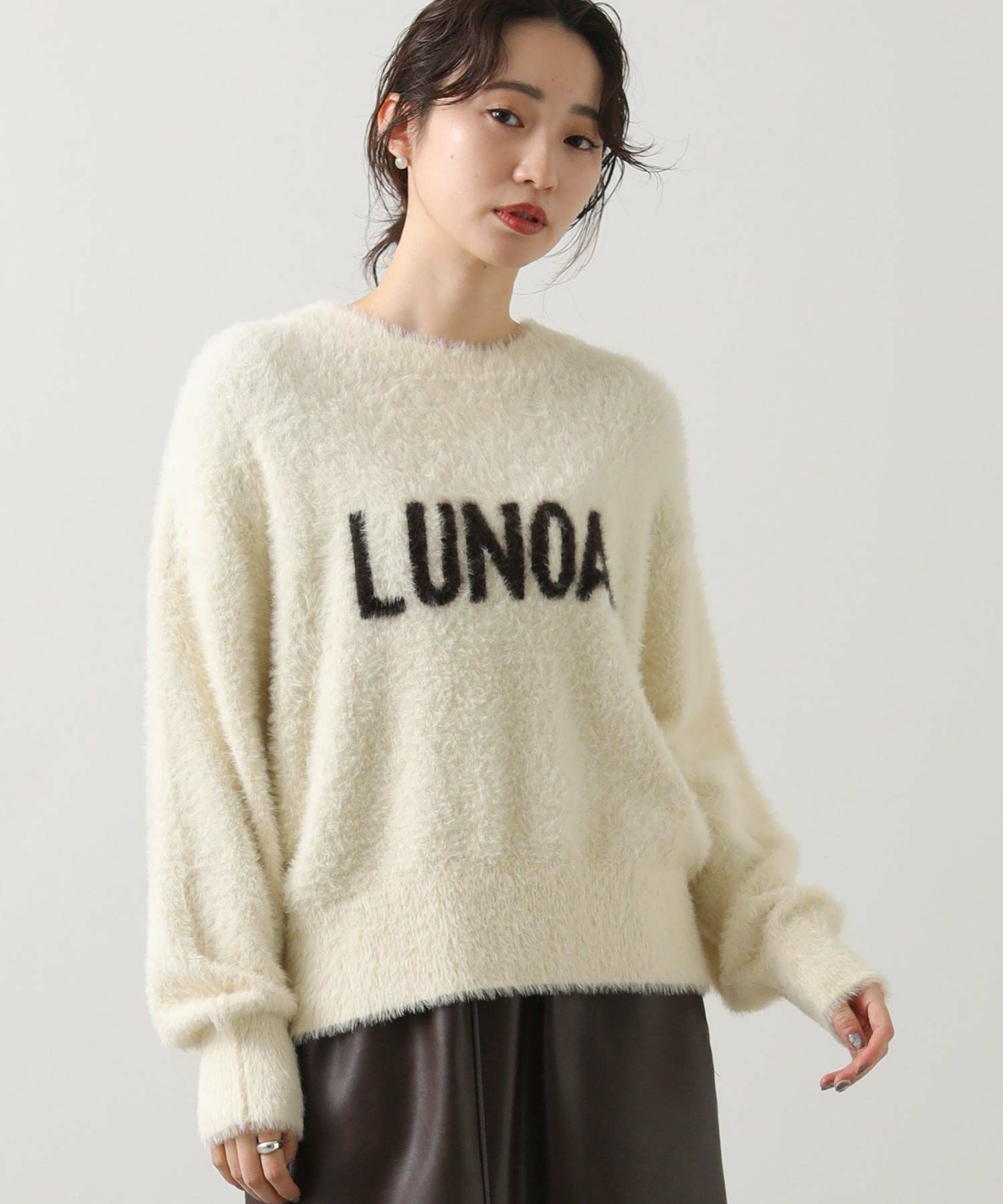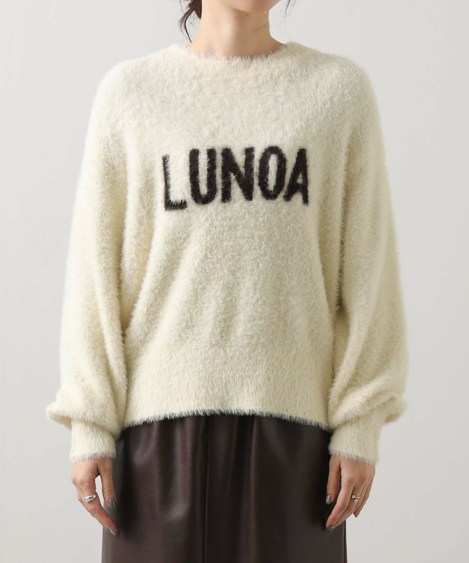 シャギーのロゴニットプルオーバー。