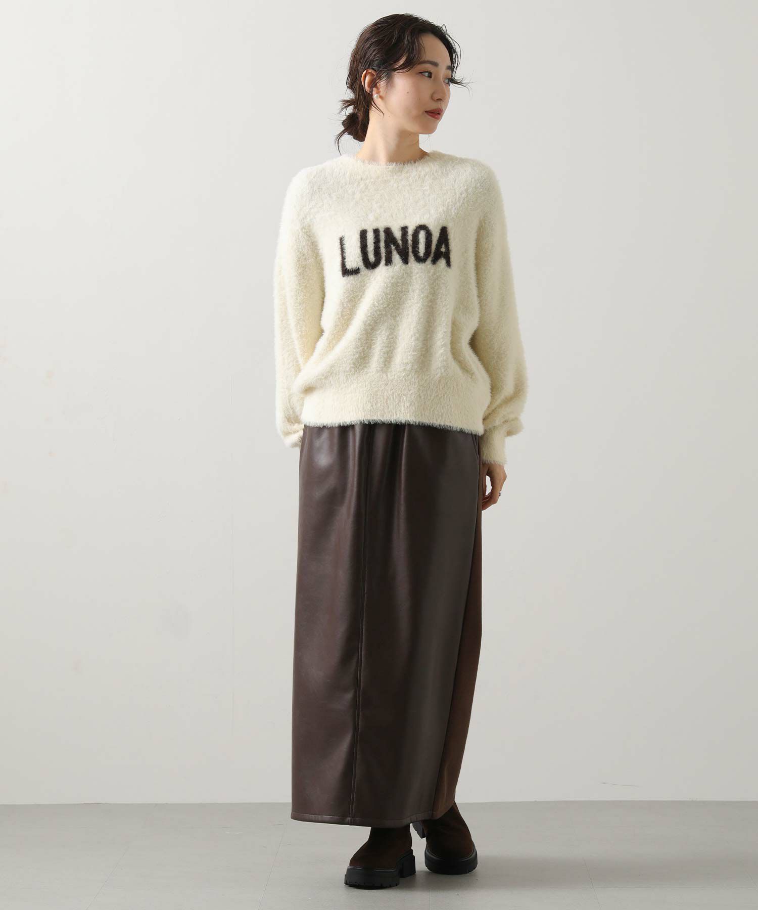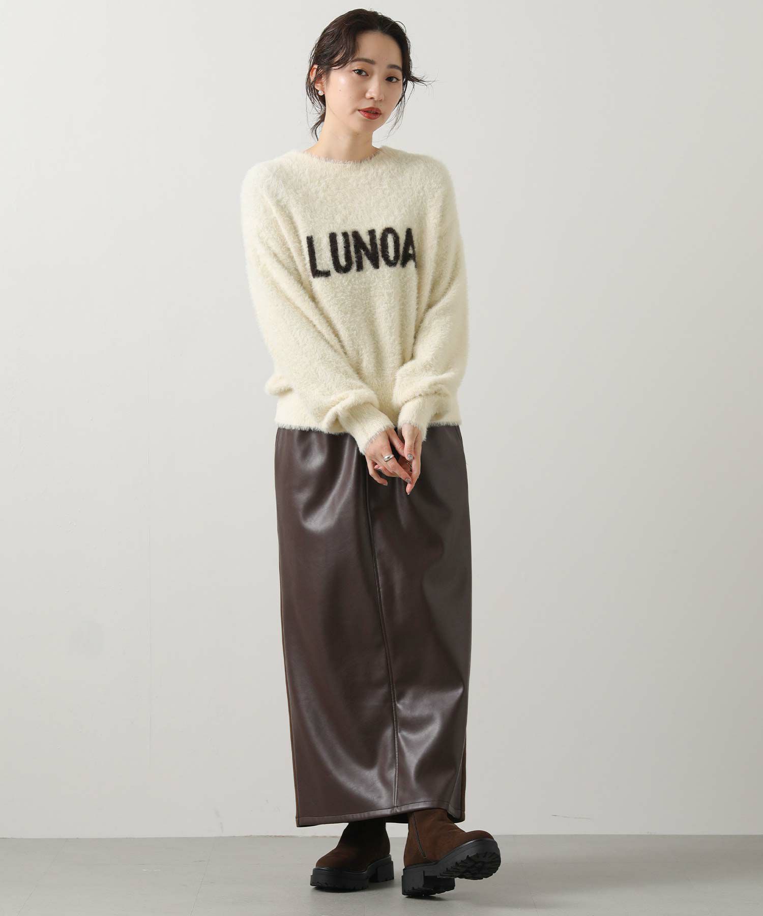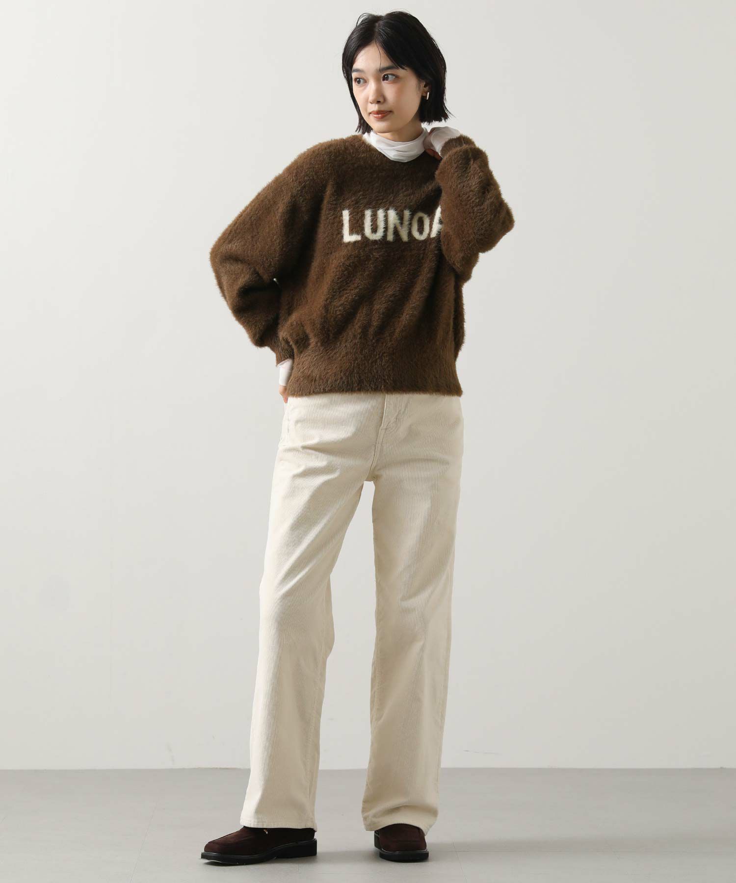 シャギーのロゴニットプルオーバー。