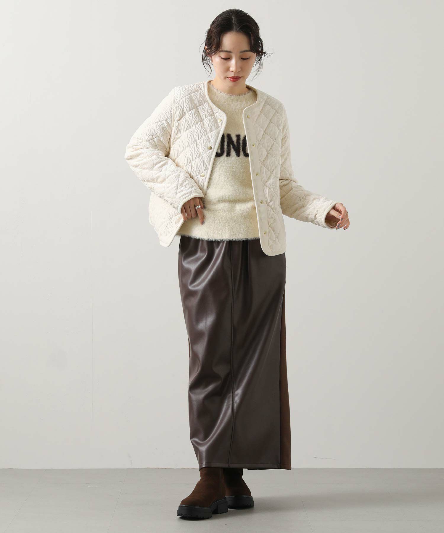 ※着用画像は撮影状況、光の当たり具合で色みが違って見える場合がございます。実際の色みについては、画像一覧の最後に掲載している詳細画像をご参照ください。