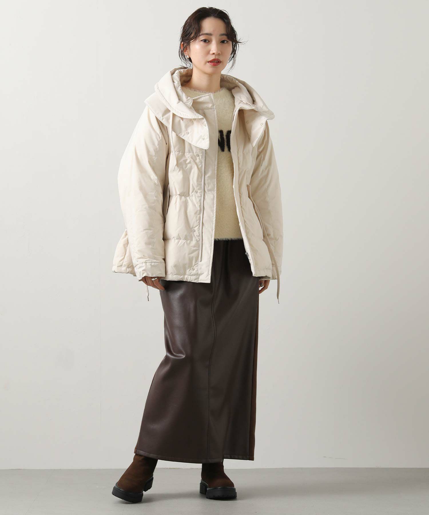 腰で自然にとまる絶妙なサイズ感がバランスのよさを引き立てます。