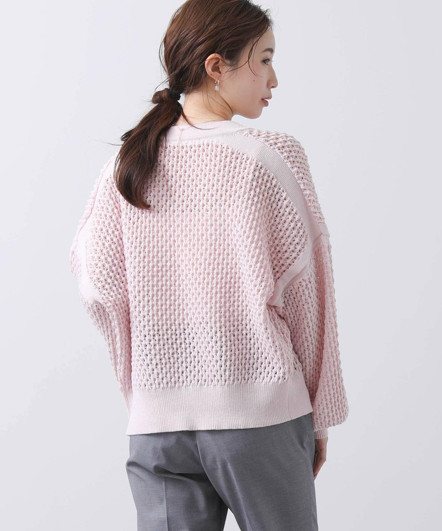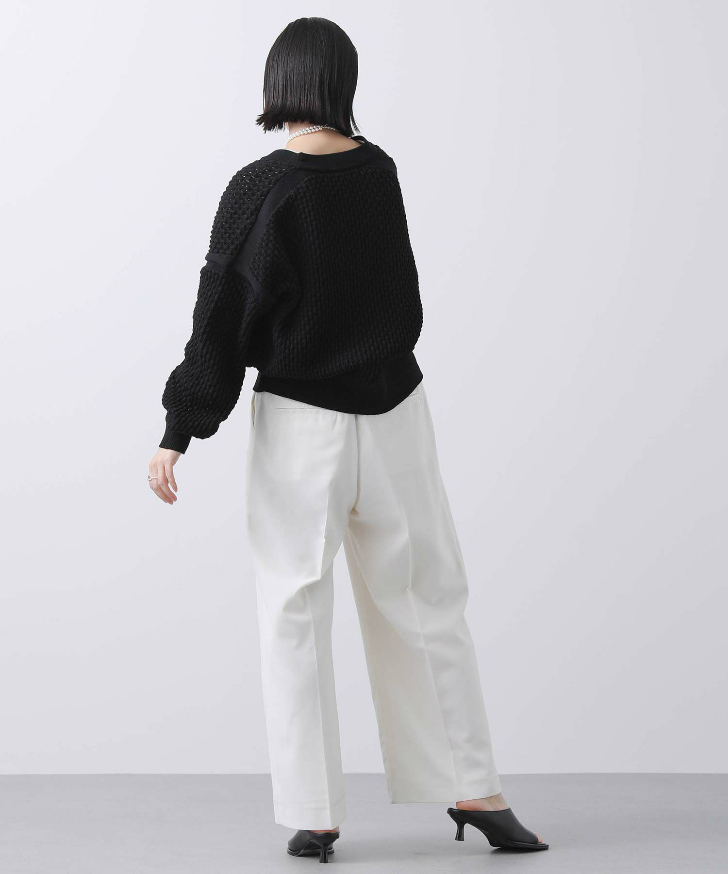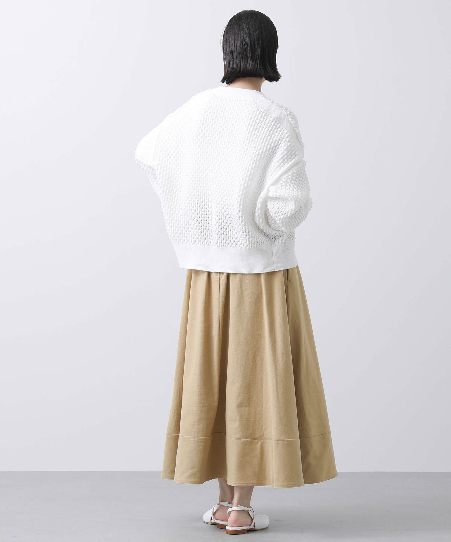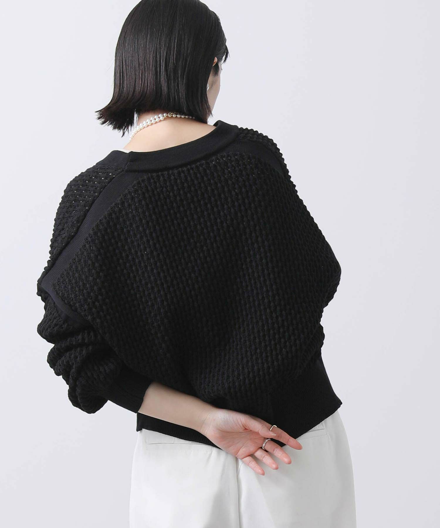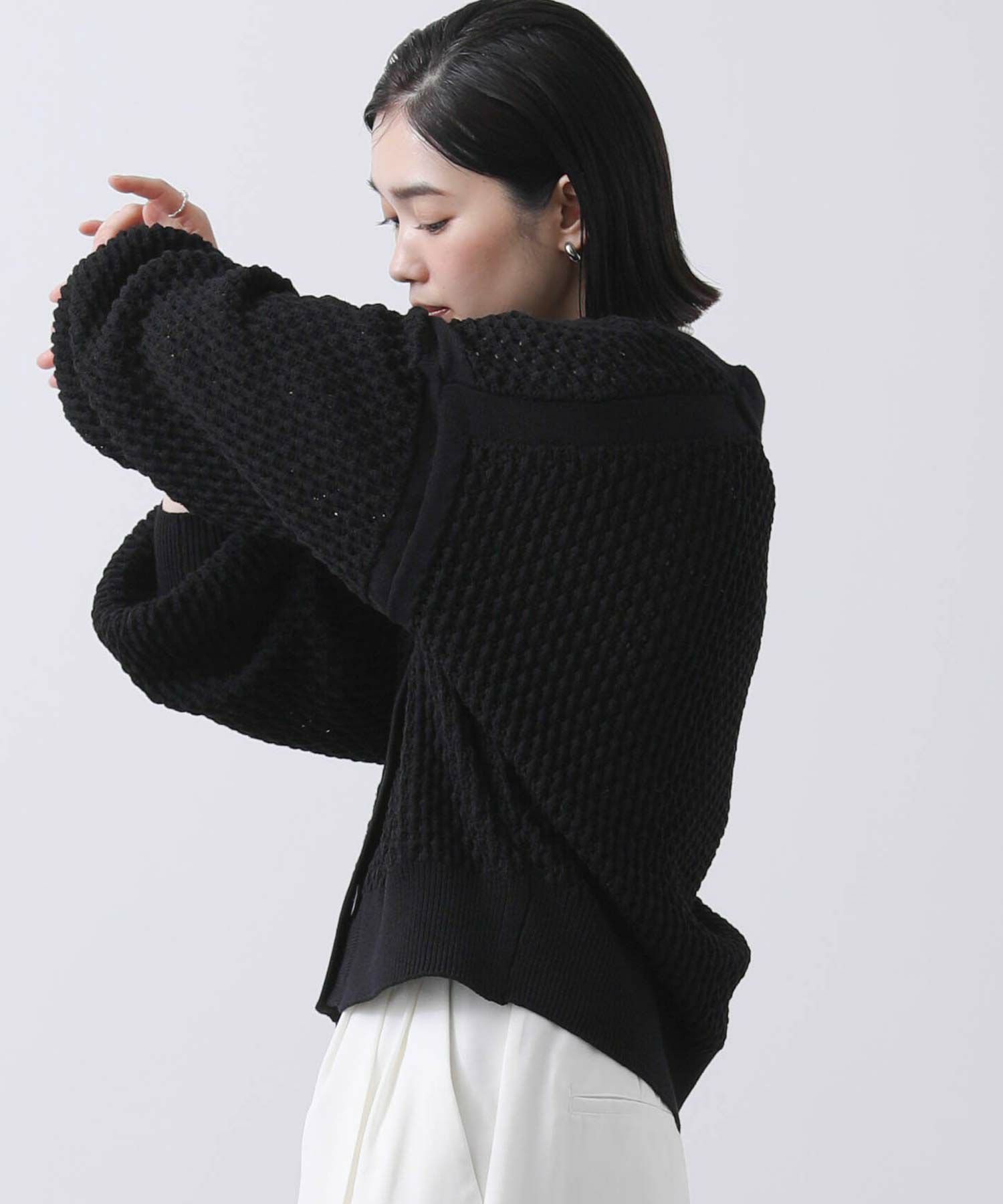 アームや肩ラインは編地に変化を付けアクセントに。