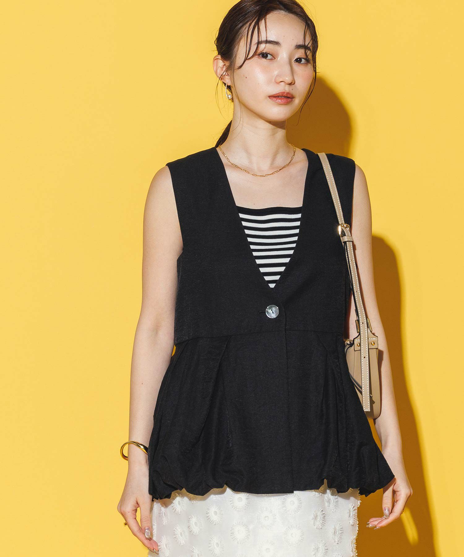 きれいめにもカジュアルにも合わせやすい、デイリーコーデに大活躍する1枚。キャミワンピやシャツのインナーに合わせるのもオススメな“見せたい”インナーです。