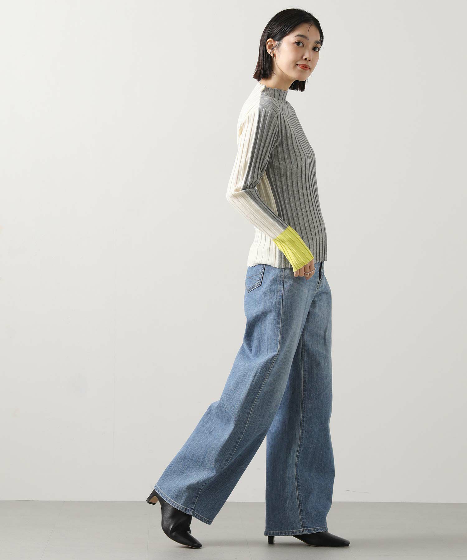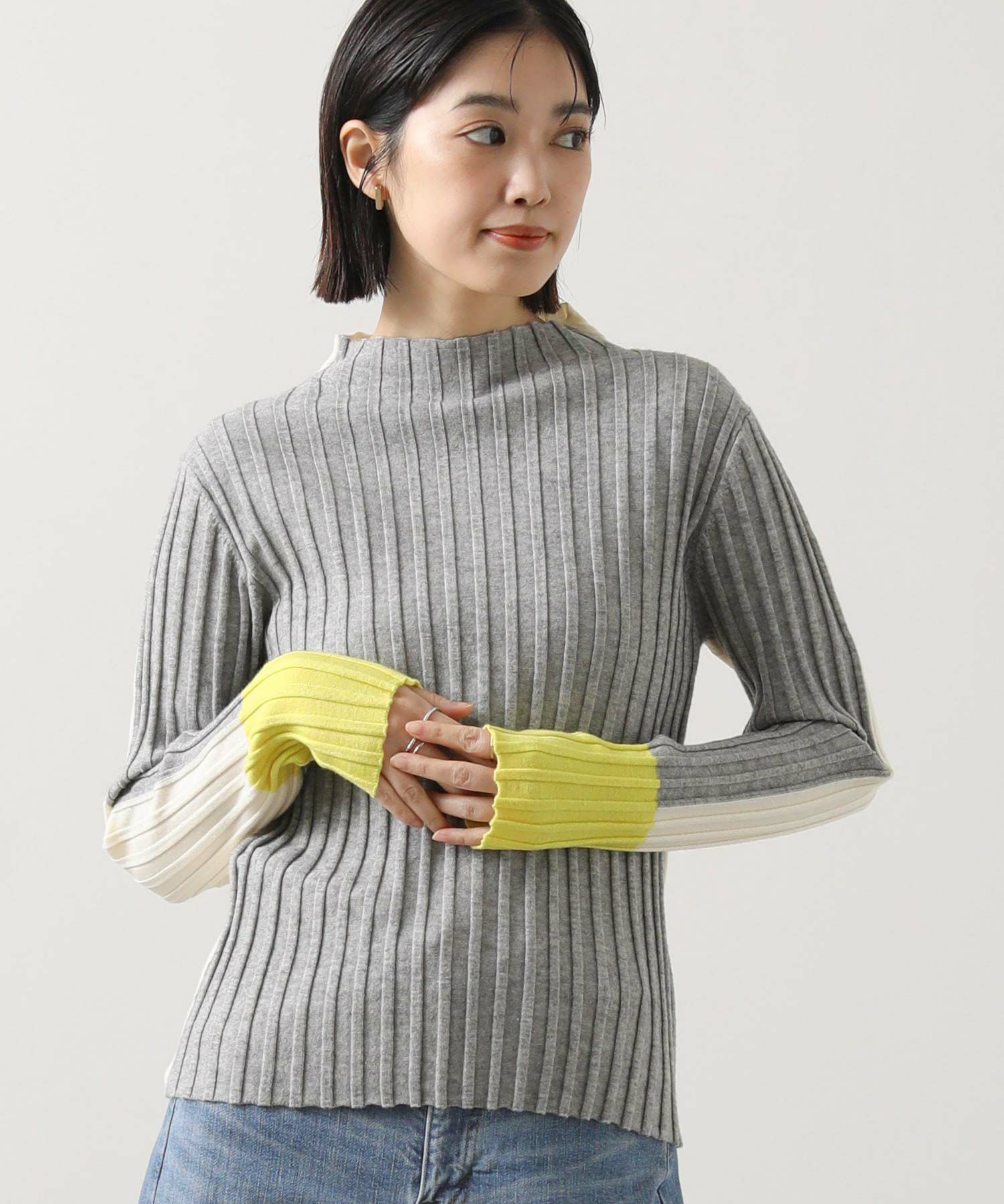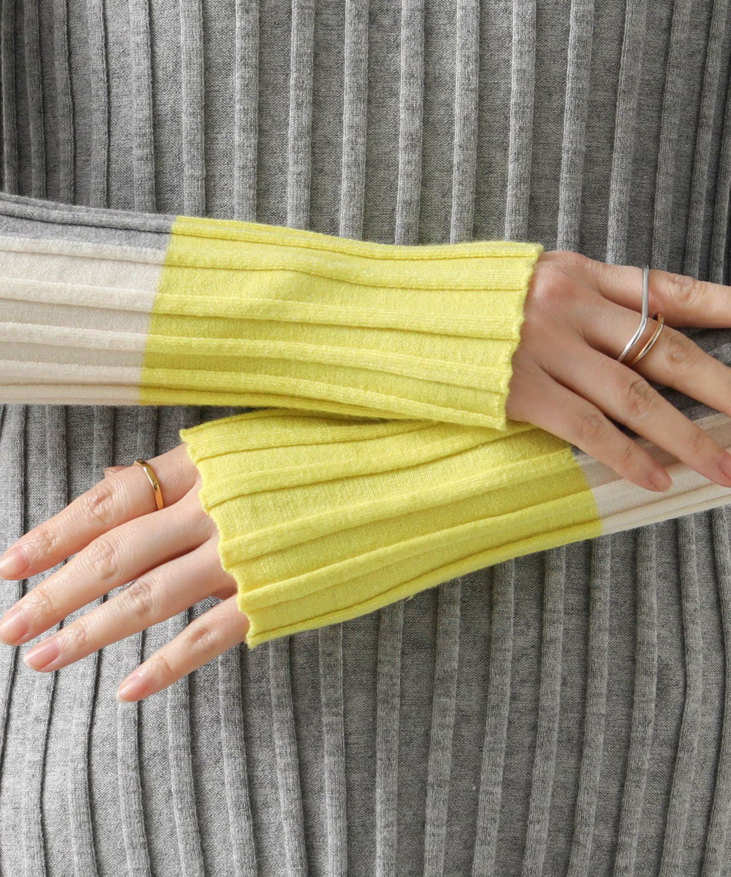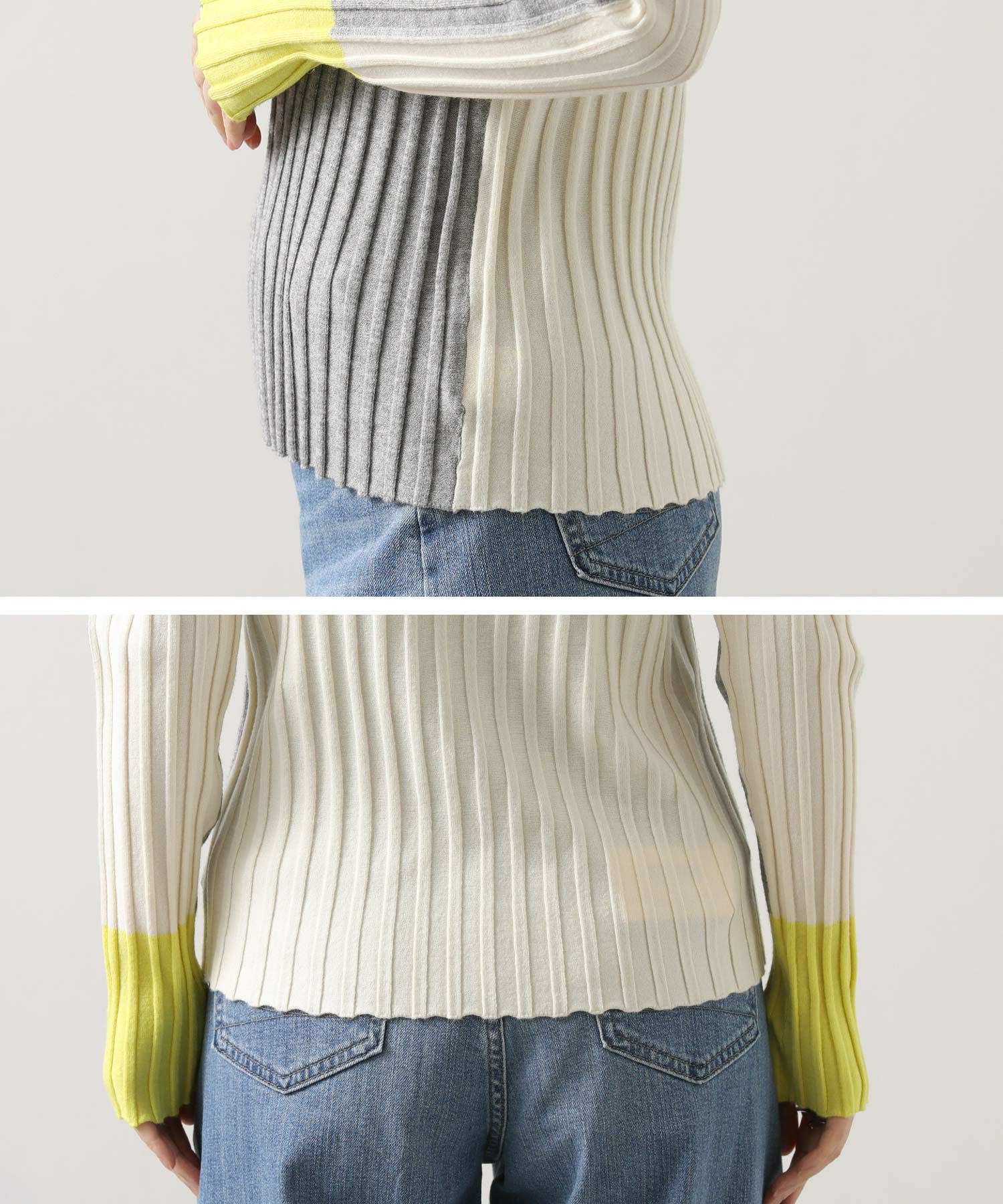 1枚での着用で配色を楽しむのも、シャツやジャンスカなどのインナーとして合わせてたり袖からのぞく配色を楽しむのもオススメ。