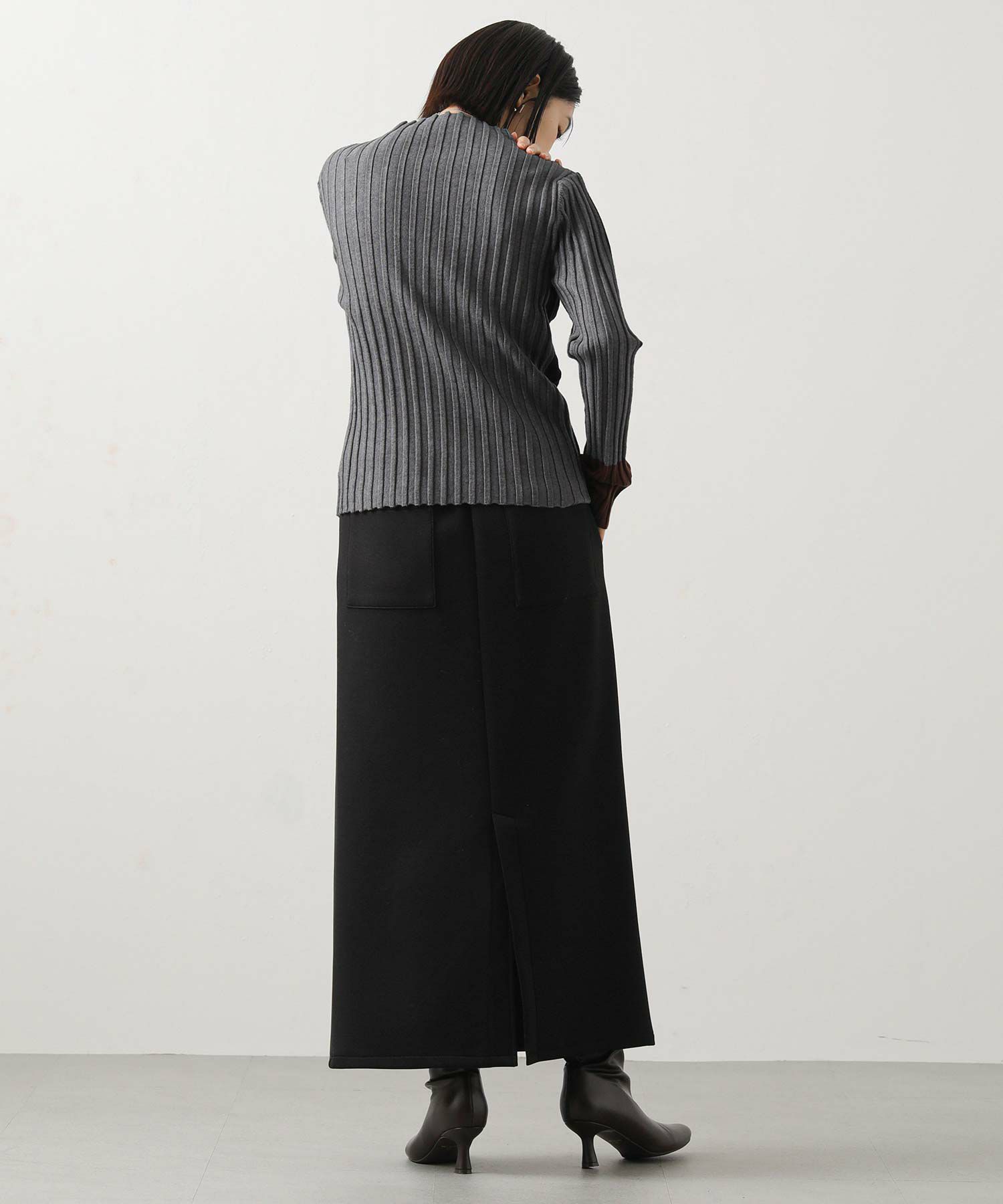 柔らかく肌触りの良い素材を使用したリブニットプルオーバー。
