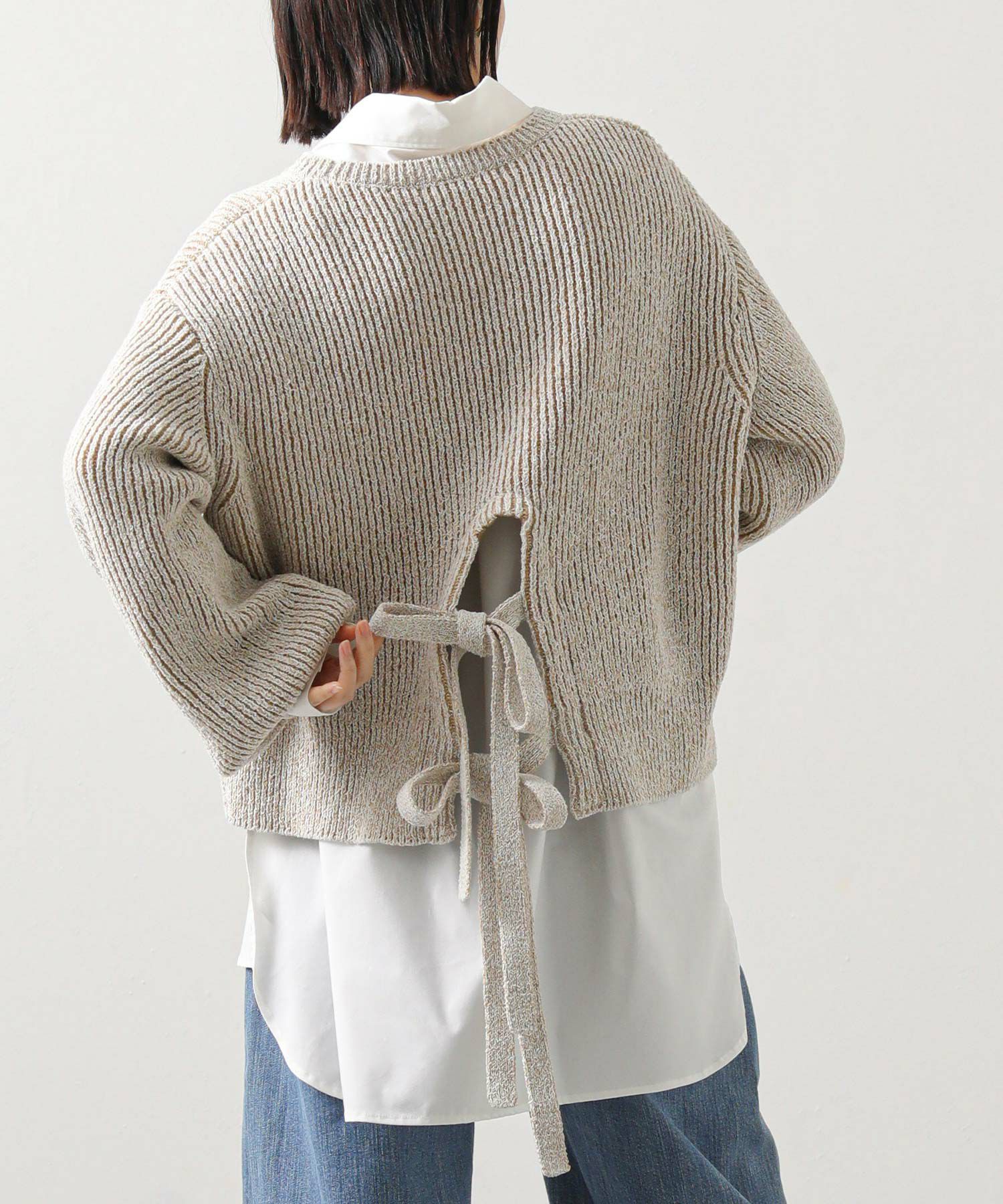 凹凸のある表面感の出るミックスカラーの糸を使用したニットプルオーバー。