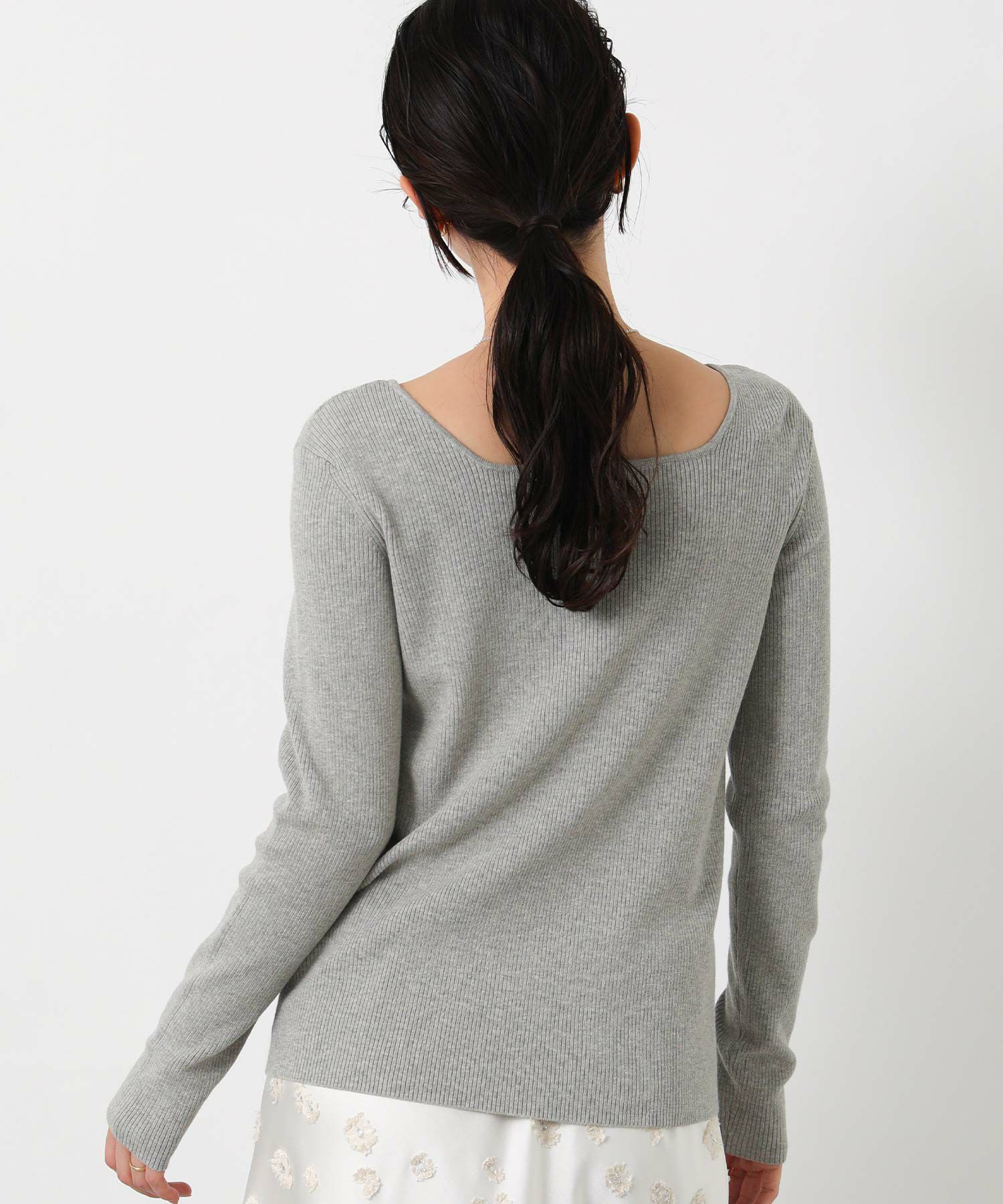 ベーシックなクルーネック、ヘルシー見えするスクエアネックの両方を楽しめる前後2way仕様。