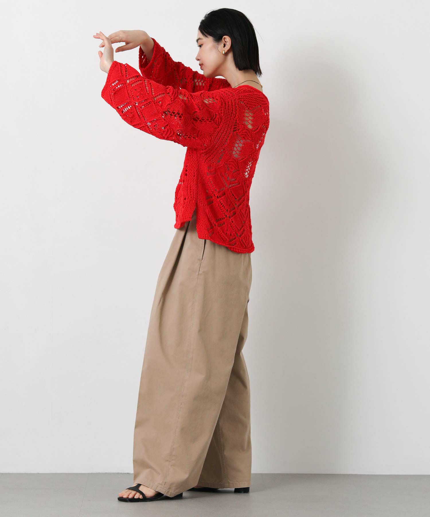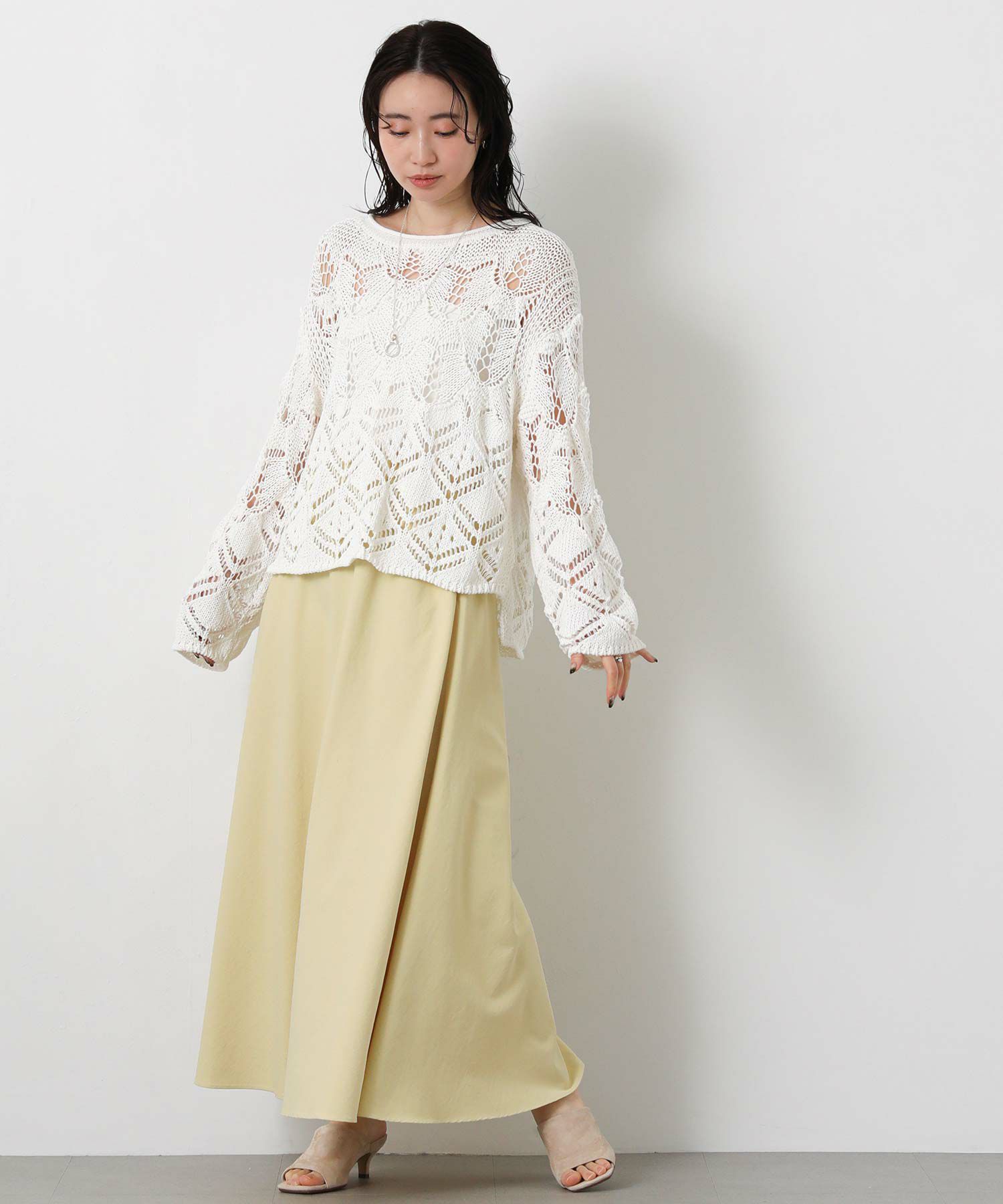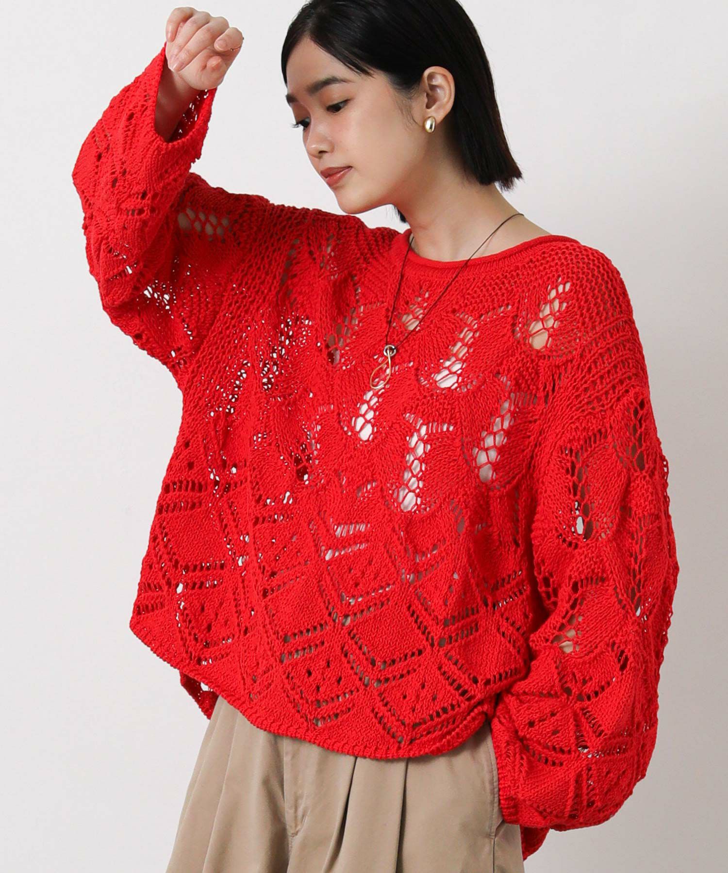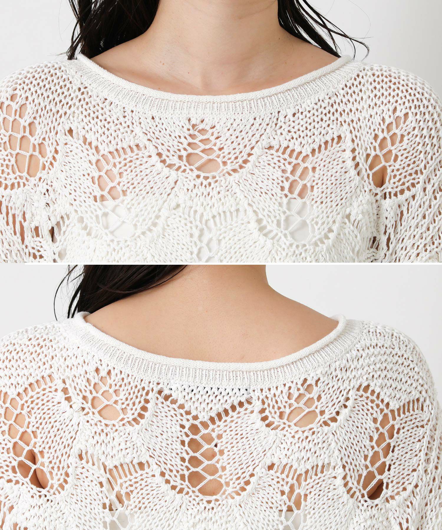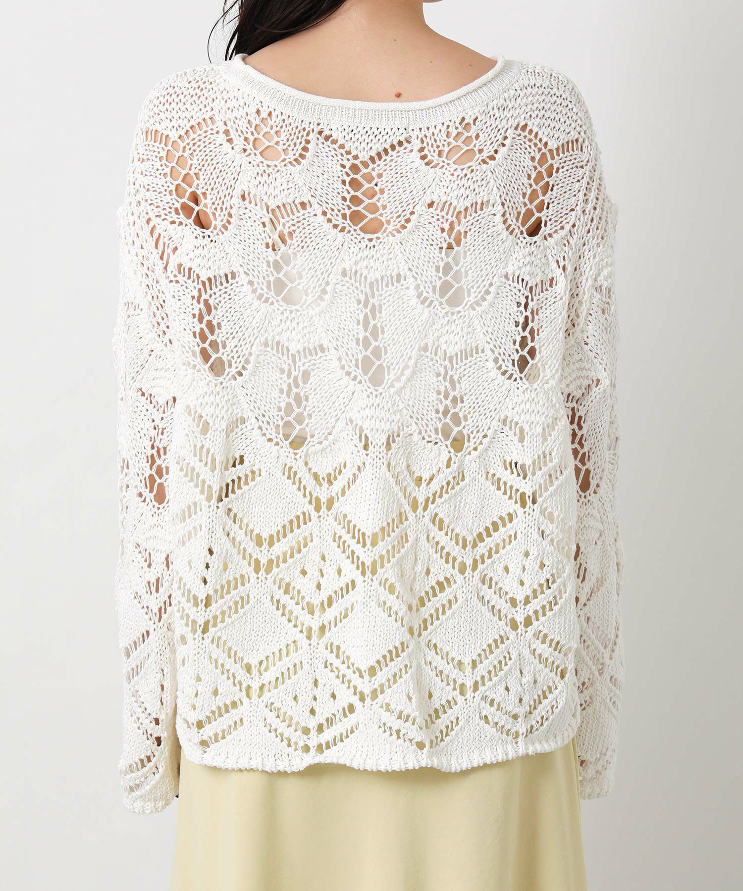 透かし柄が軽やかな印象のニットプルオーバー。