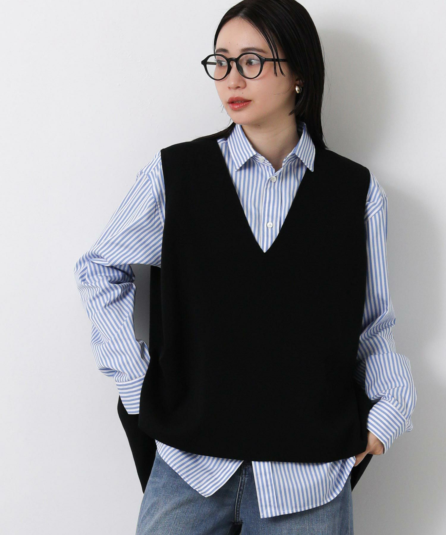 深めのVネックが顔周りをスッキリと見せてくれます。