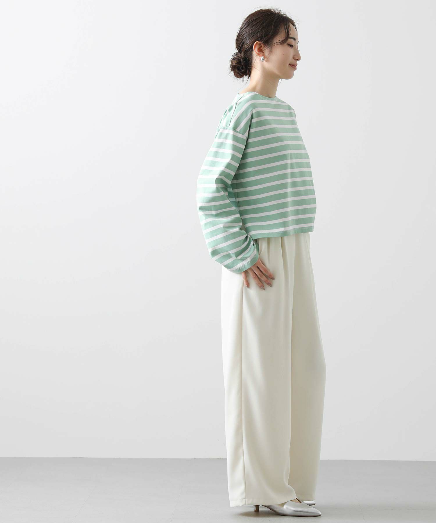 秋冬に好評だったカットソーが、春色になって登場です。オーセンティックなデザインながらトレンドのクロップド丈やワイドな袖が抜け感のあるシルエットです。