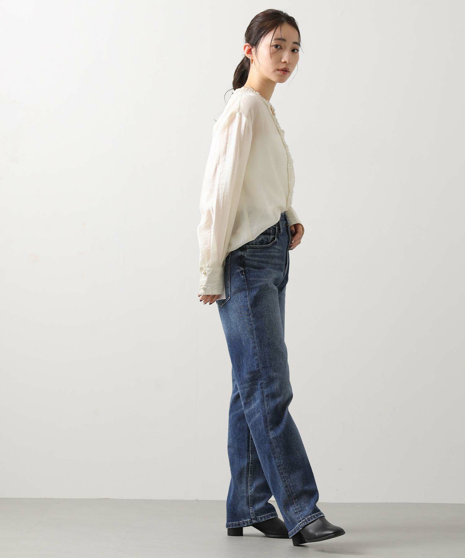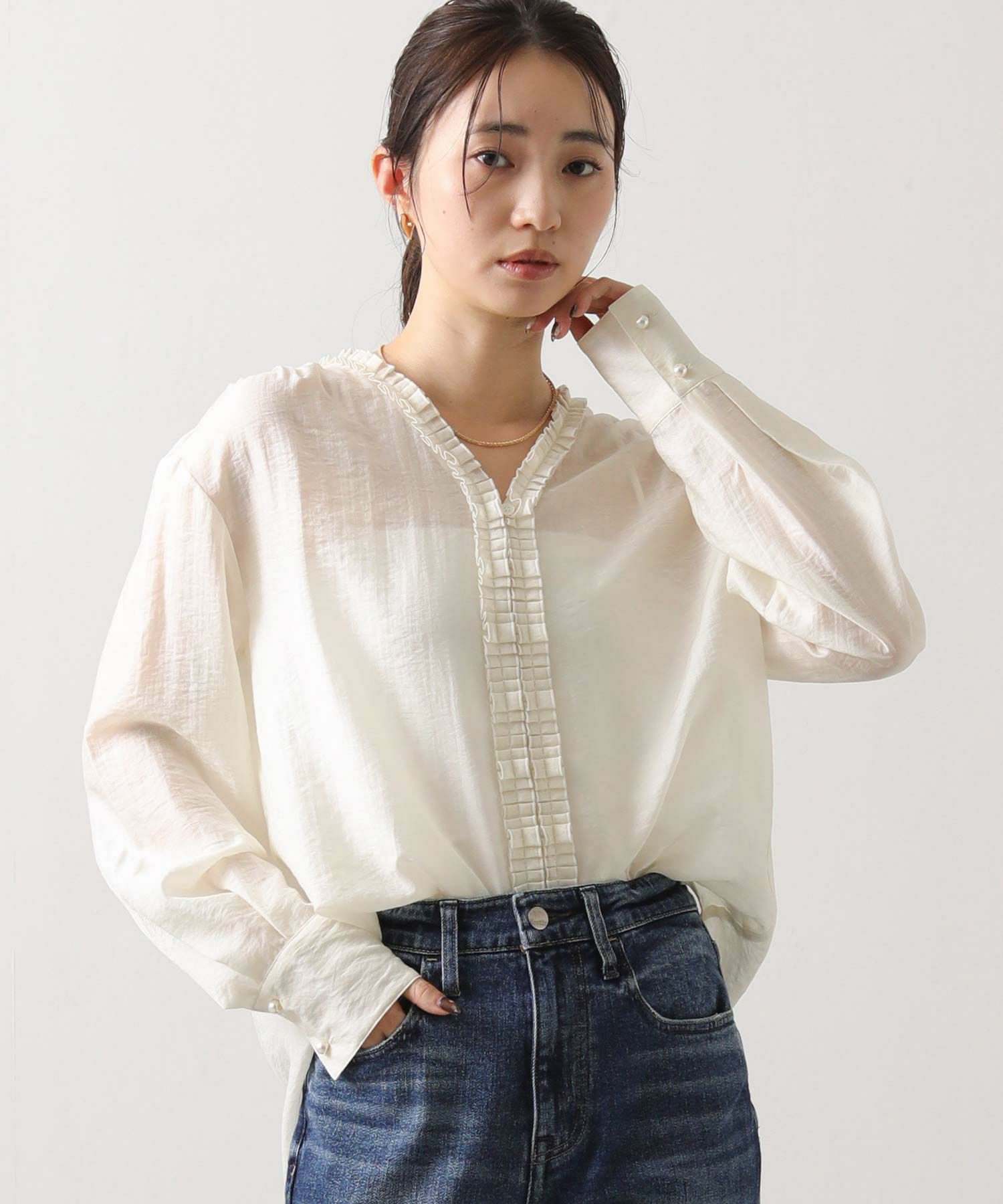 LUタックフリルVネックブラウス