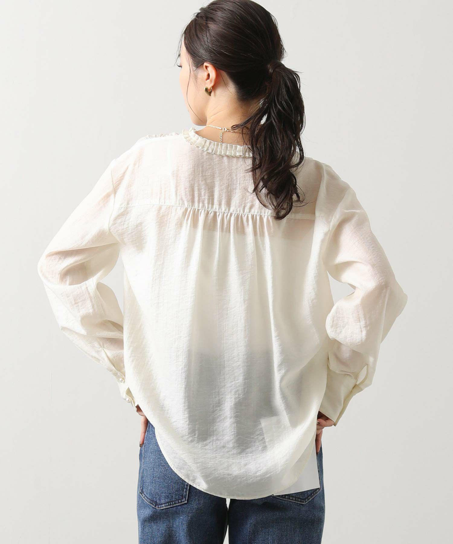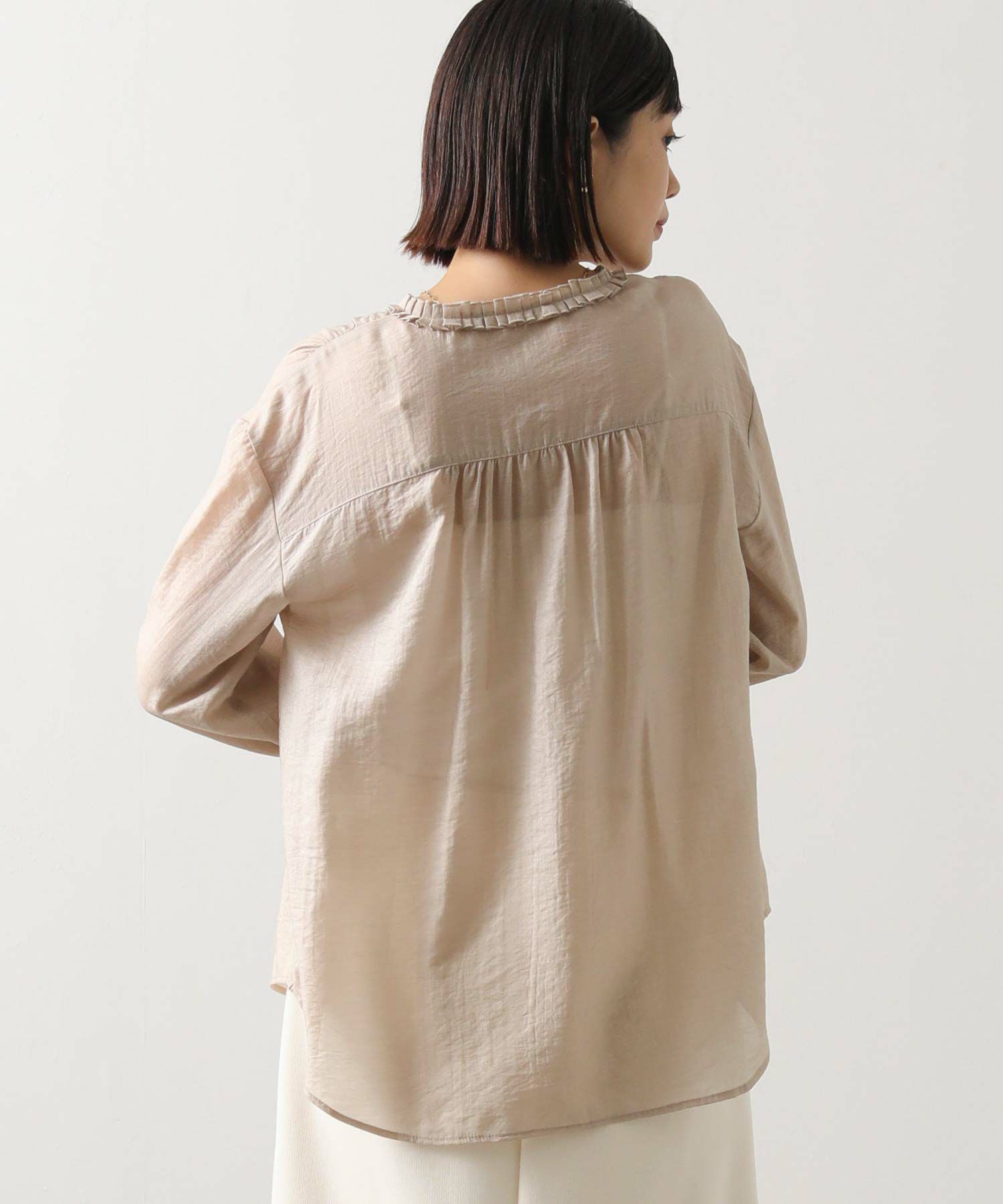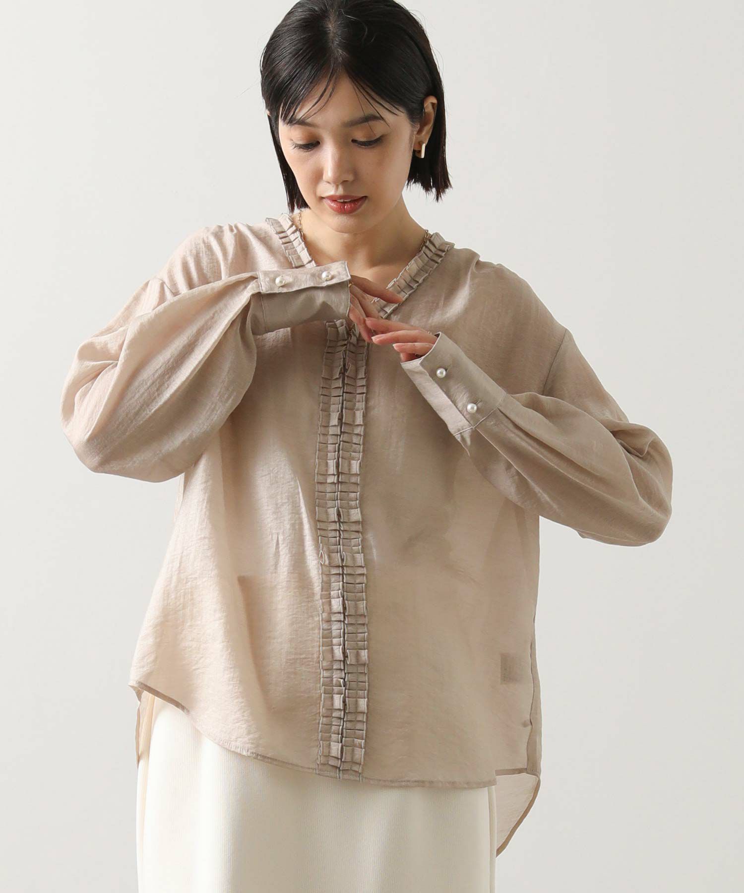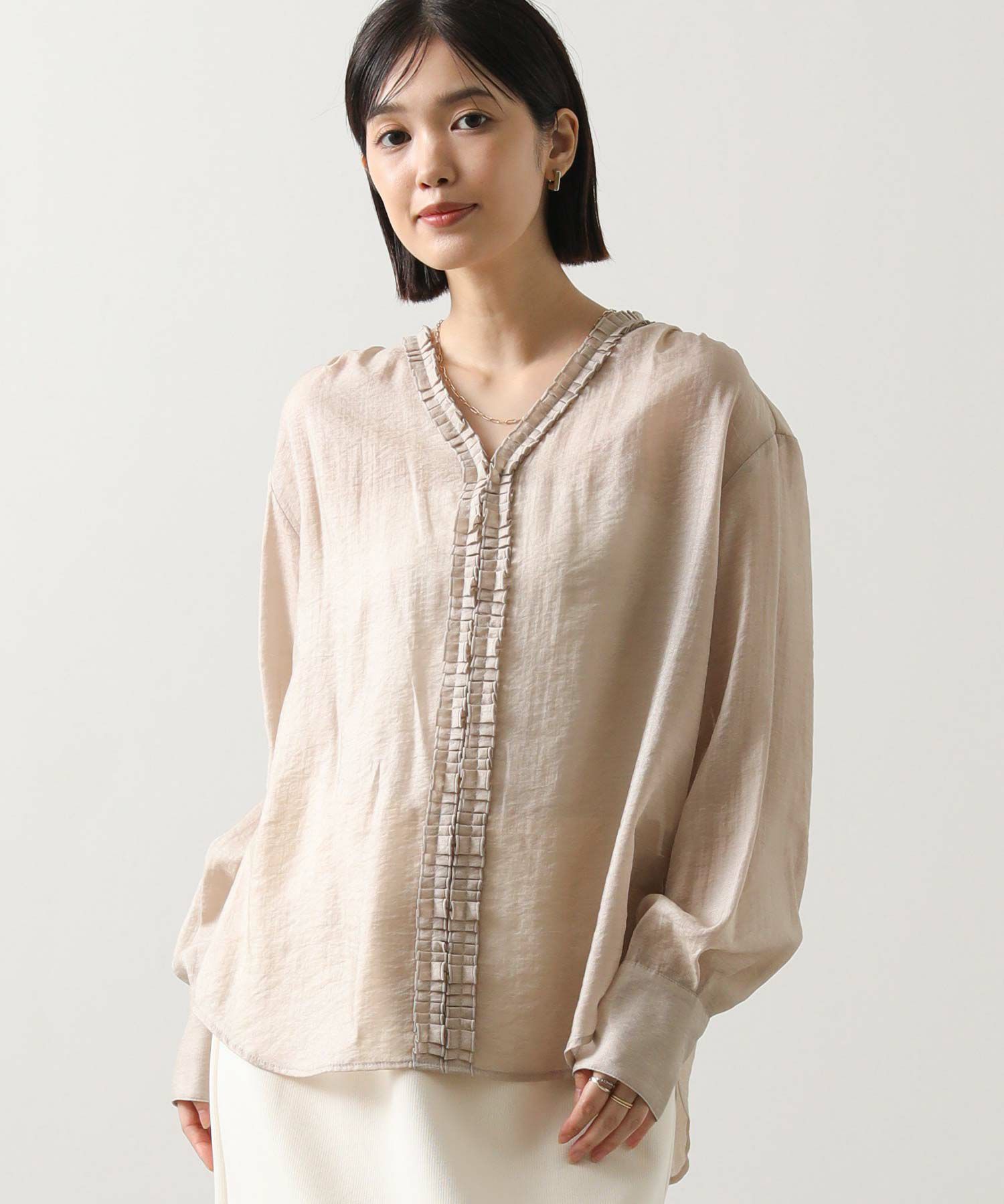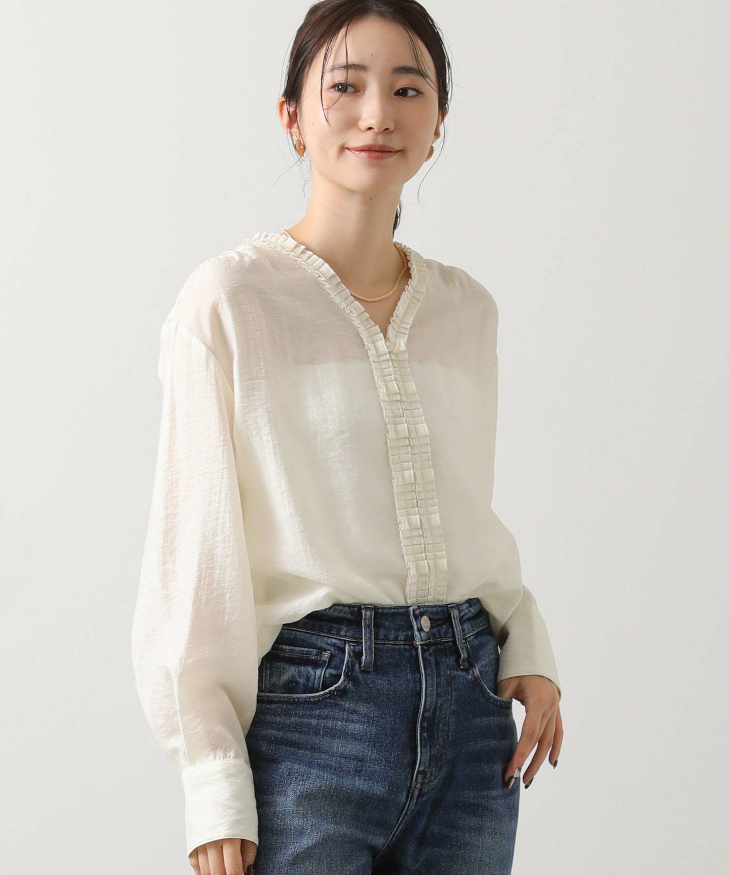 タックフリルが、上品で大人な印象のフリルブラウス。