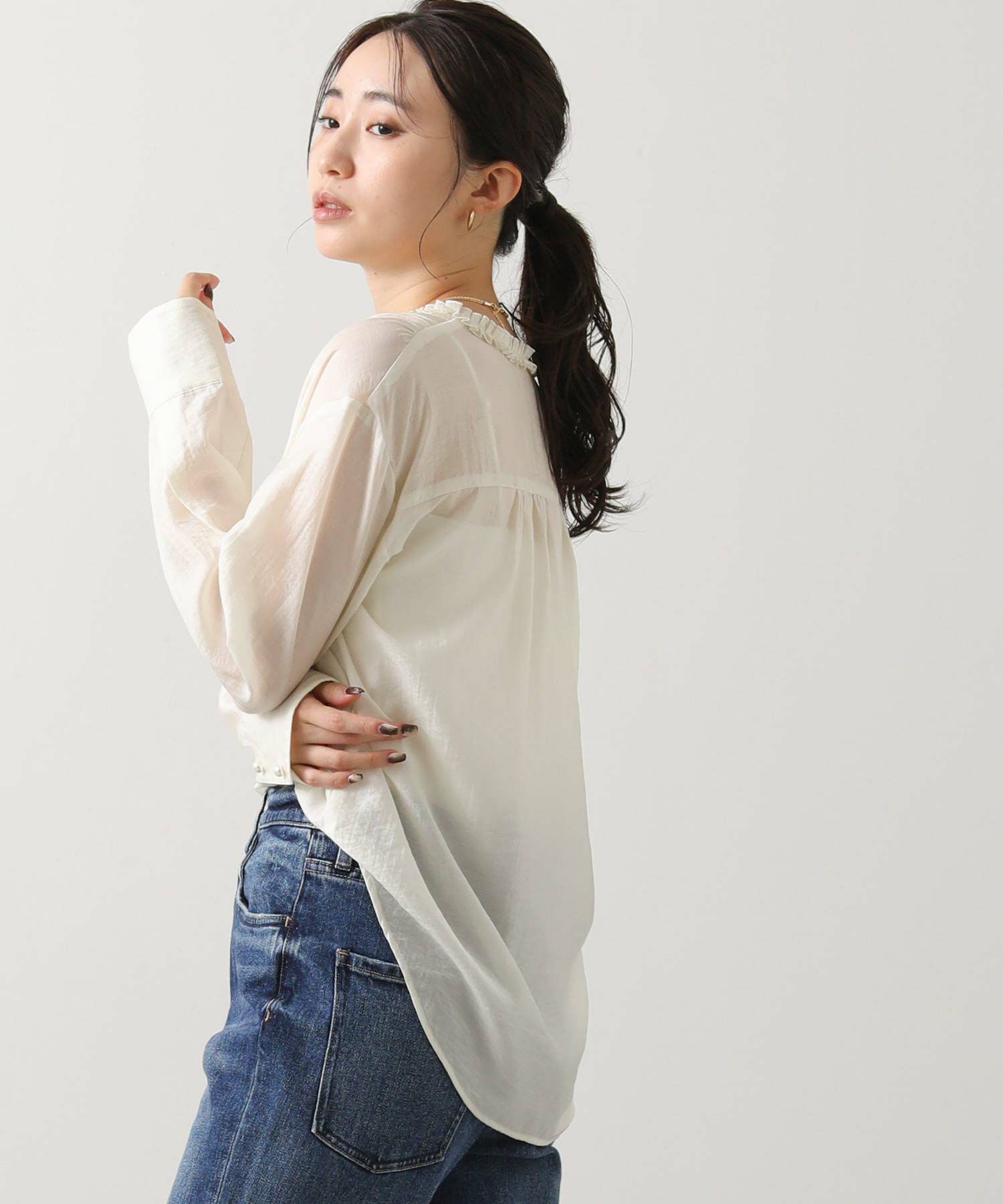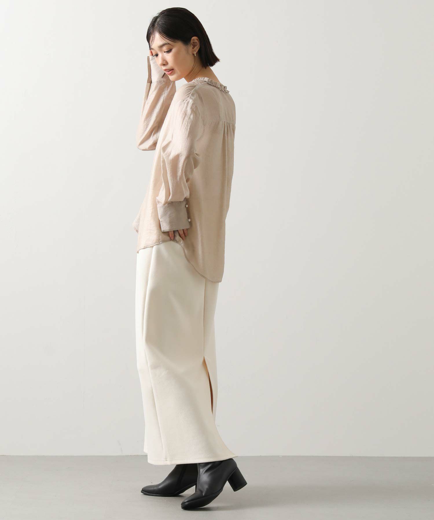 ジャケットインした際にはフリルがポイントに。
