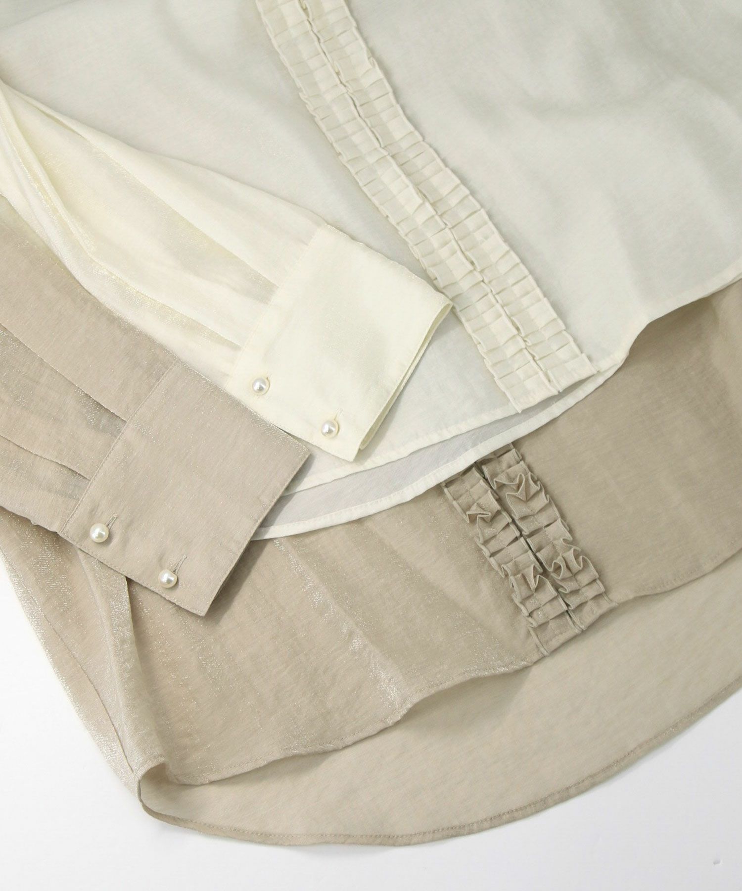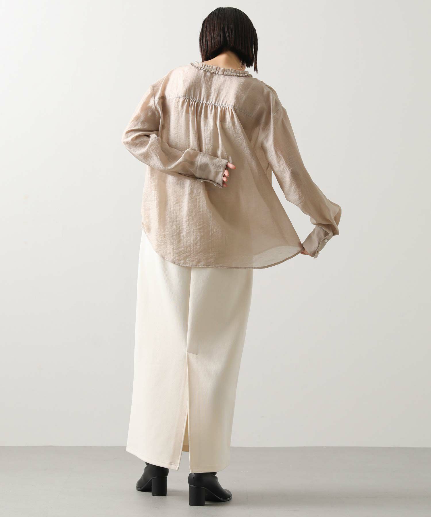 素材は大人なシアー感と上品な光沢のある素材を使用。 きちんと感はありつつも抜け感の出る素材で、オンオフ問わずに幅広く活躍してくれます。