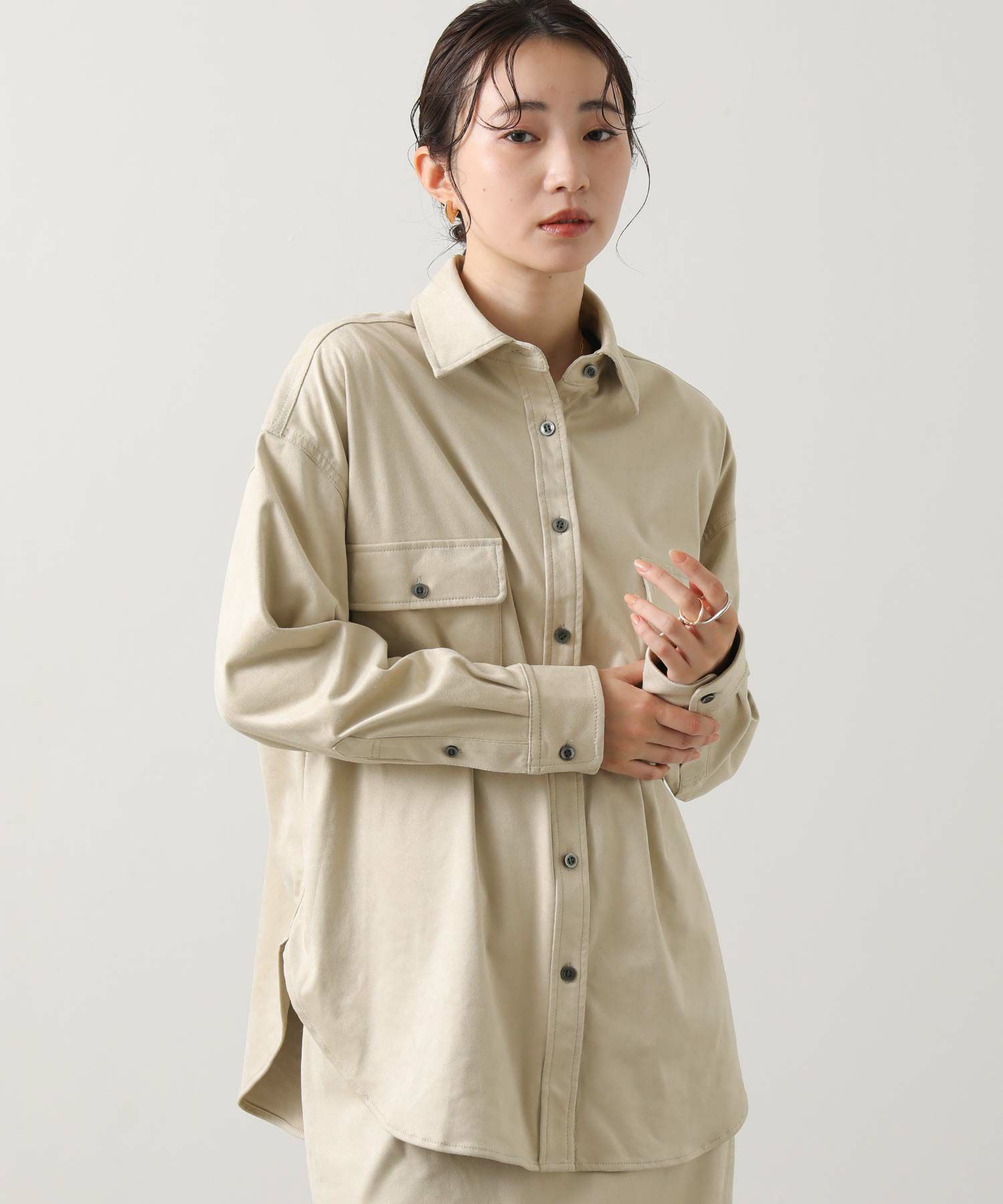 大きめのパッチポケットがポイント、程よくオーバーでヒップが隠れるサイズ感。