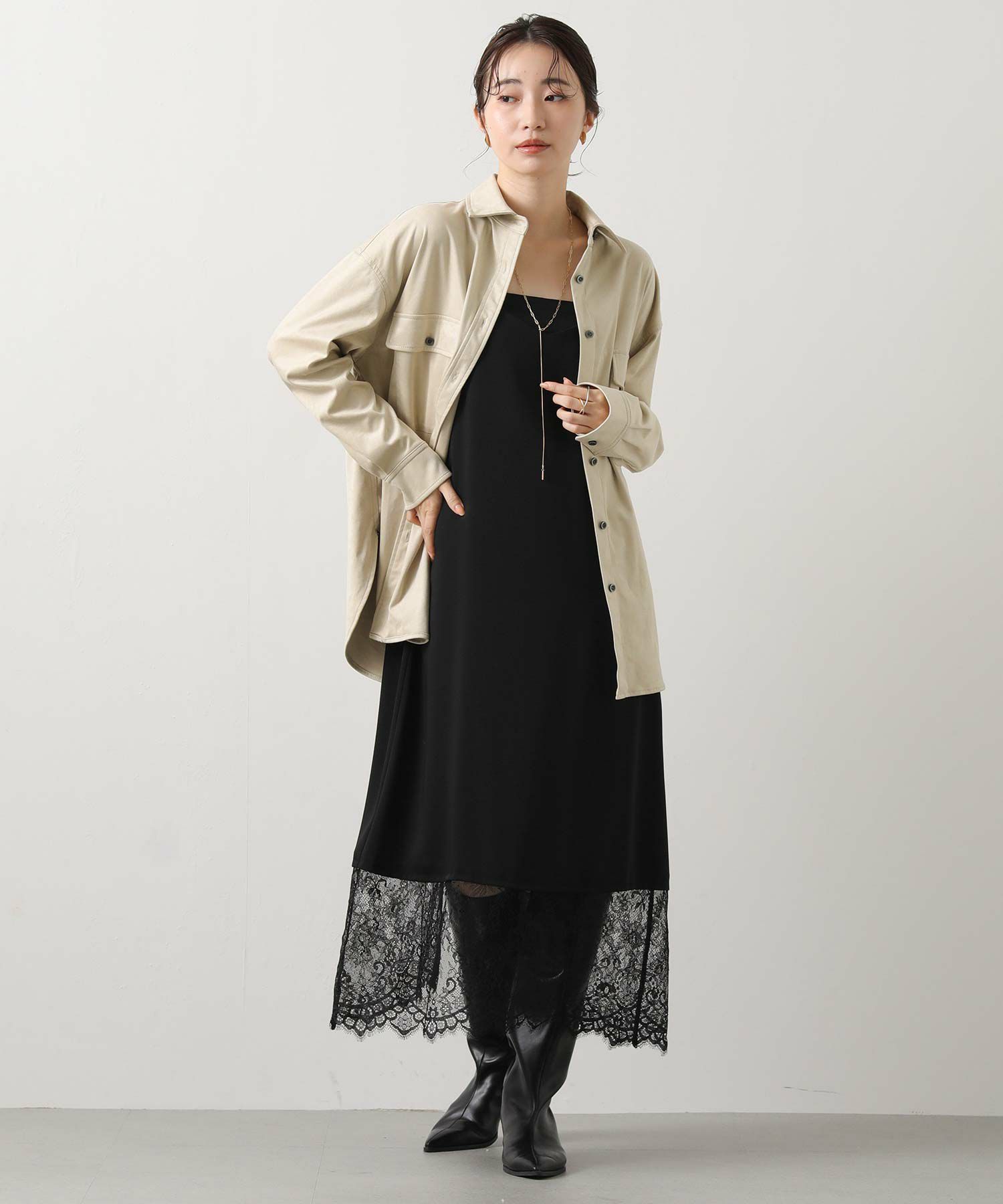 トレンドのレースキャミワンピースを合わせて女っぽく着こなすのが◎