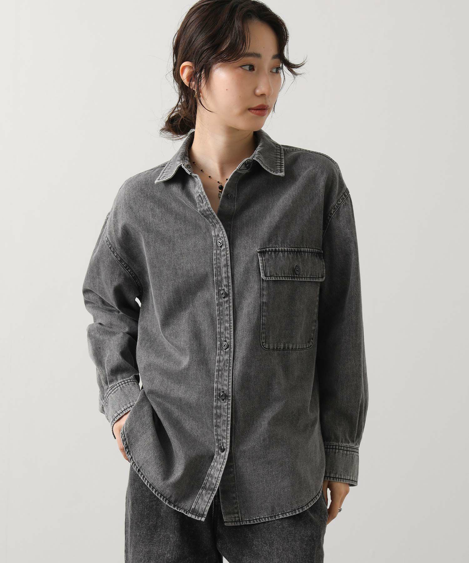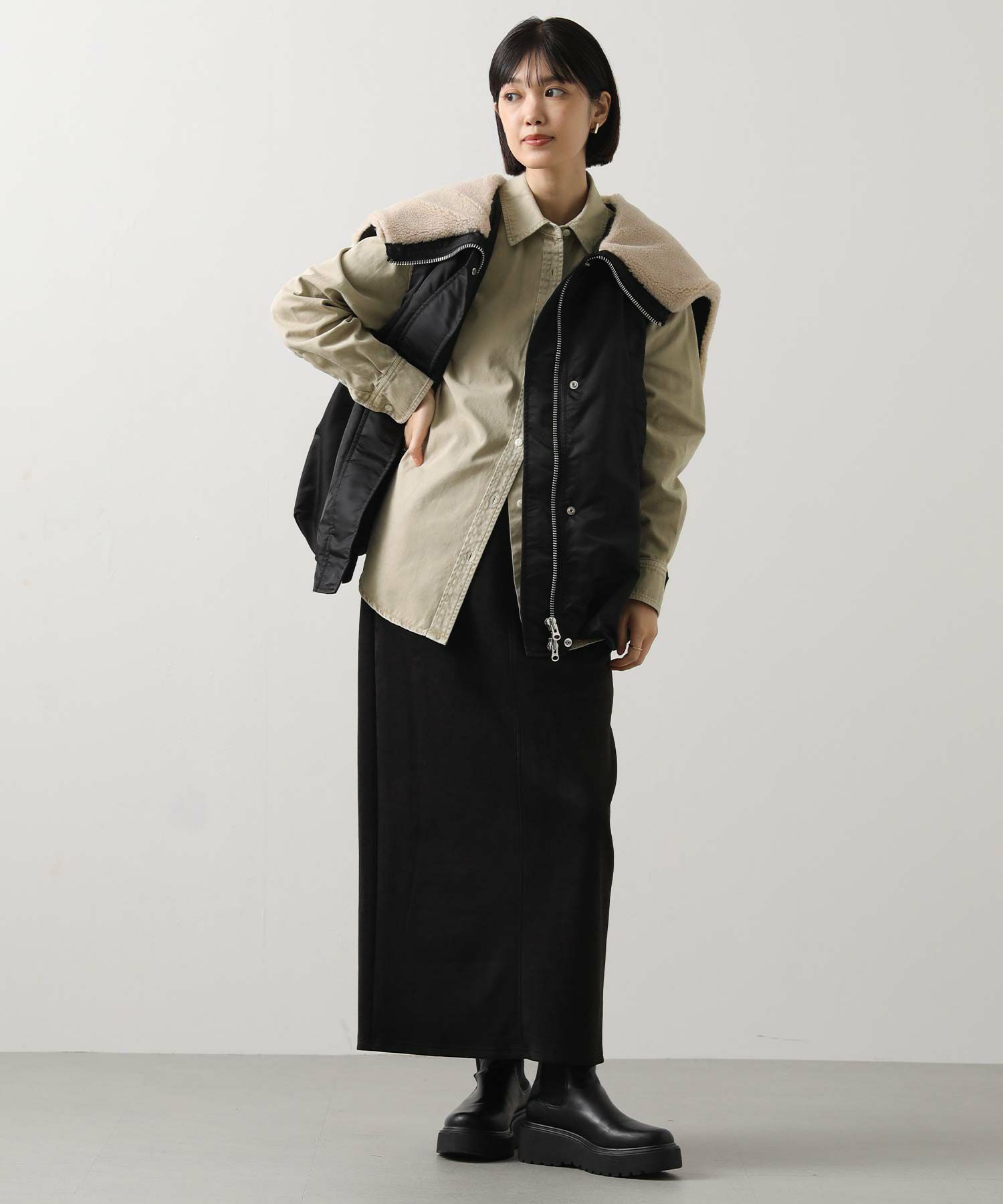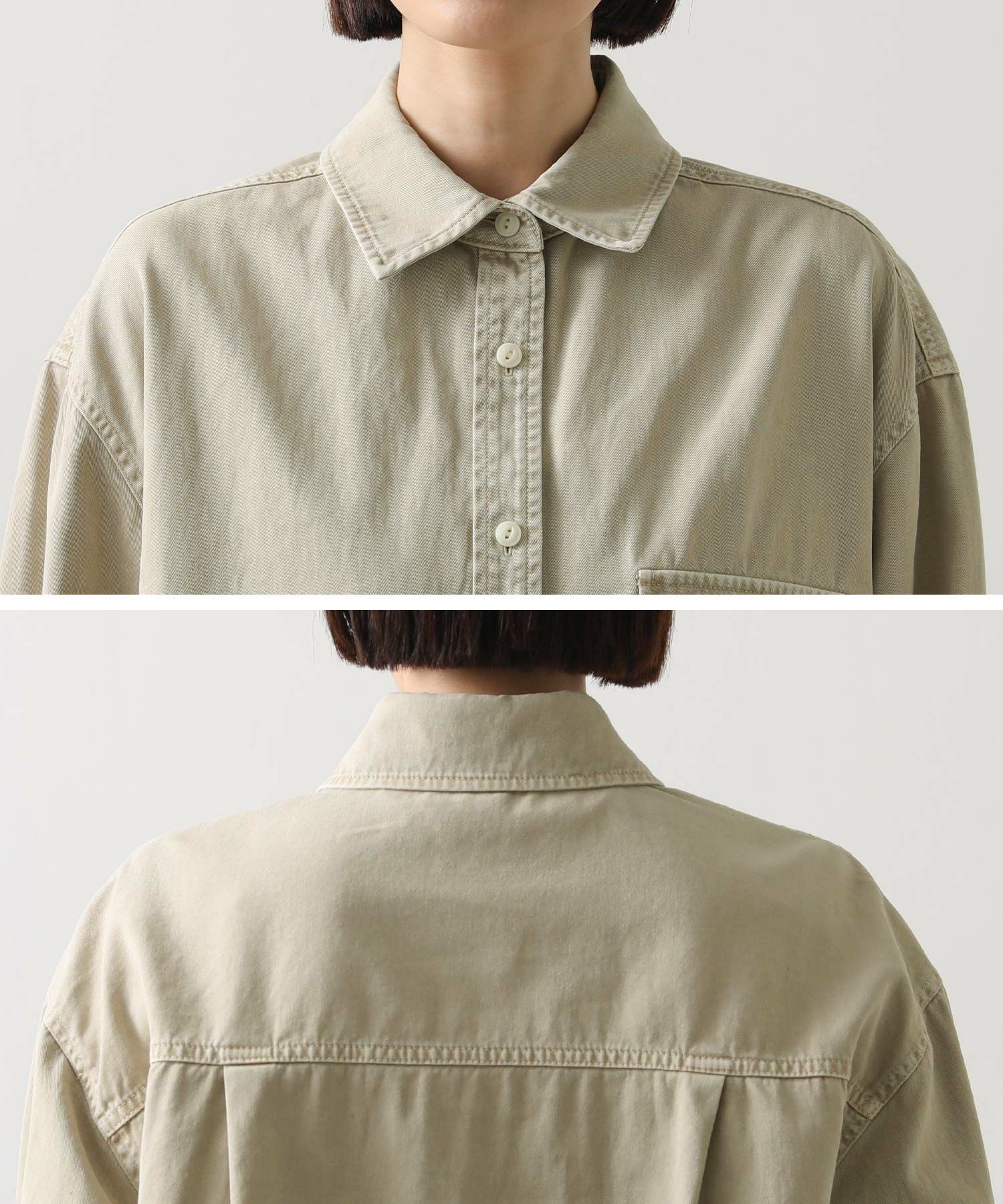 1枚でももちろん、腰に巻いたりジャケットとしてさらっと羽織ったりと、ユーティリティーな着回しの効く1着。