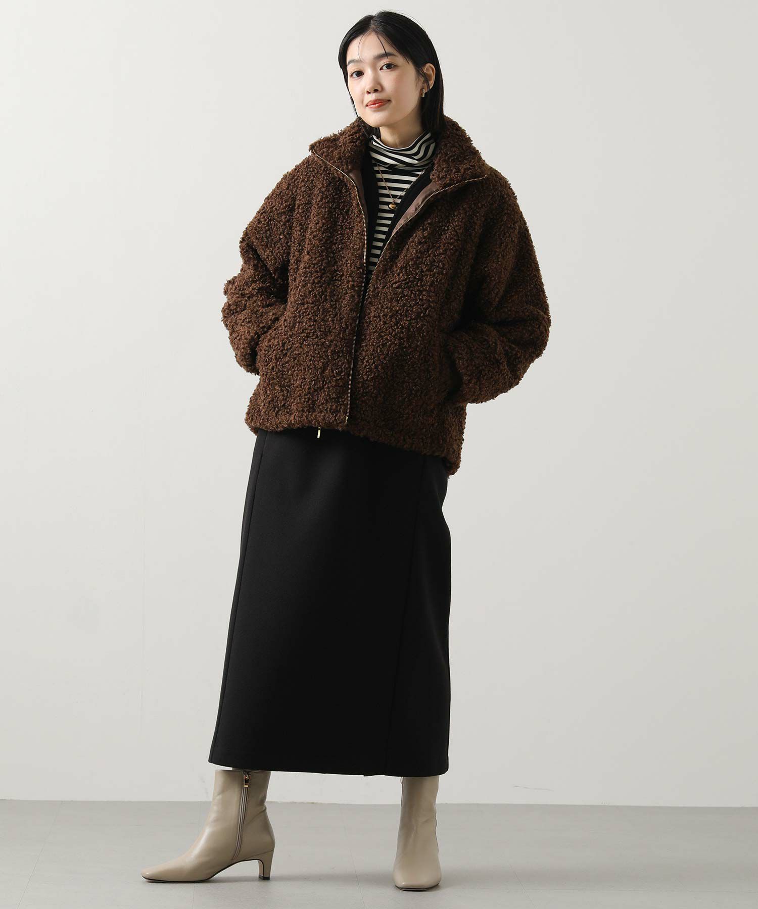 スッキリとしたシルエットで重ね着しても着ぶくれしにくく、冬のレイヤードにピッタリ。