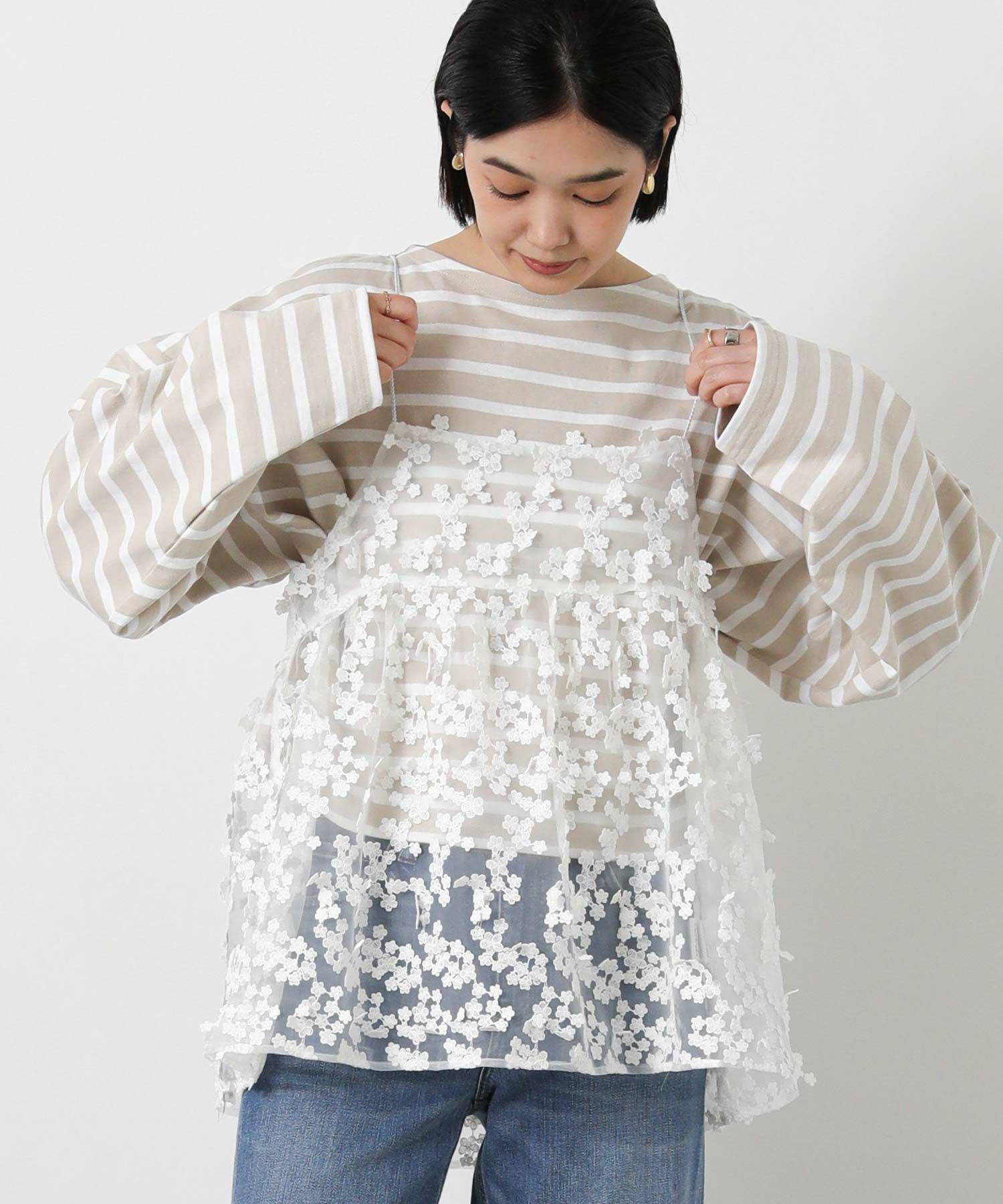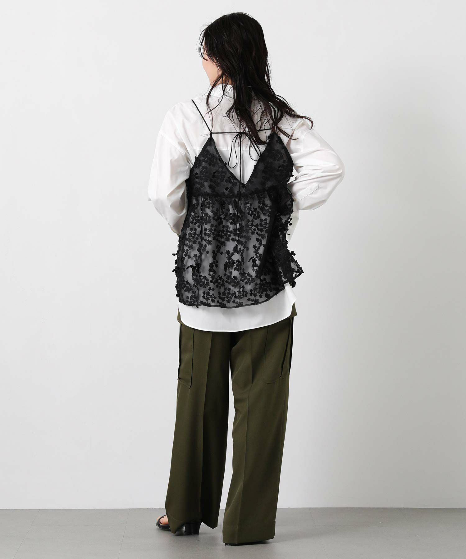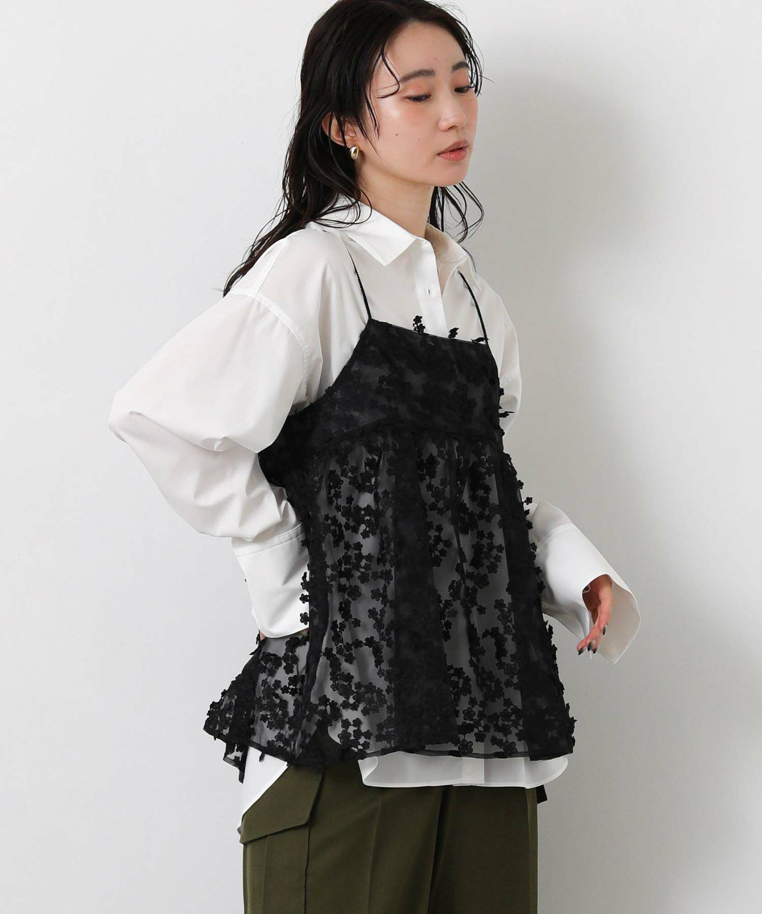 3D刺繍がフェミニンで華やかなキャミソール。