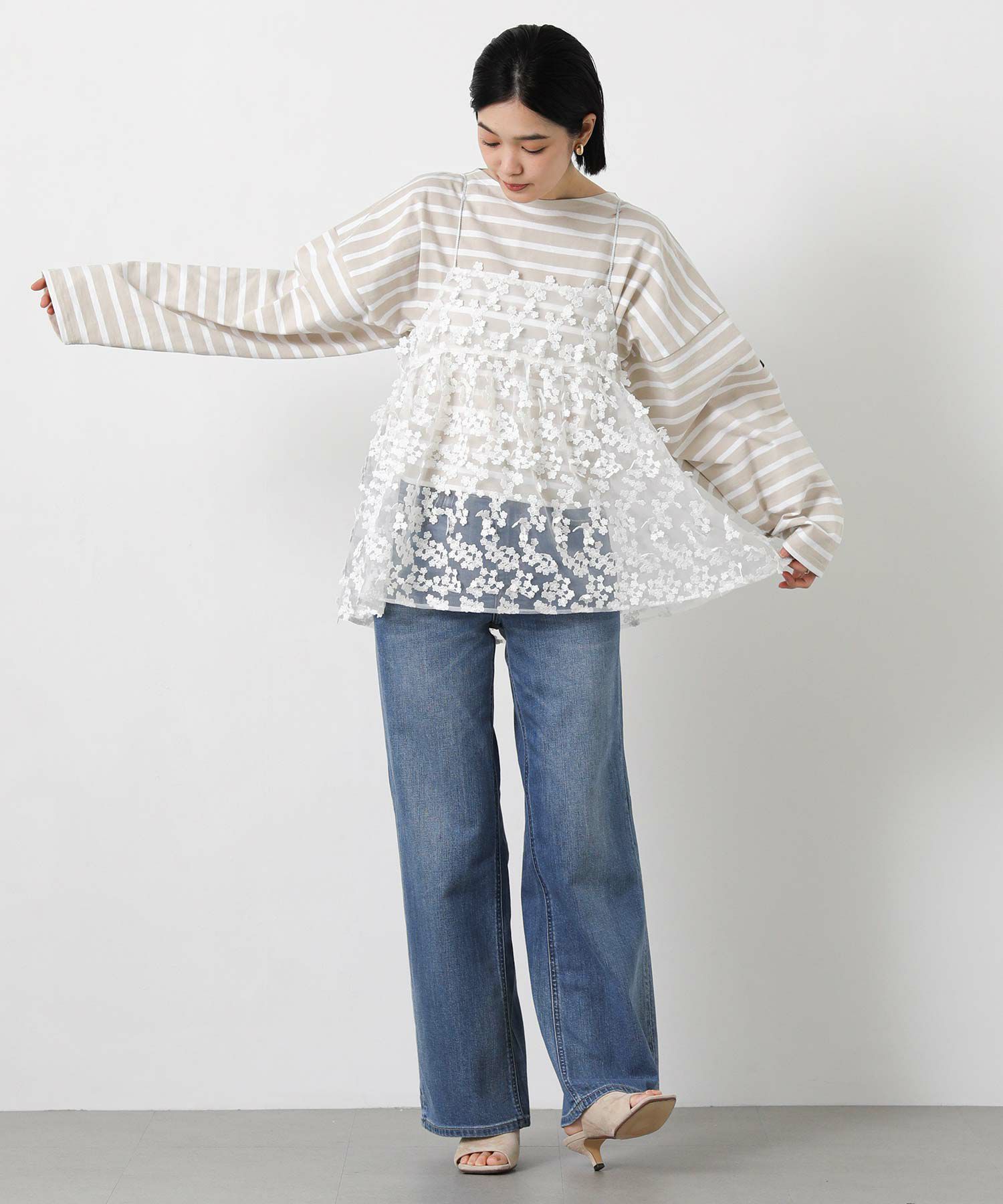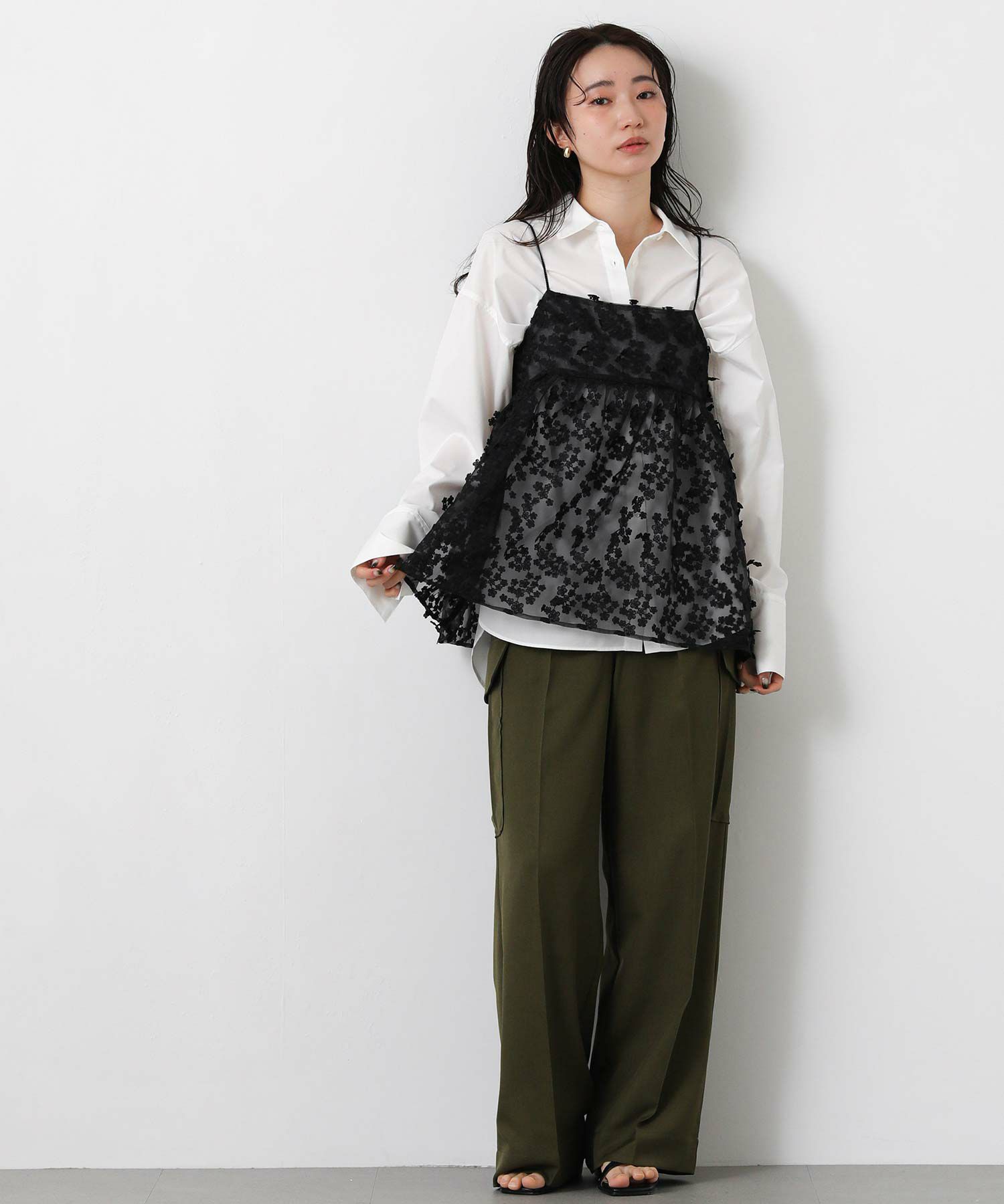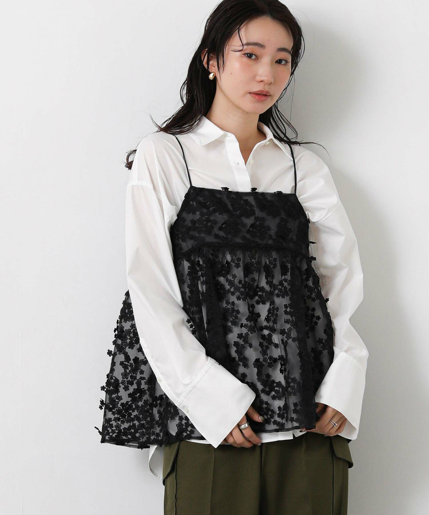 3D刺繍がフェミニンで華やかなキャミソール。