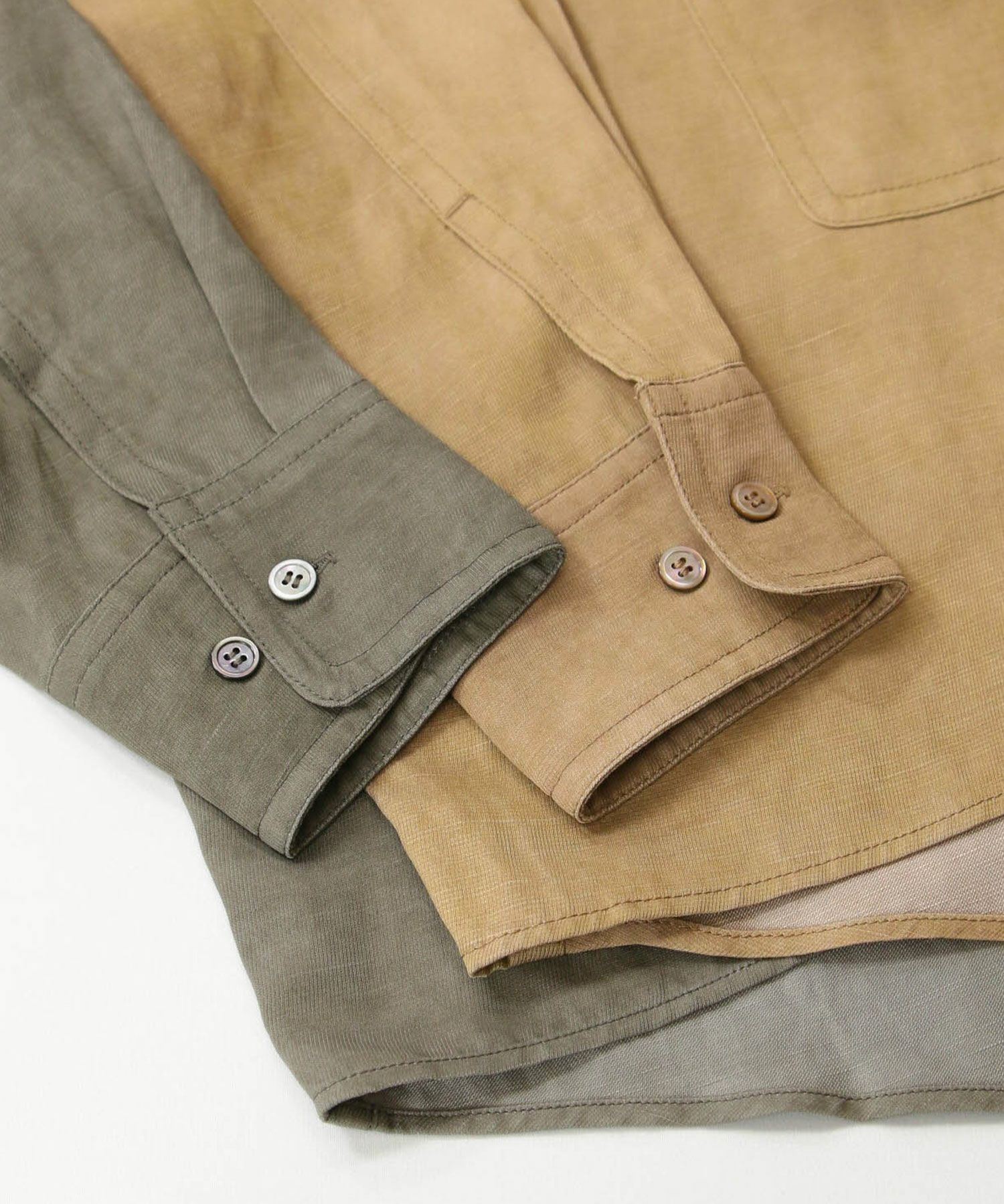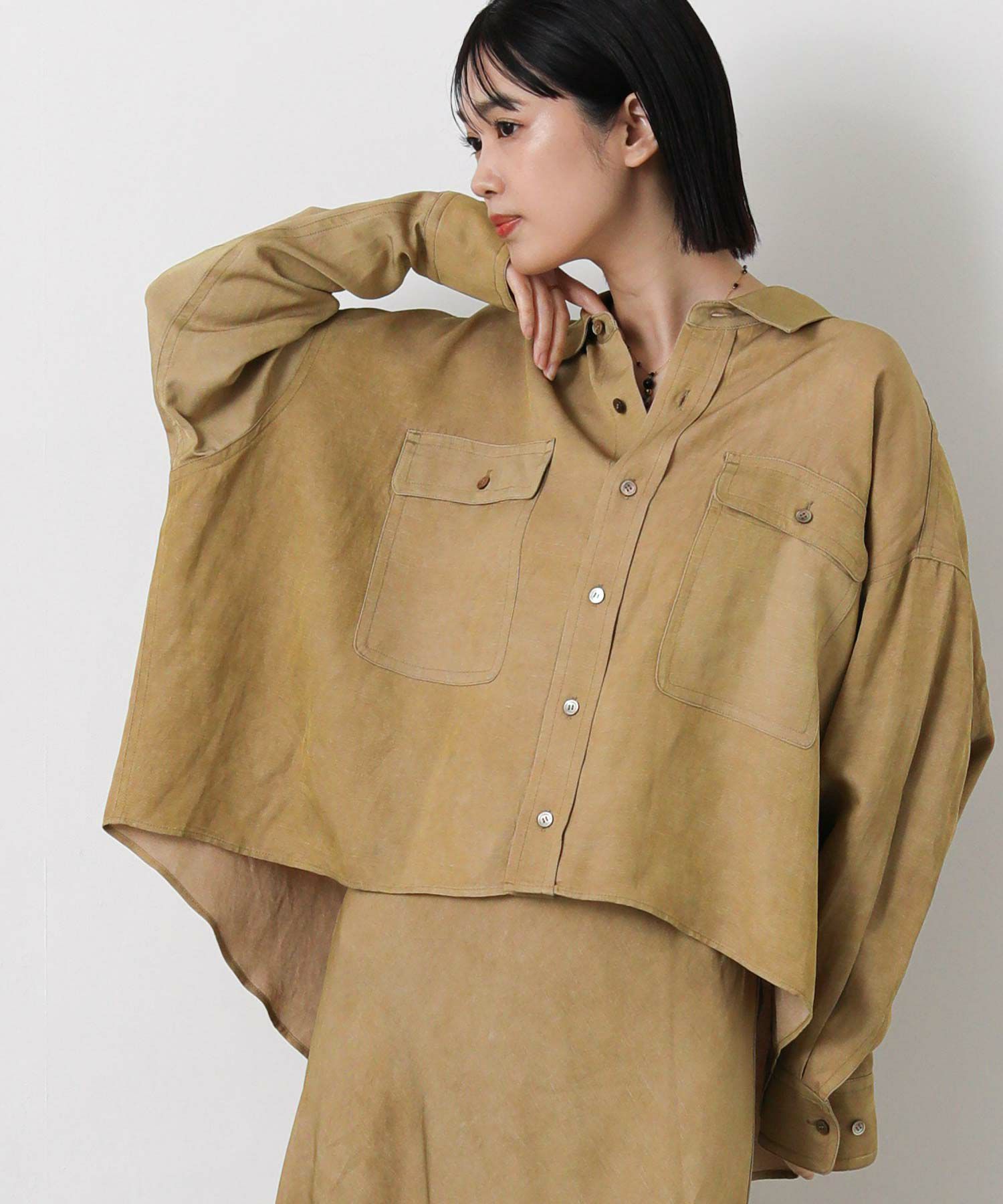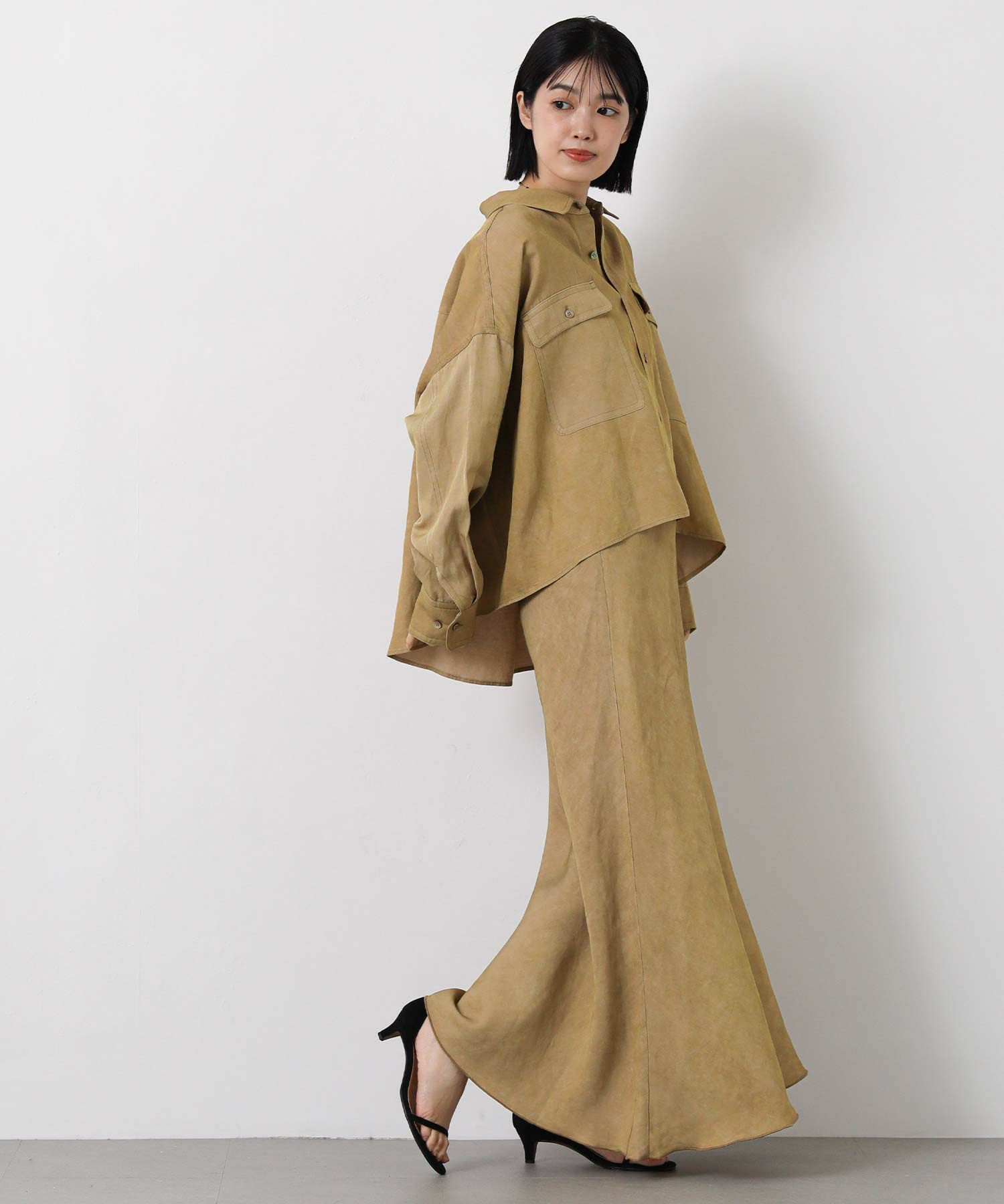 落ち感のある生地に顔料染めのカジュアルな加工を施すことで、エレガントさがありながらも大人のカジュアル感のある雰囲気に仕上がっています。